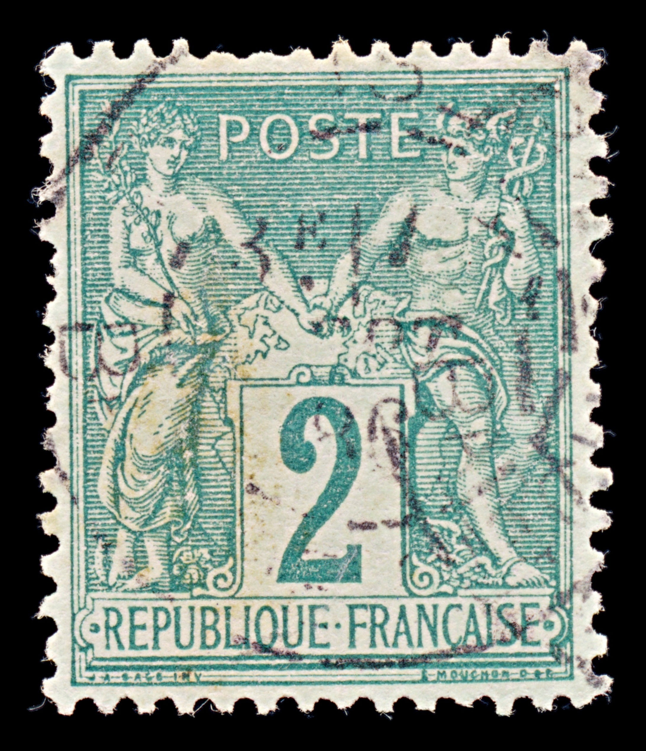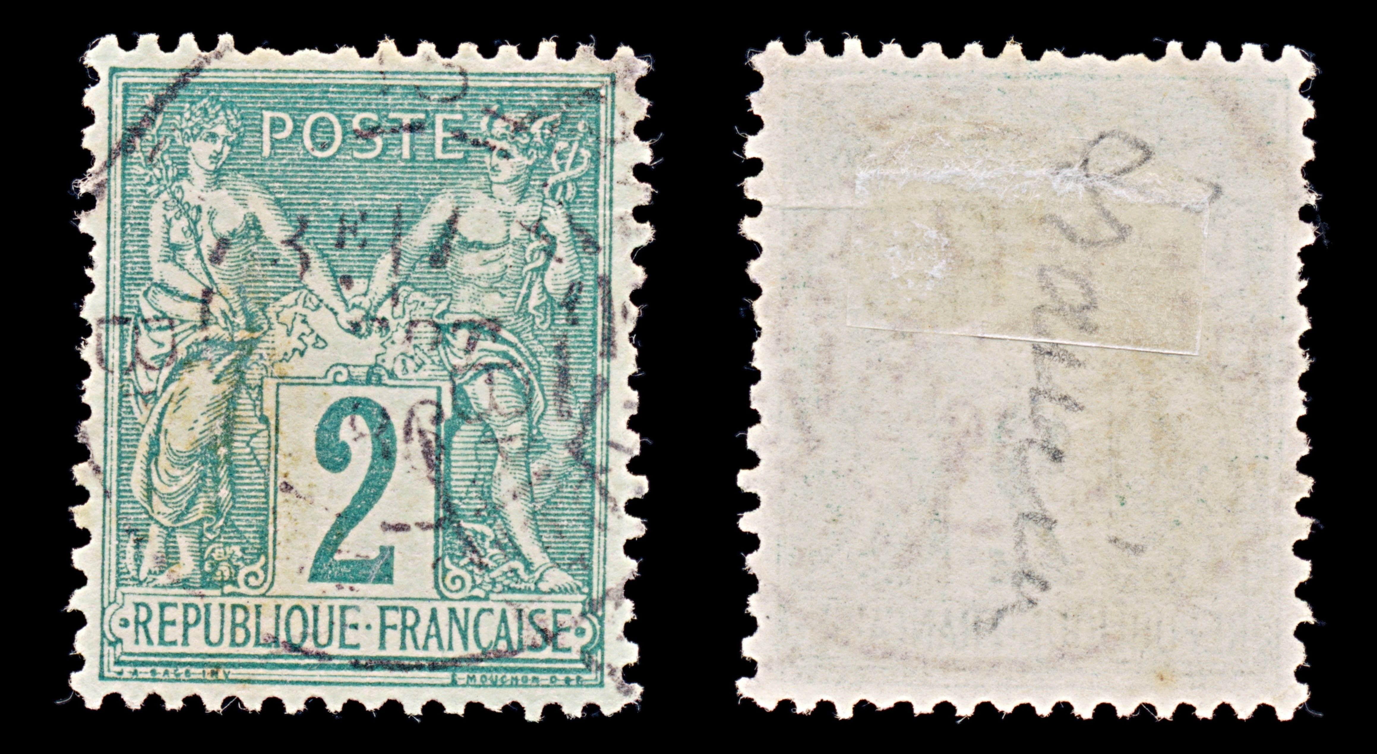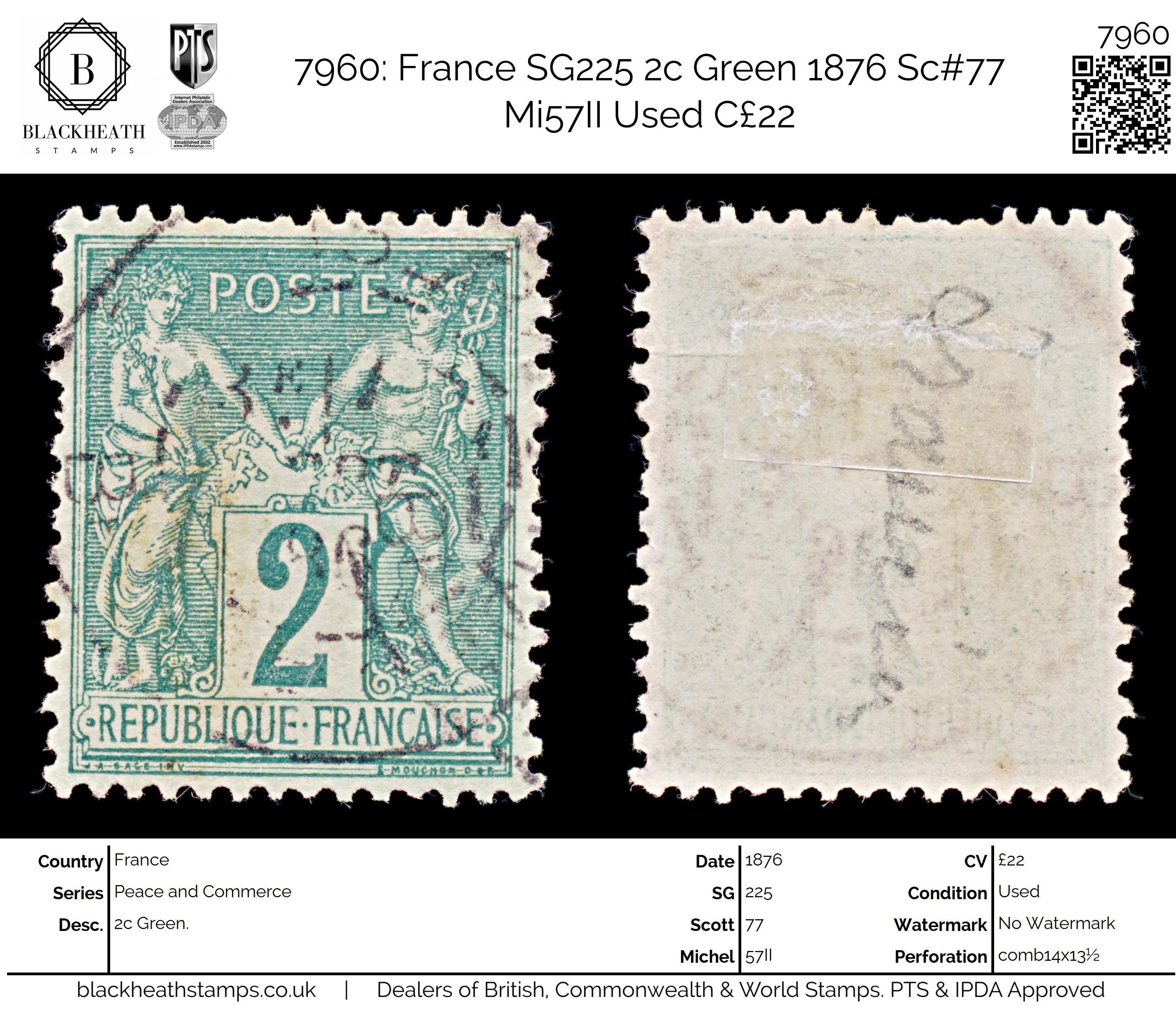 7960: France SG225 2c Green 1876 Sc#77 Mi57II Uséd C£22
