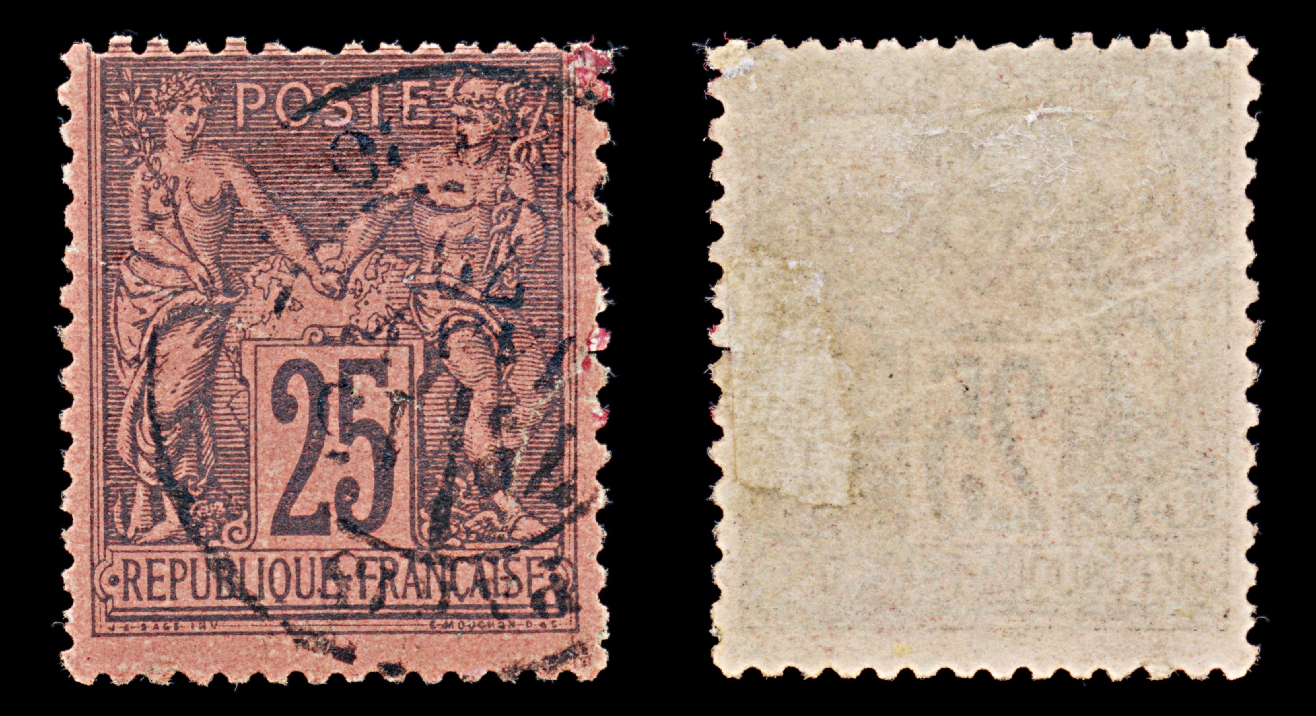 7964: France SG262 25c Black 1878 Sc#93 Mi74 Uséd C£28