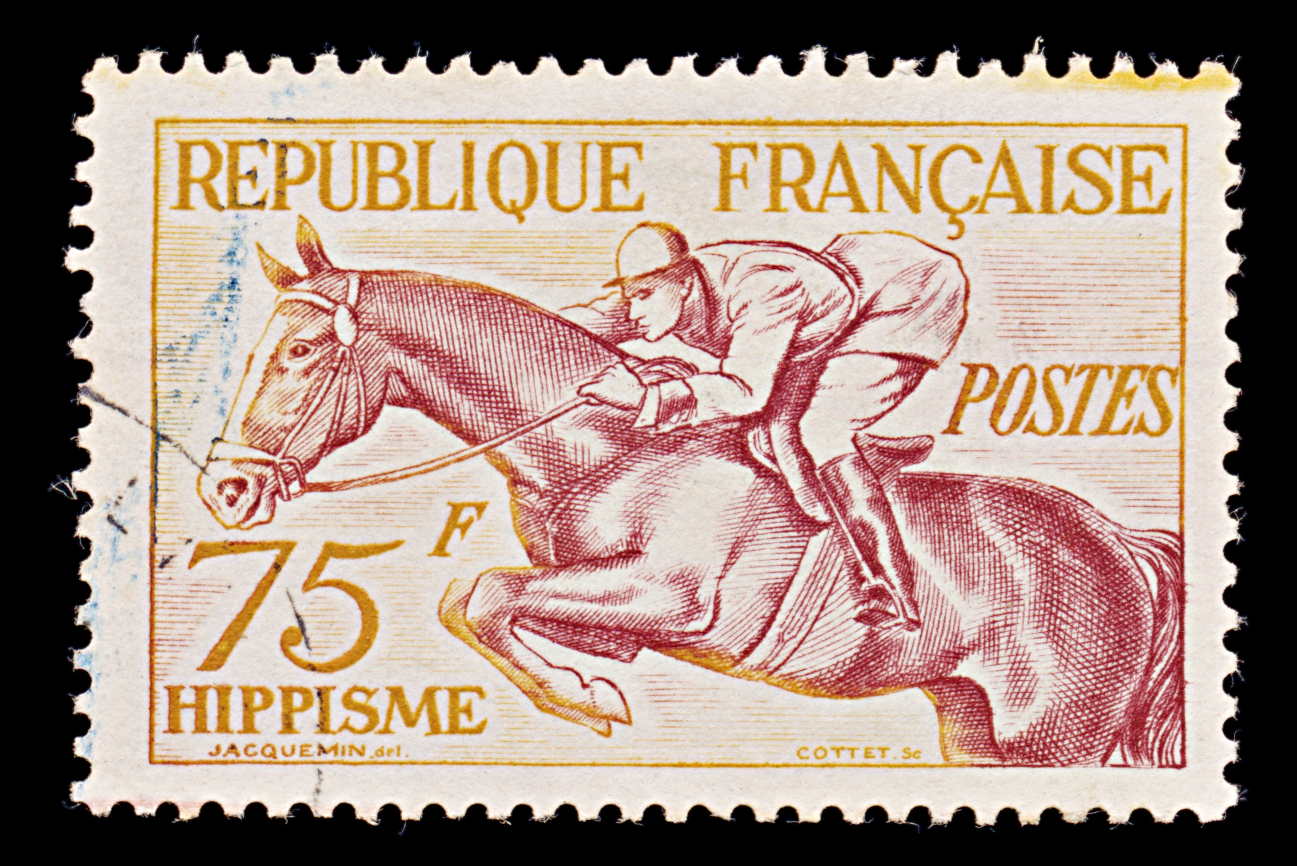 7967: France SG1190 75F Orange & Brown carmine 1953 Sc#705 Mi983 Used C£18