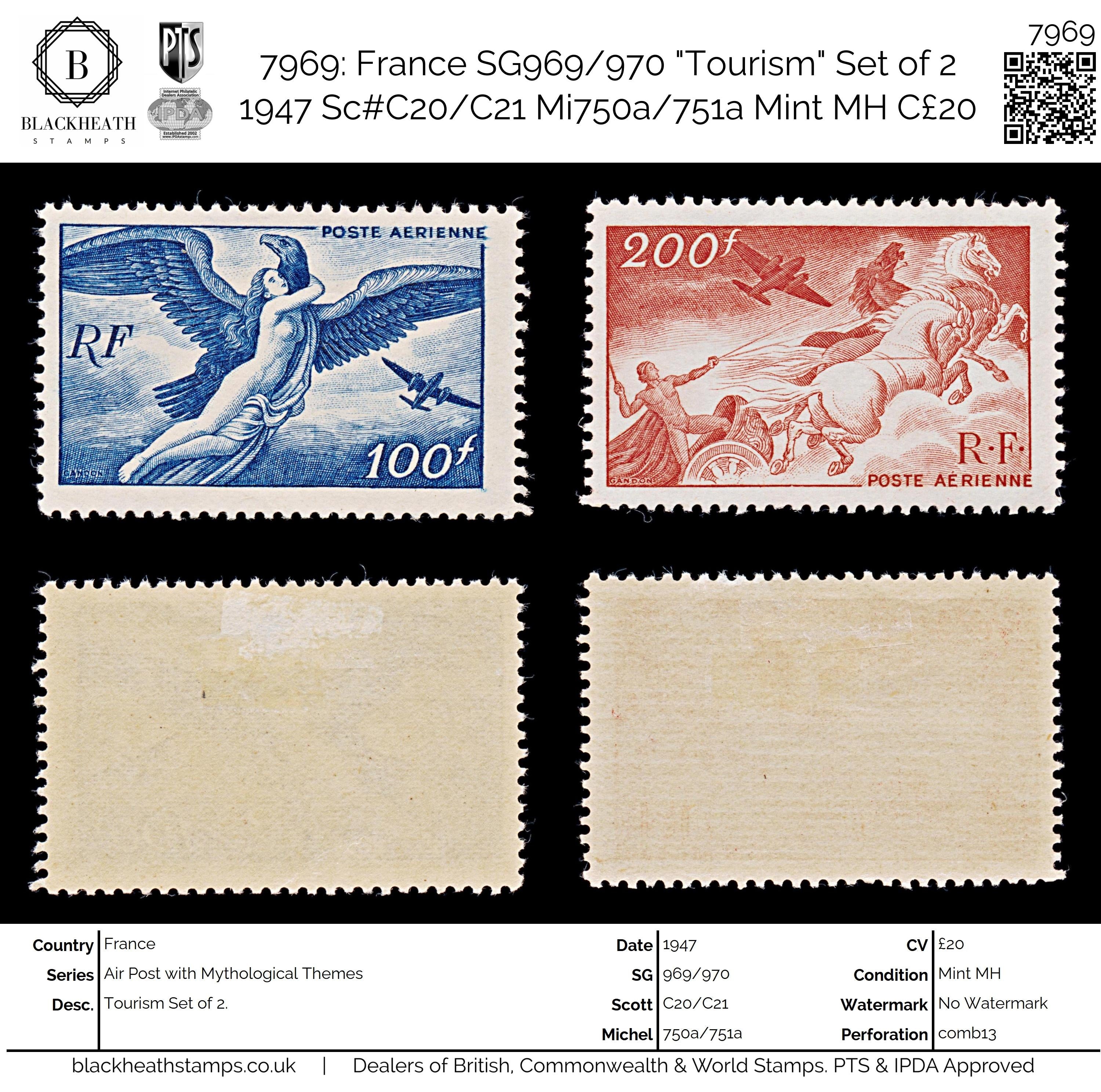7969: France SG969/970 "Tourism" Set of 2 1947 Sc#C20/C21 Mi750a/751a Mint MH C£20