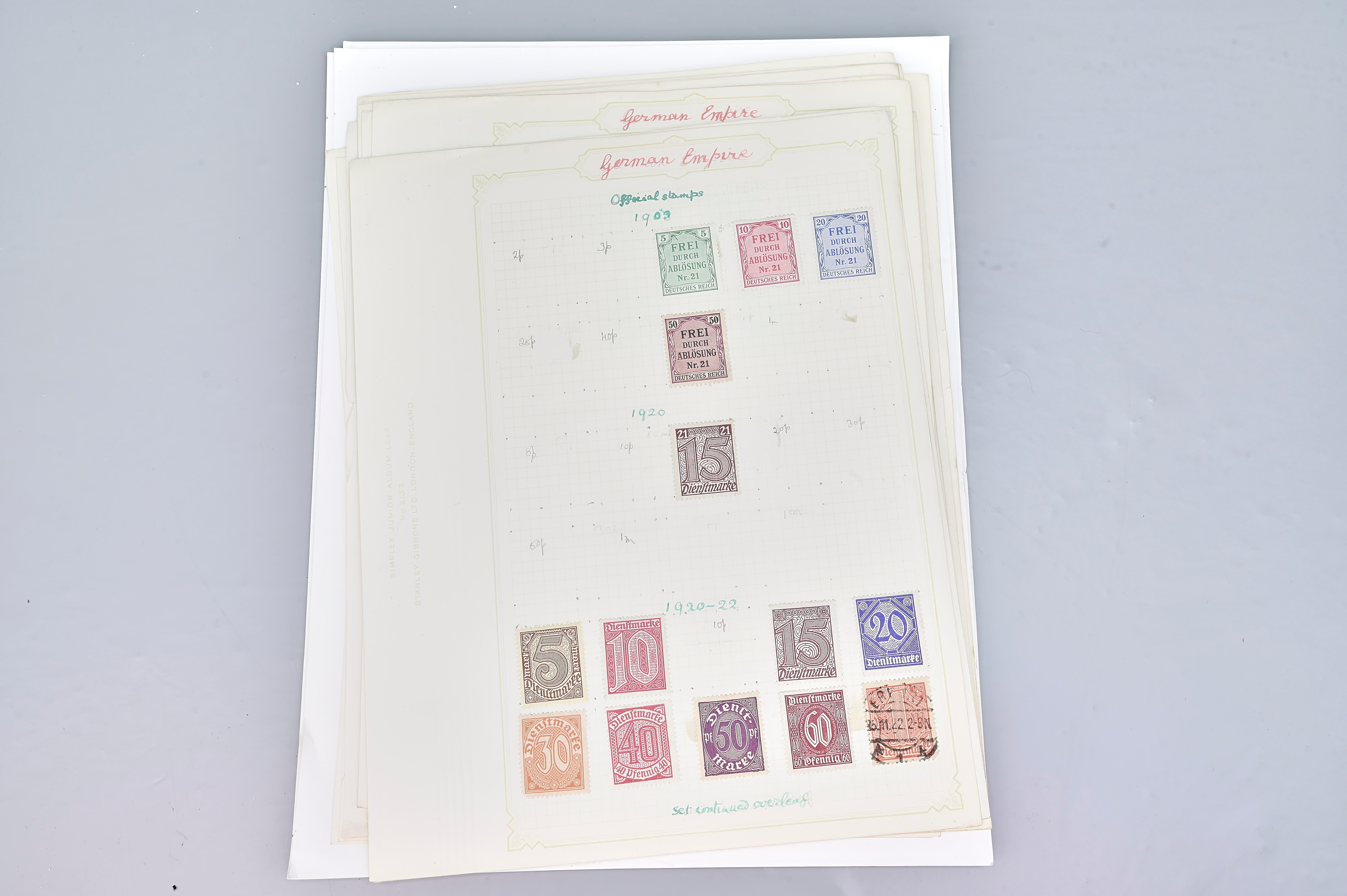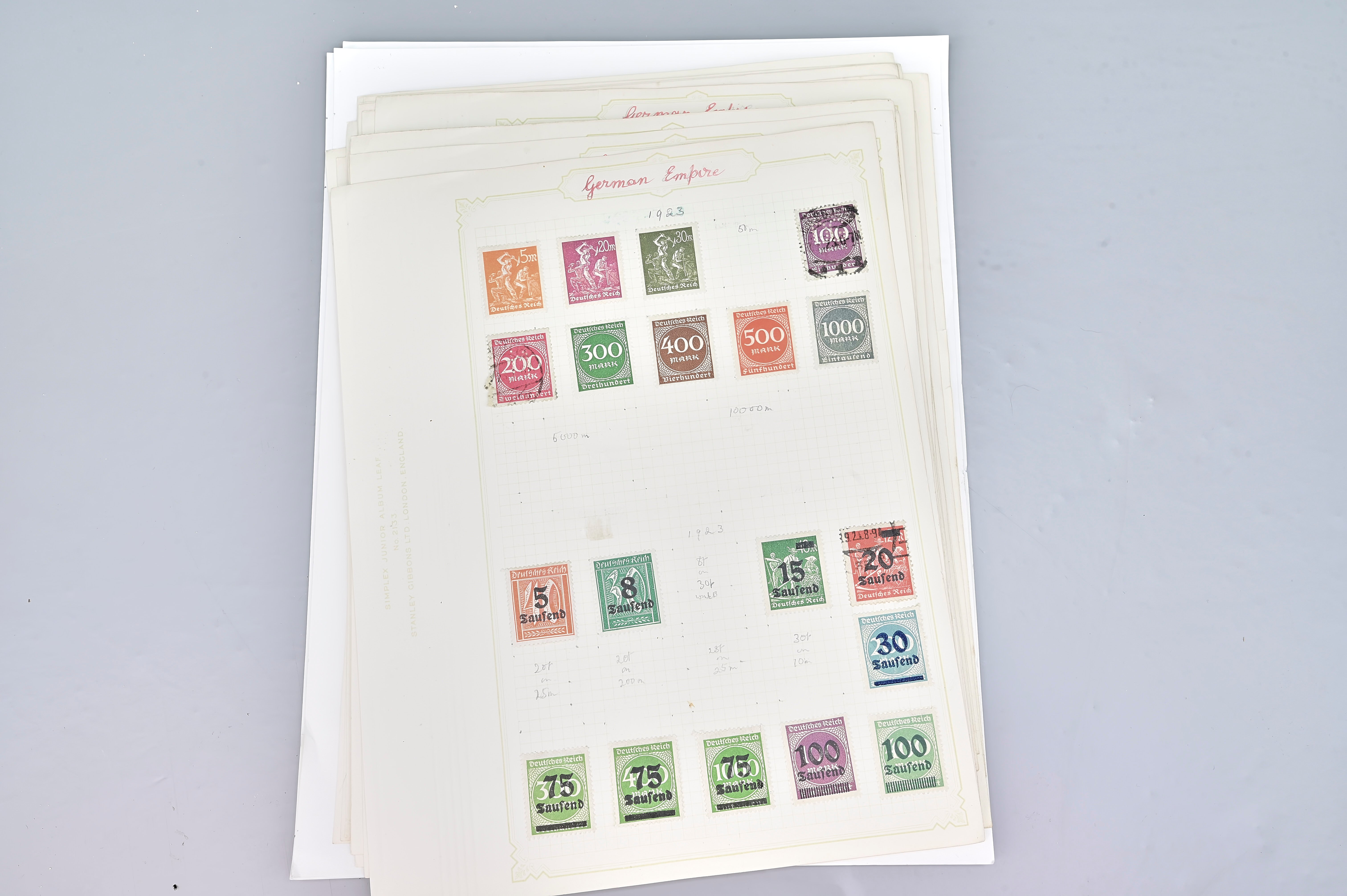 7989: Germany Collection on album pages. 1872 Onwards. 37 Images : Good Collection of German Realm stamps including early issues from 1872, good range of 19th Cent. Stamps including some higher values, nice ranges of mint and uséd including inflation stamps as well as commemoratives. Please view all 37 images closely
