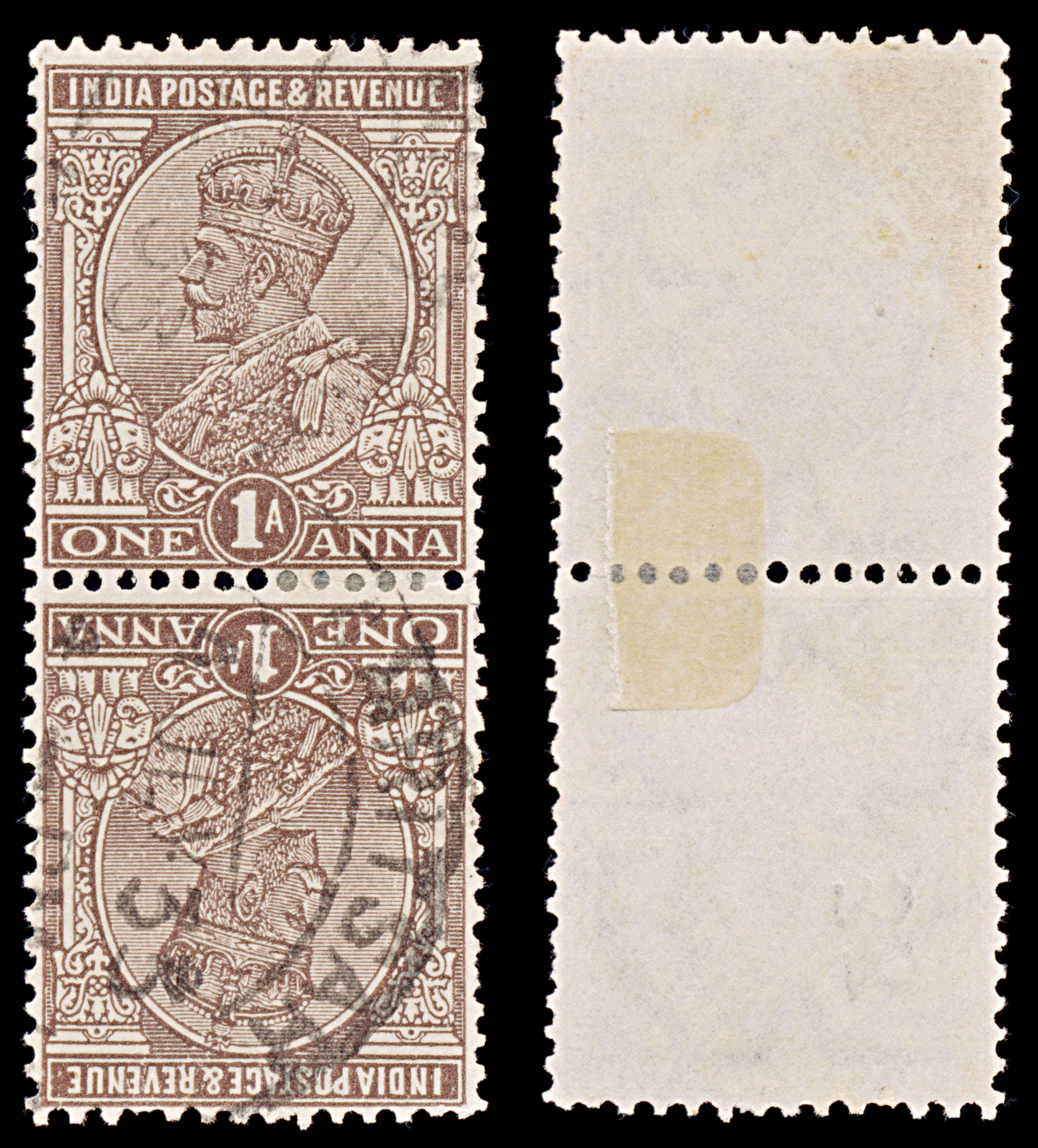 7998: India SG203a 2*1A Chocolate 1926 Mi102K Used C£12