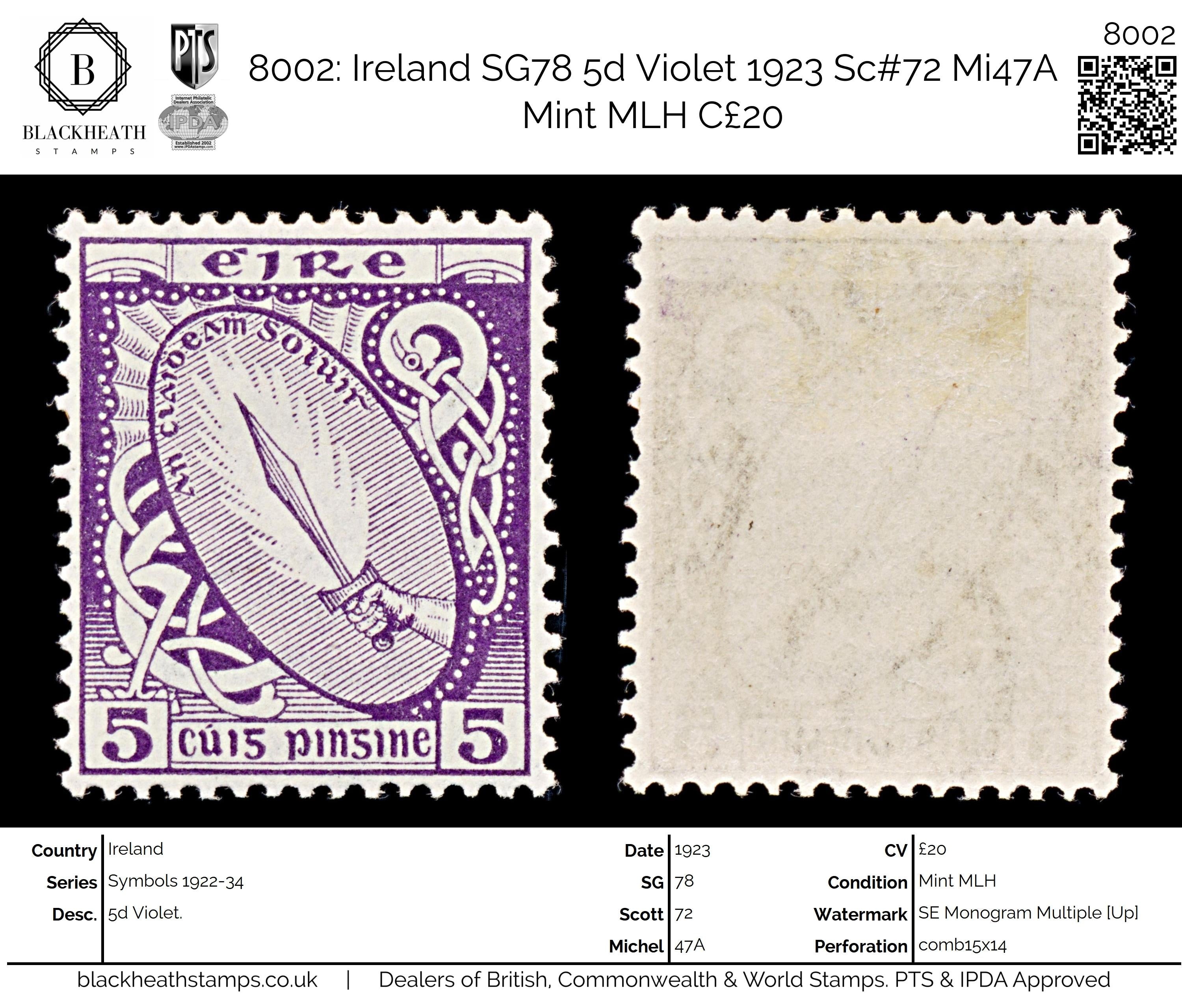 8002: Ireland SG78 5d Violet 1923 Sc#72 Mi47A Mint MLH C£20