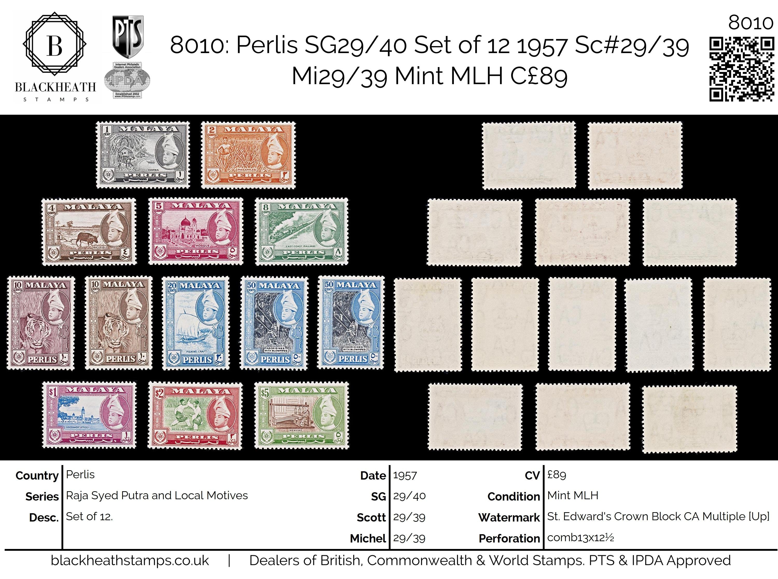 8010: Perlis SG29/40 Set of 13 1957 Sc#29/39 Mi29/39 Mint MLH C£89