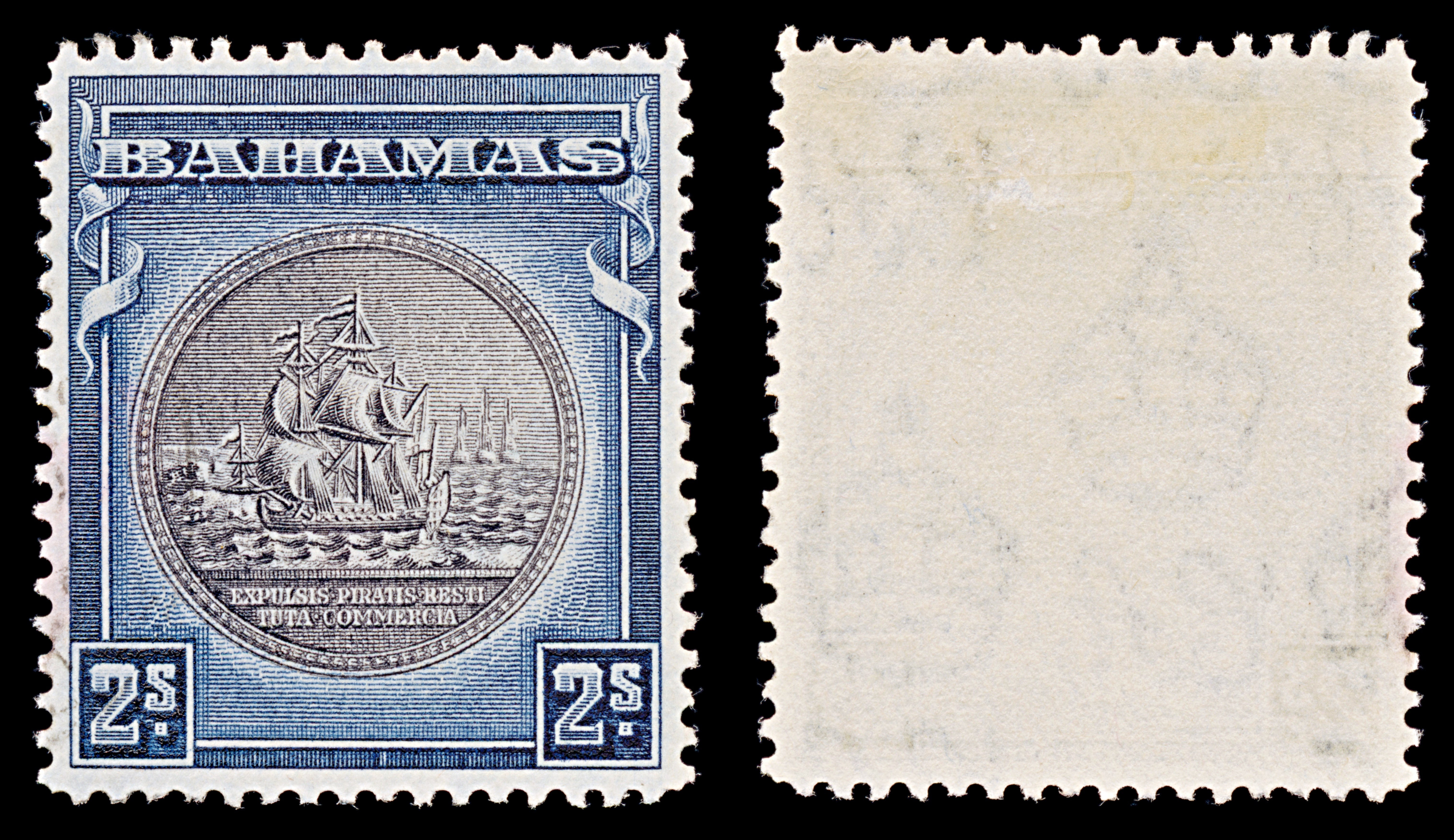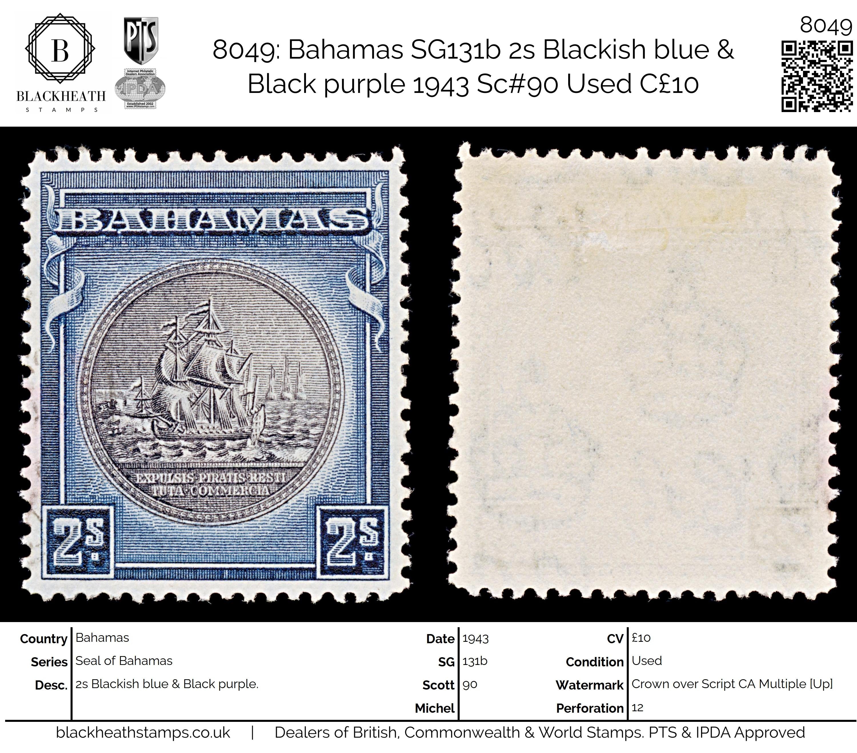 8049: Bahamas SG131b 2s Blackish blue & Black purple 1943 Sc#90 Used C£10