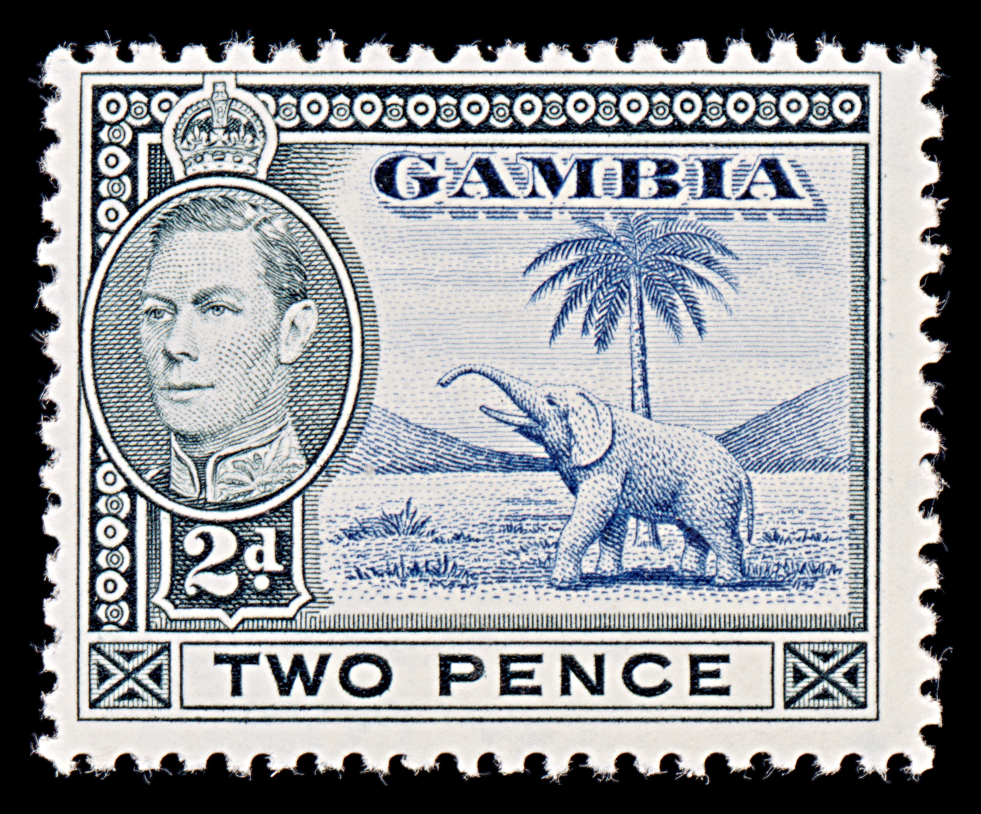 8054: Gambia SG153 2d Blue & Black 1938 Sc#135 Mi127 Mint MLH C£15