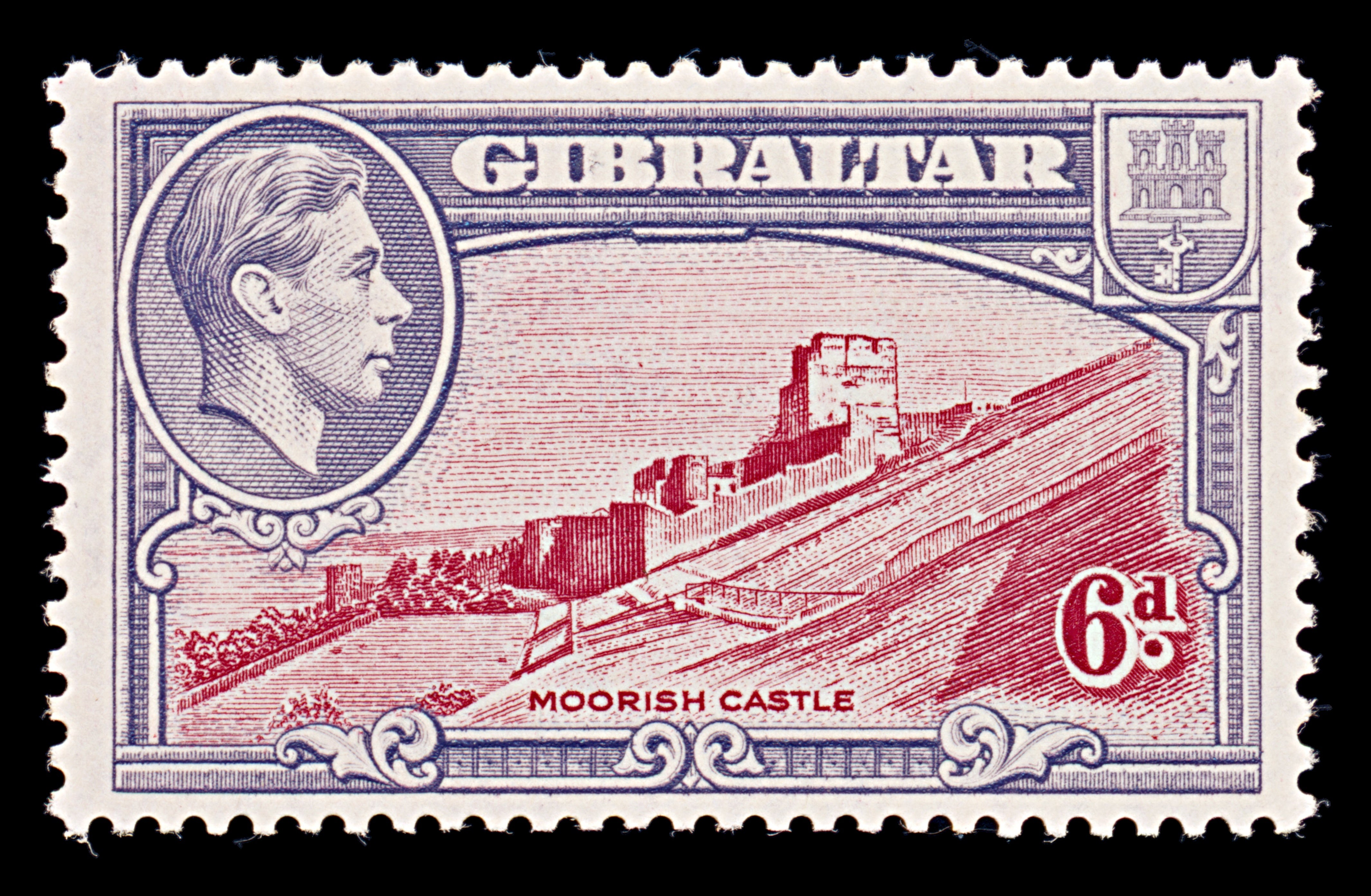8058: Gibraltar SG126c 6d Grey violet & Scarlet 1942 Sc#113 Mi112D Mint MH C£14