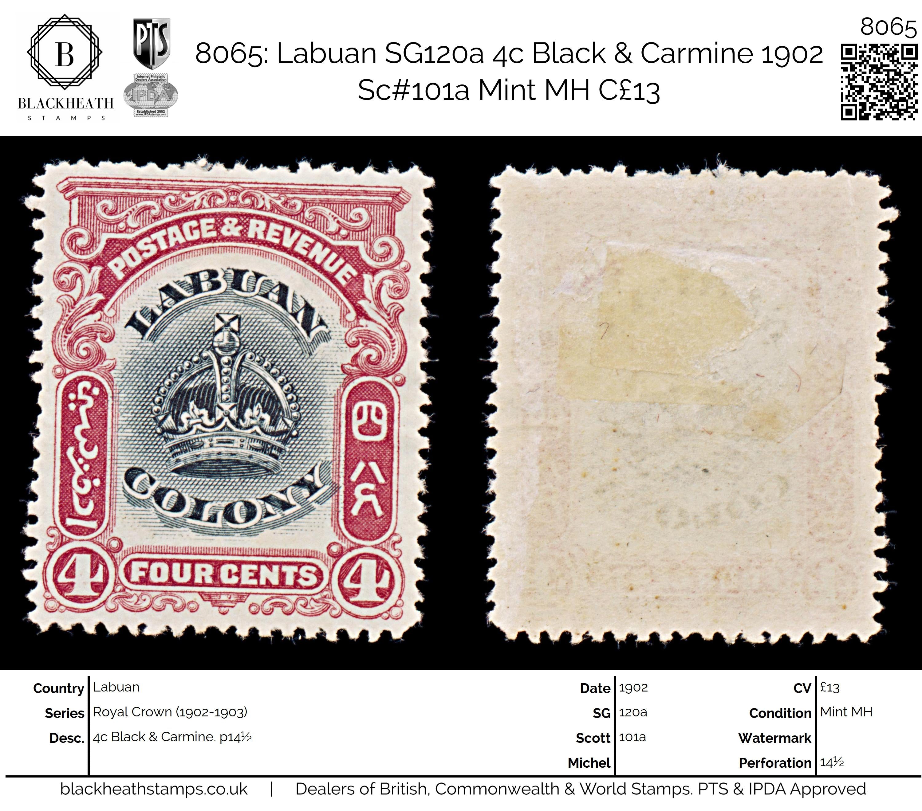 8065: Labuan SG120a 4c Black & Carmine 1902 Sc#101a Mint MH C£13
