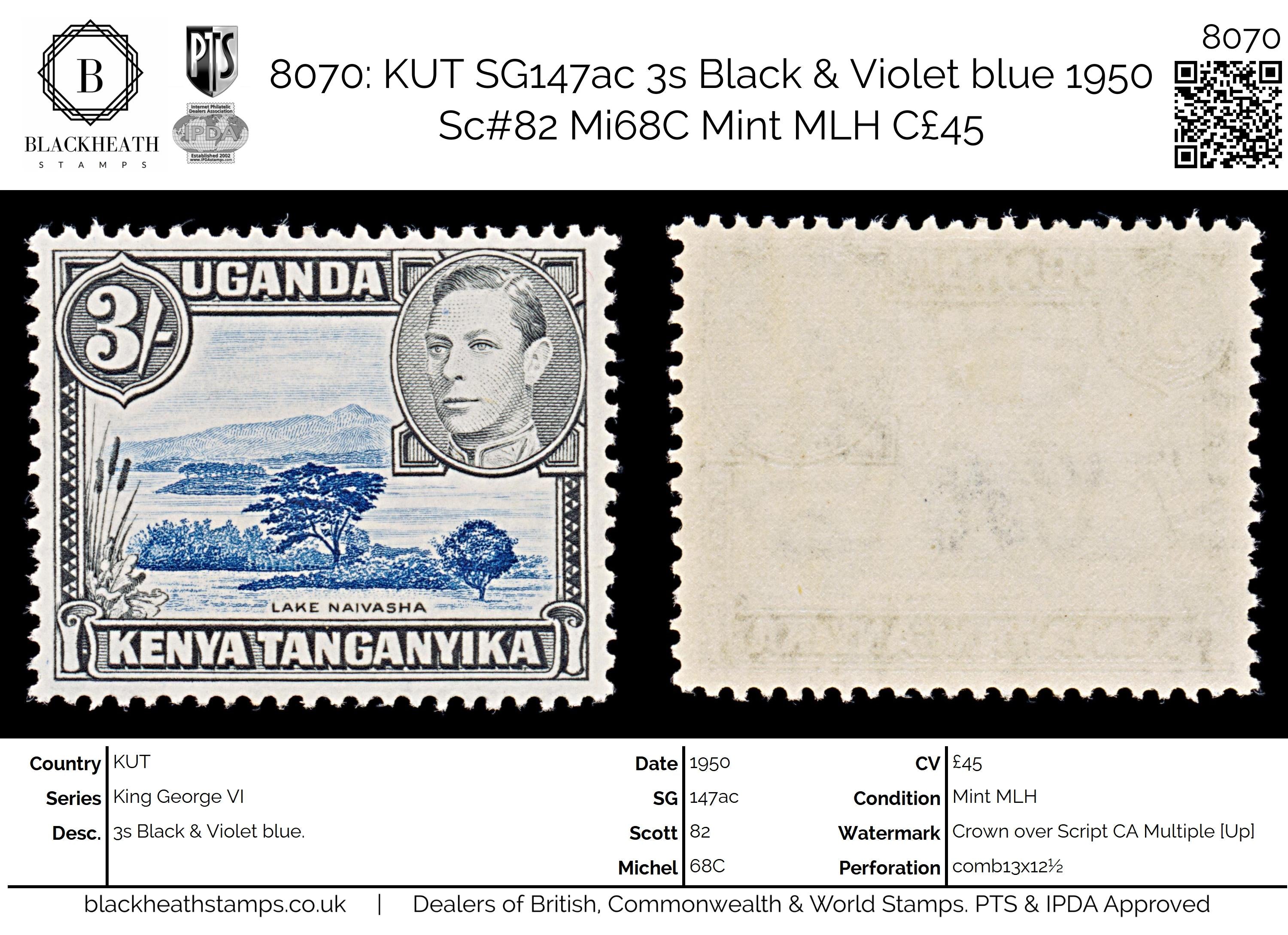 8070: KUT SG147ac 3s Black & Violet blue 1950 Sc#82 Mi68C Mint MLH C£45