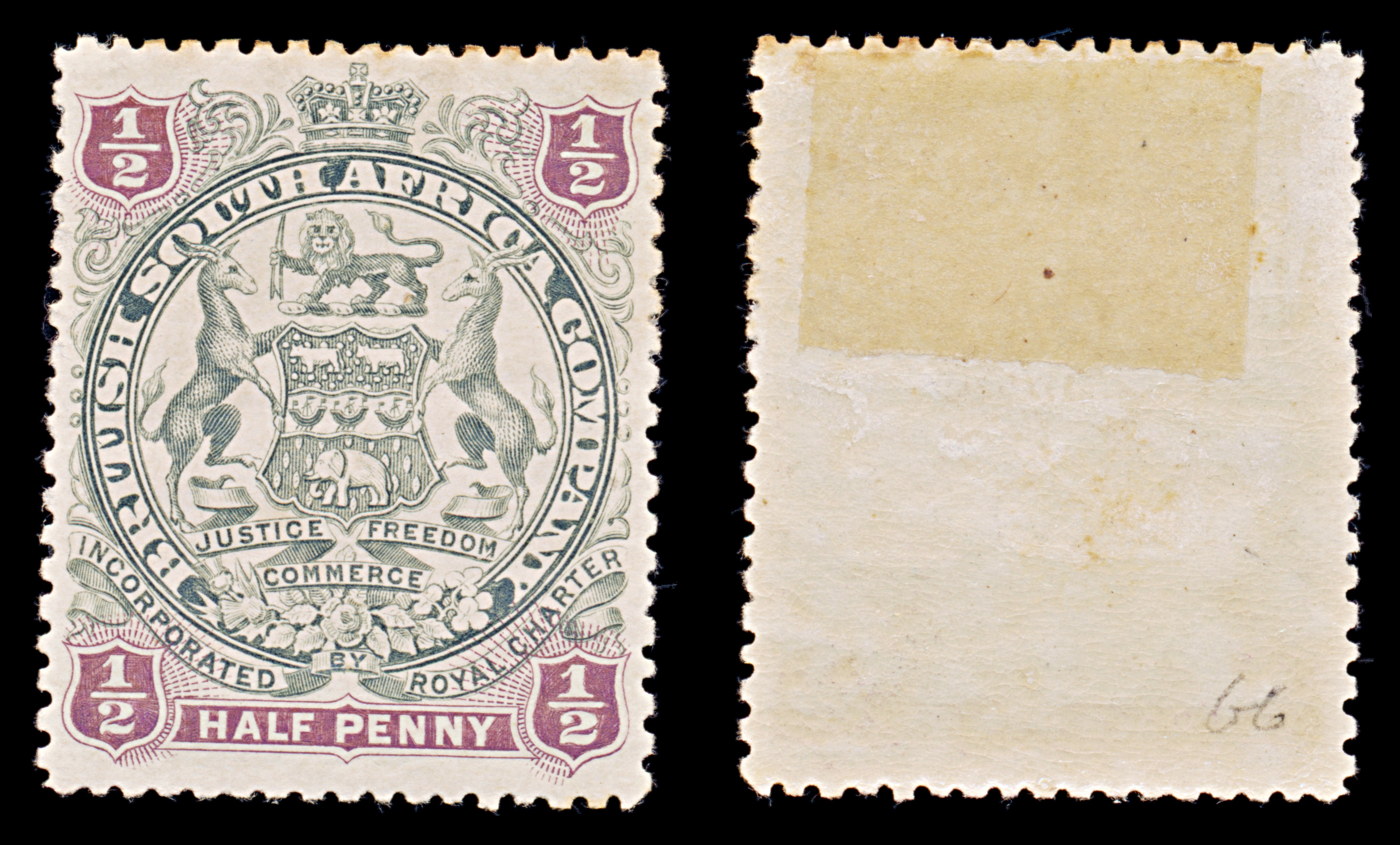 8074: South Africa Company SG66 ½d Violet & Slate 1897 Sc#50 Mi49 Mint MH C£8