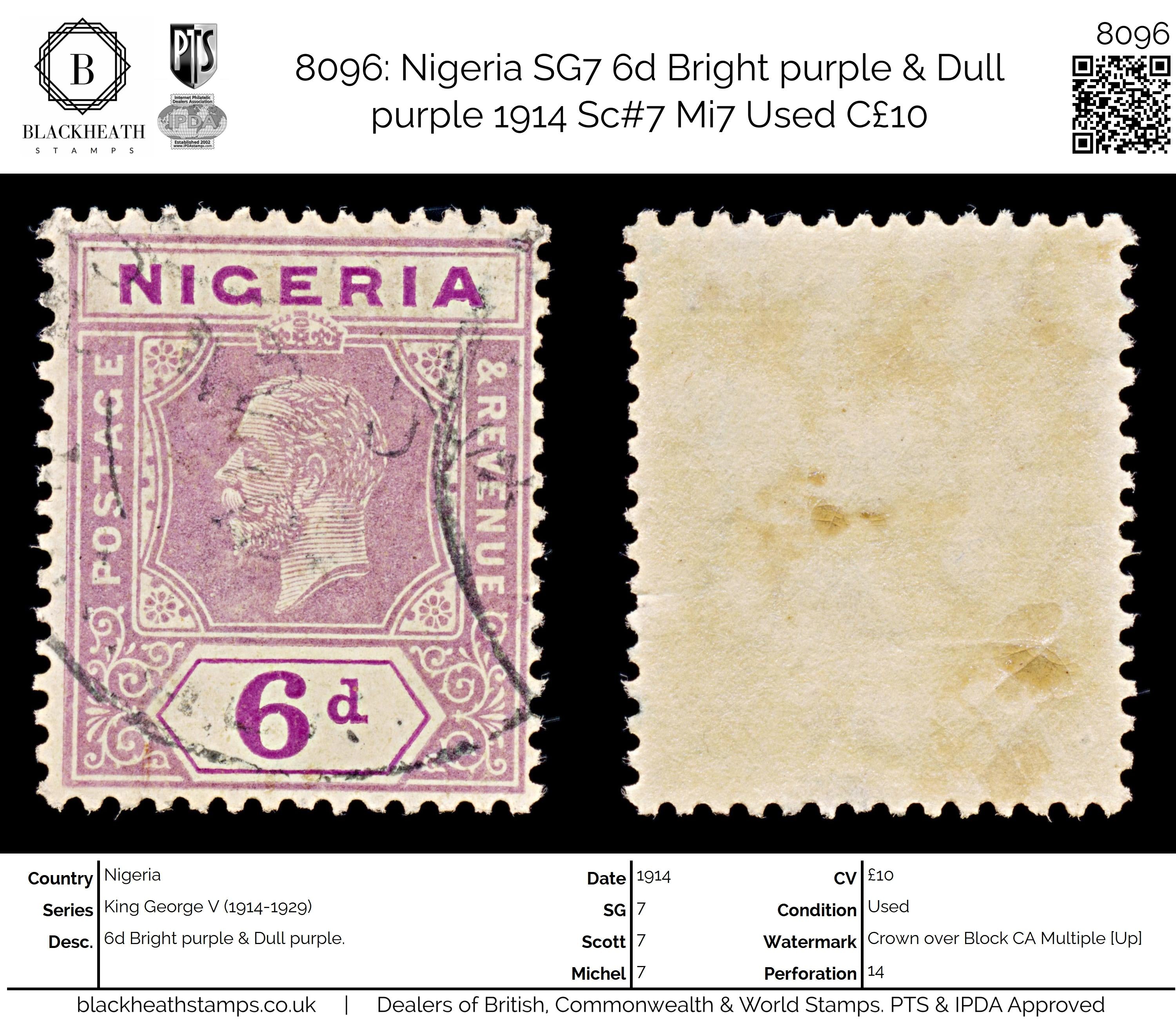 8096: Nigeria SG7 6d Bright purple & Dull purple 1914 Sc#7 Mi7 Uséd C£10