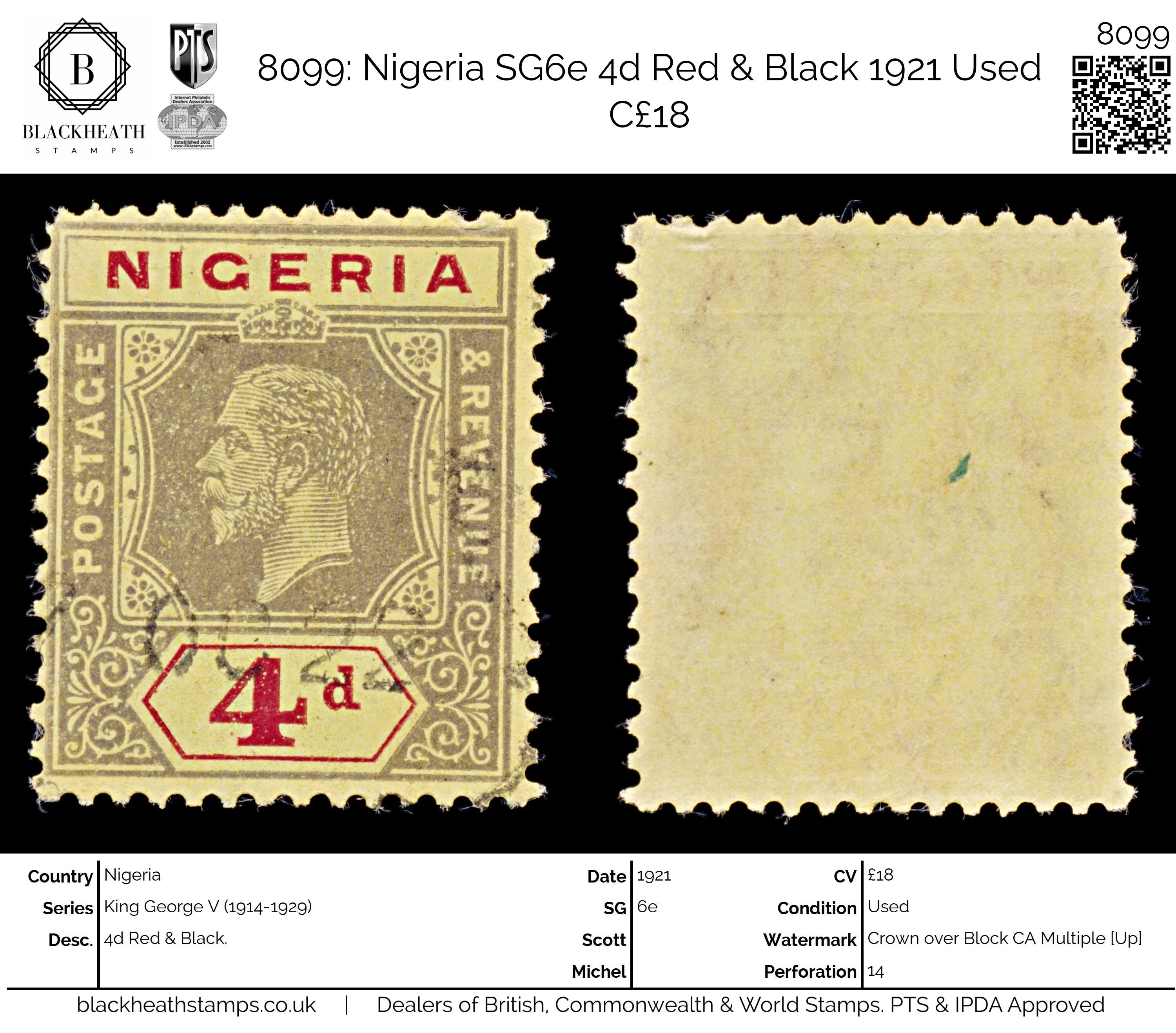 8099: Nigeria SG6e 4d Red & Black 1921 Uséd C£18