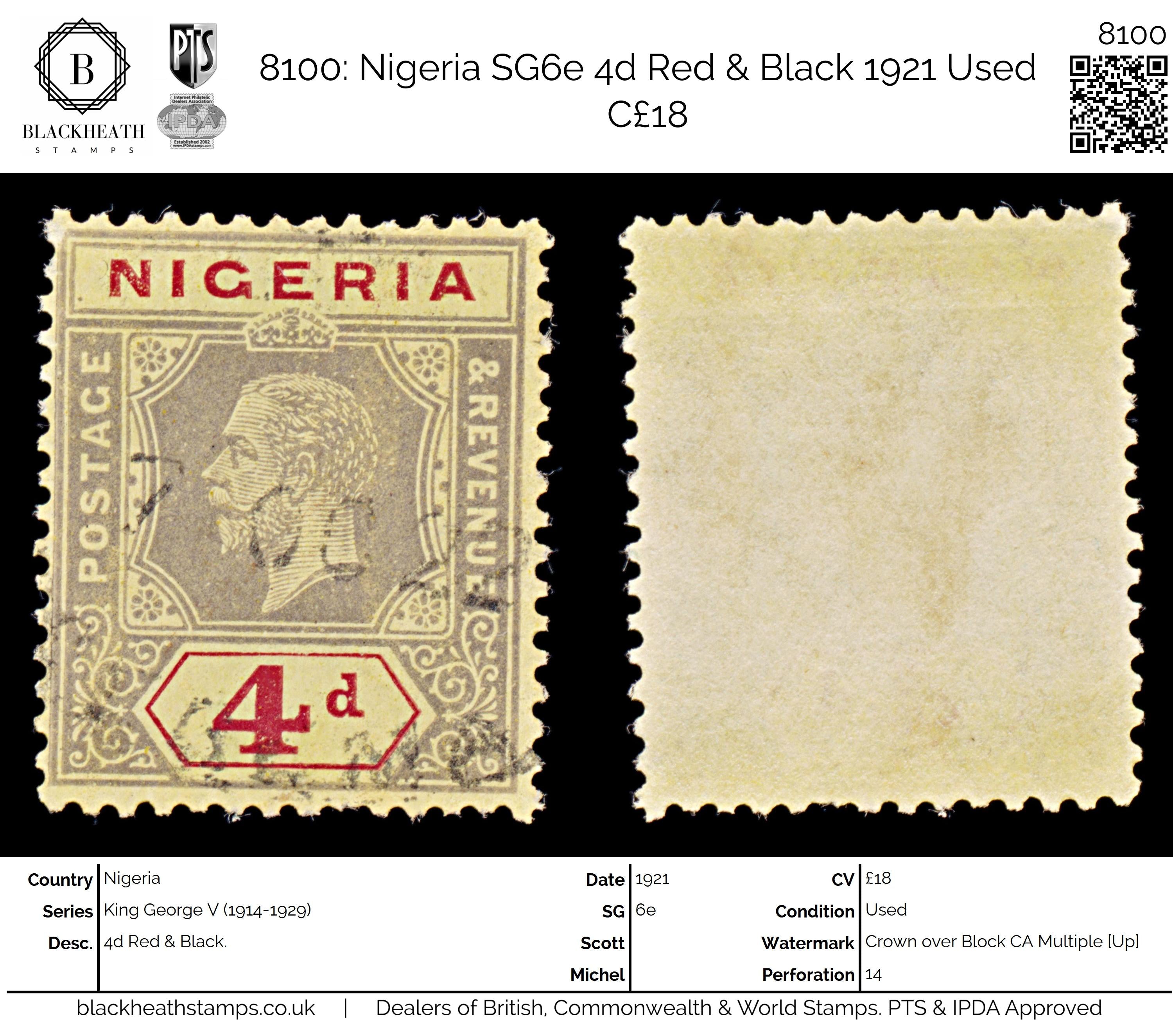 8100: Nigeria SG6e 4d Red & Black 1921 Used C£18