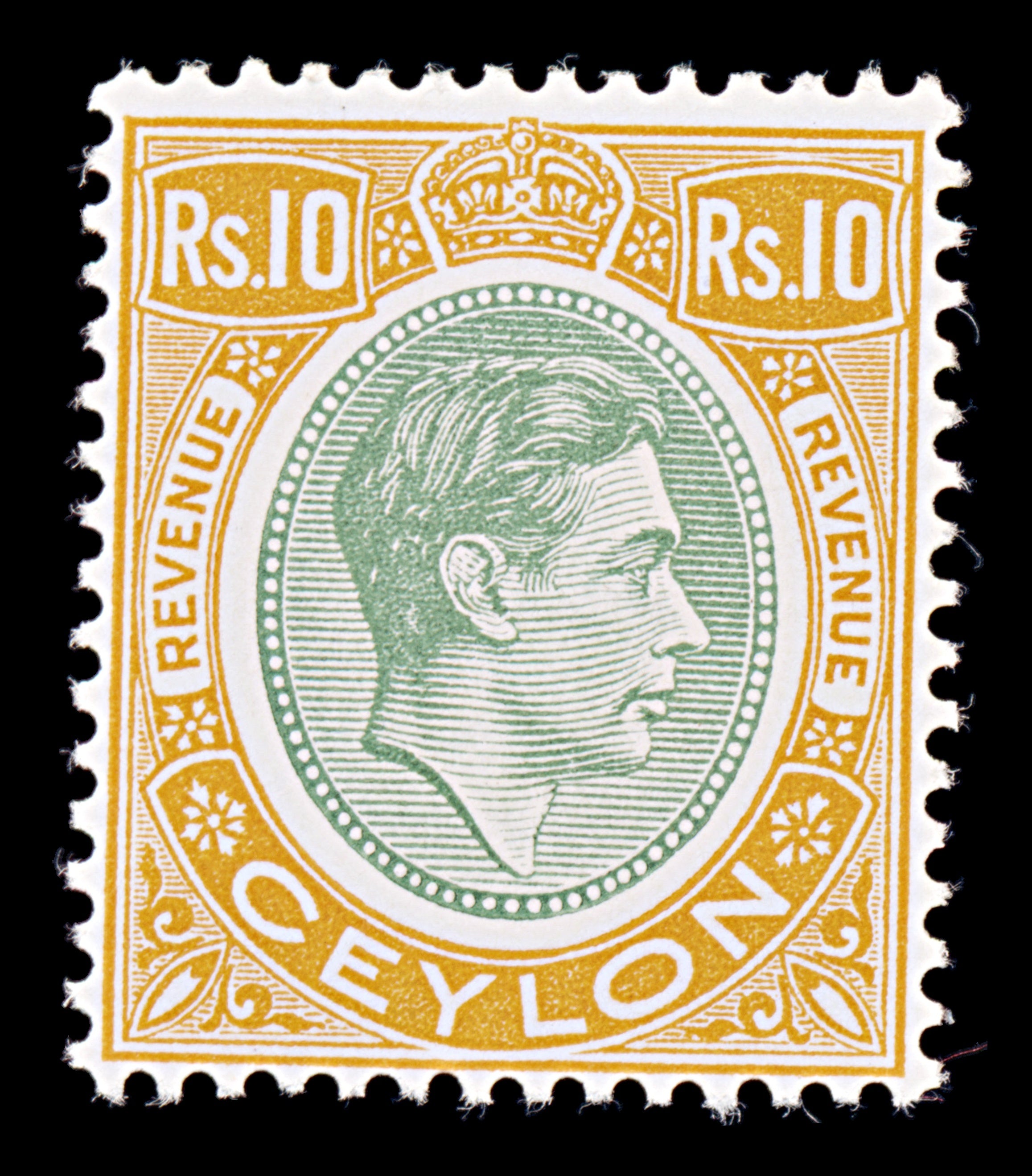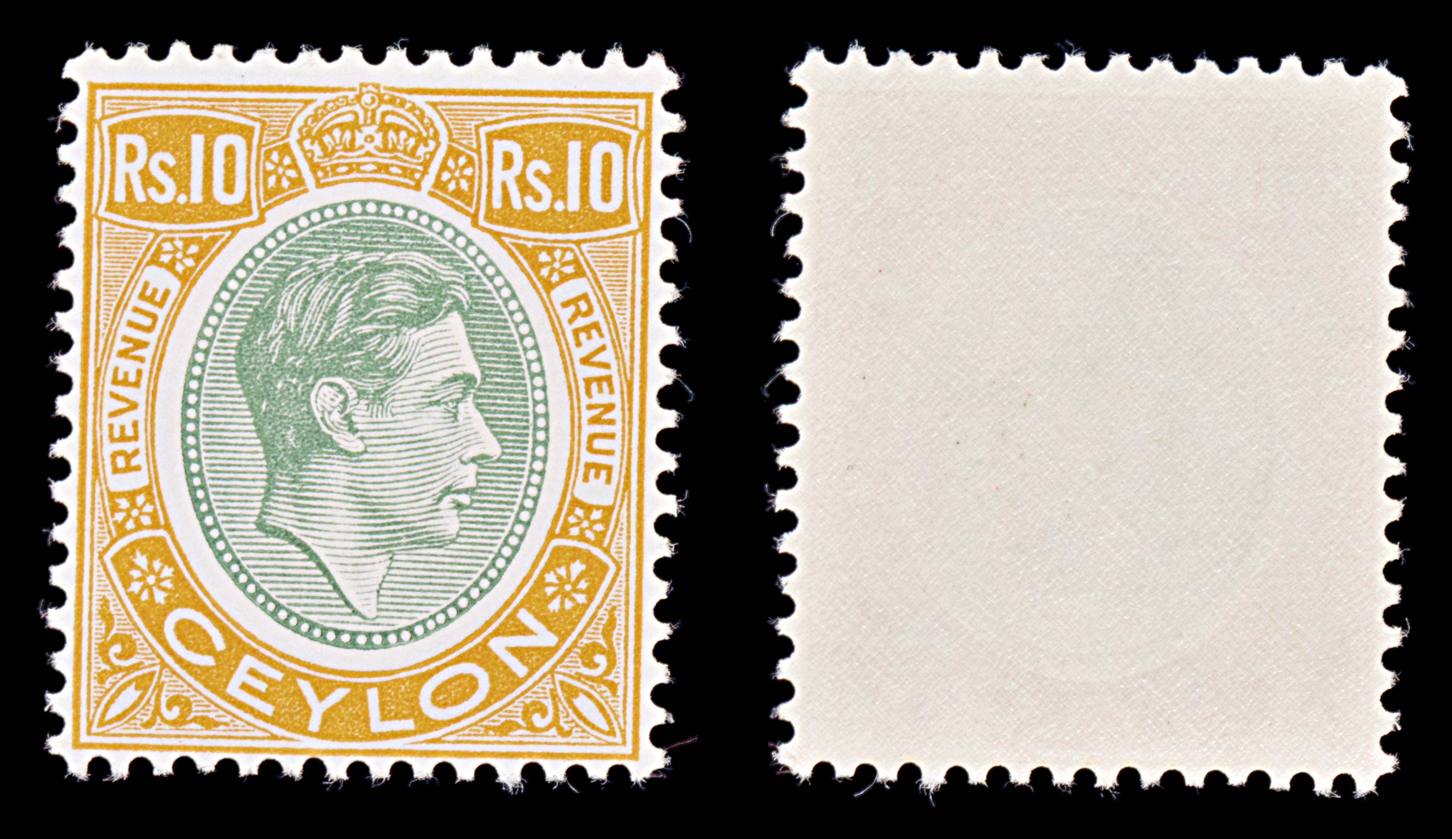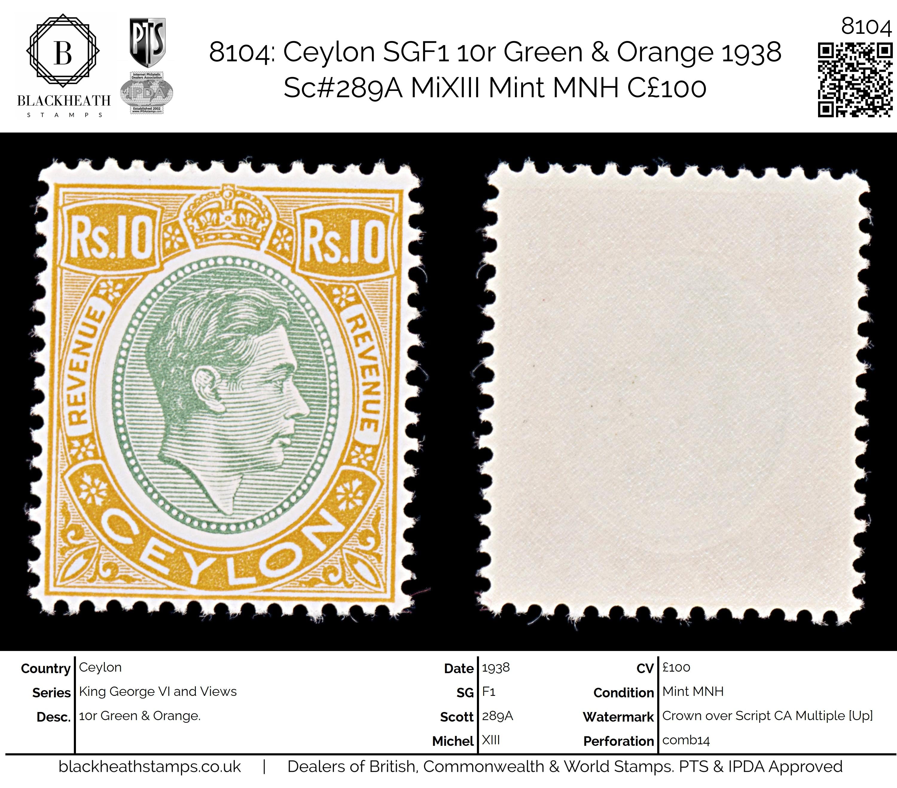 8104: Ceylon SGF1 10r Green & Orange 1938 Sc#289A MiXIII Mint MNH C£100