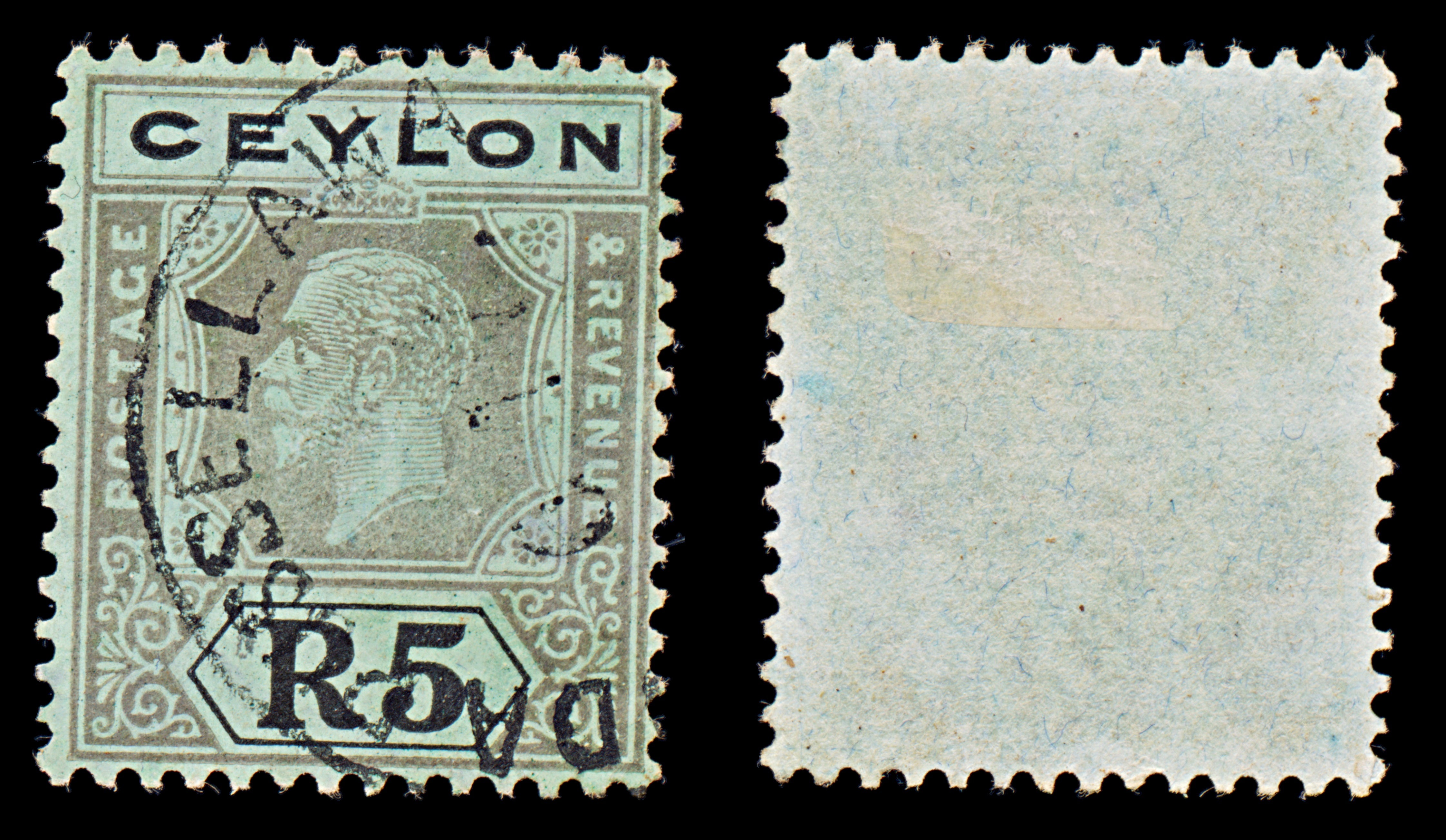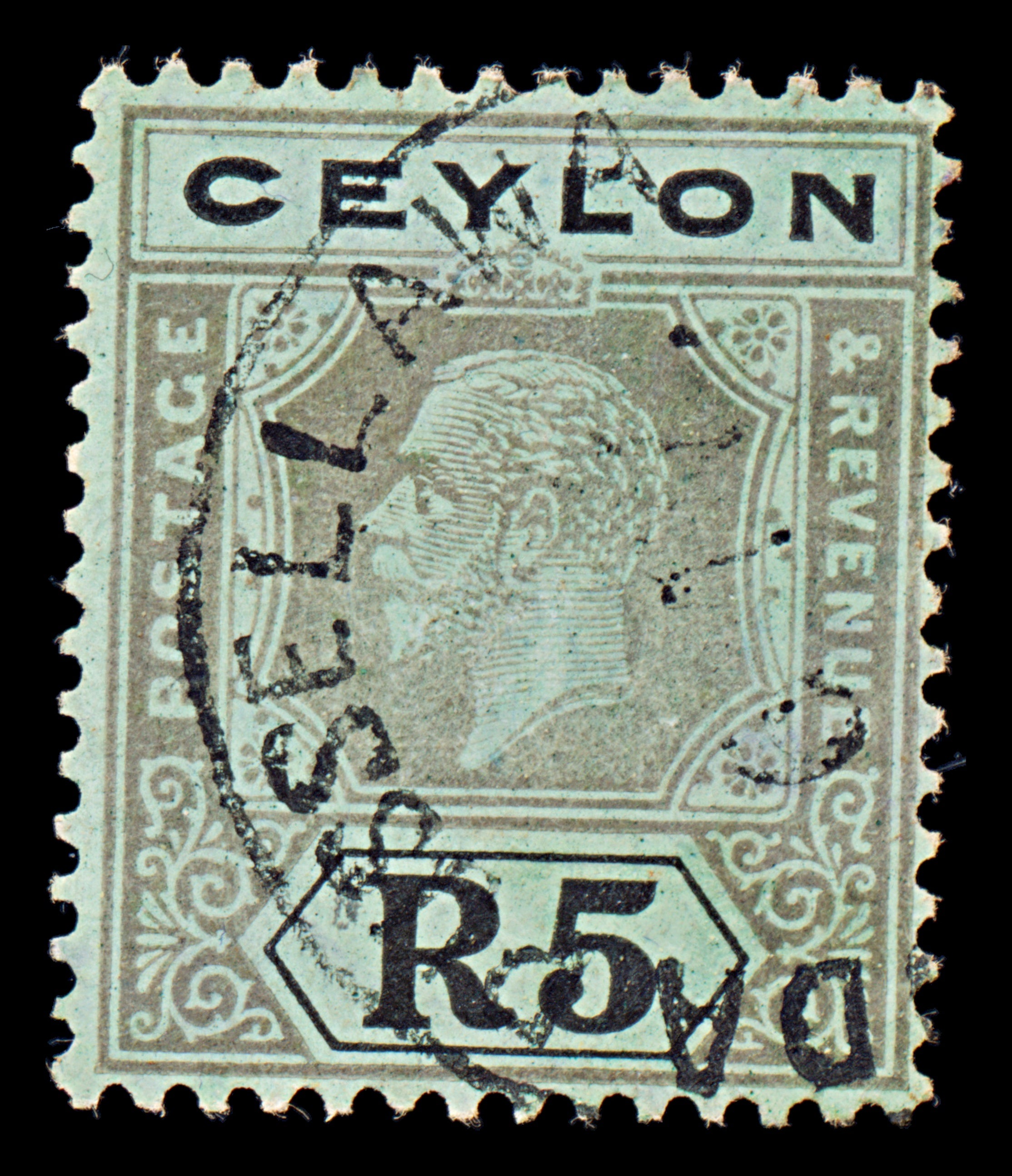 8110: Ceylon SG356 5r Black & Emerald 1924 Sc#243 Mi203 Used C£95