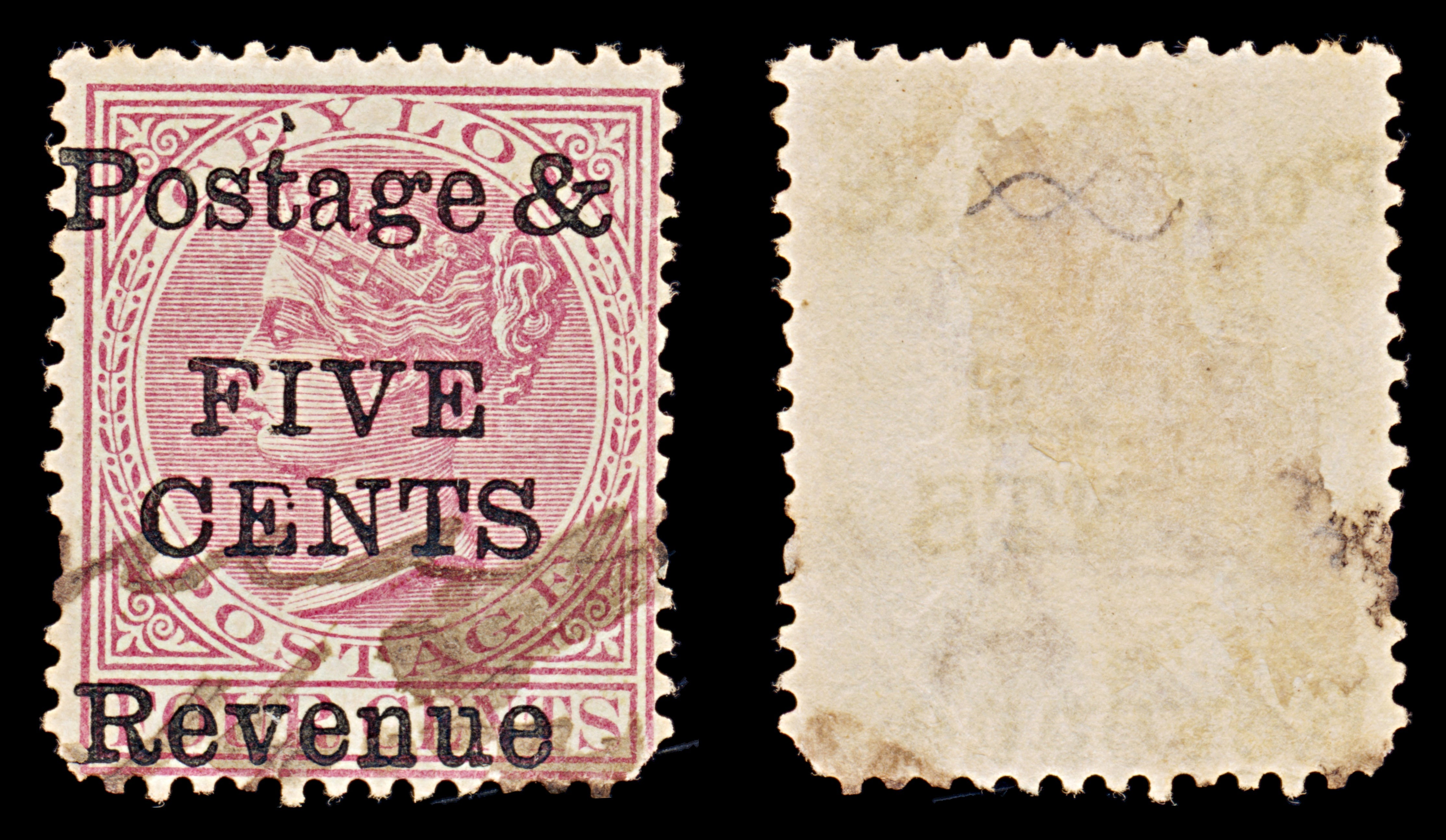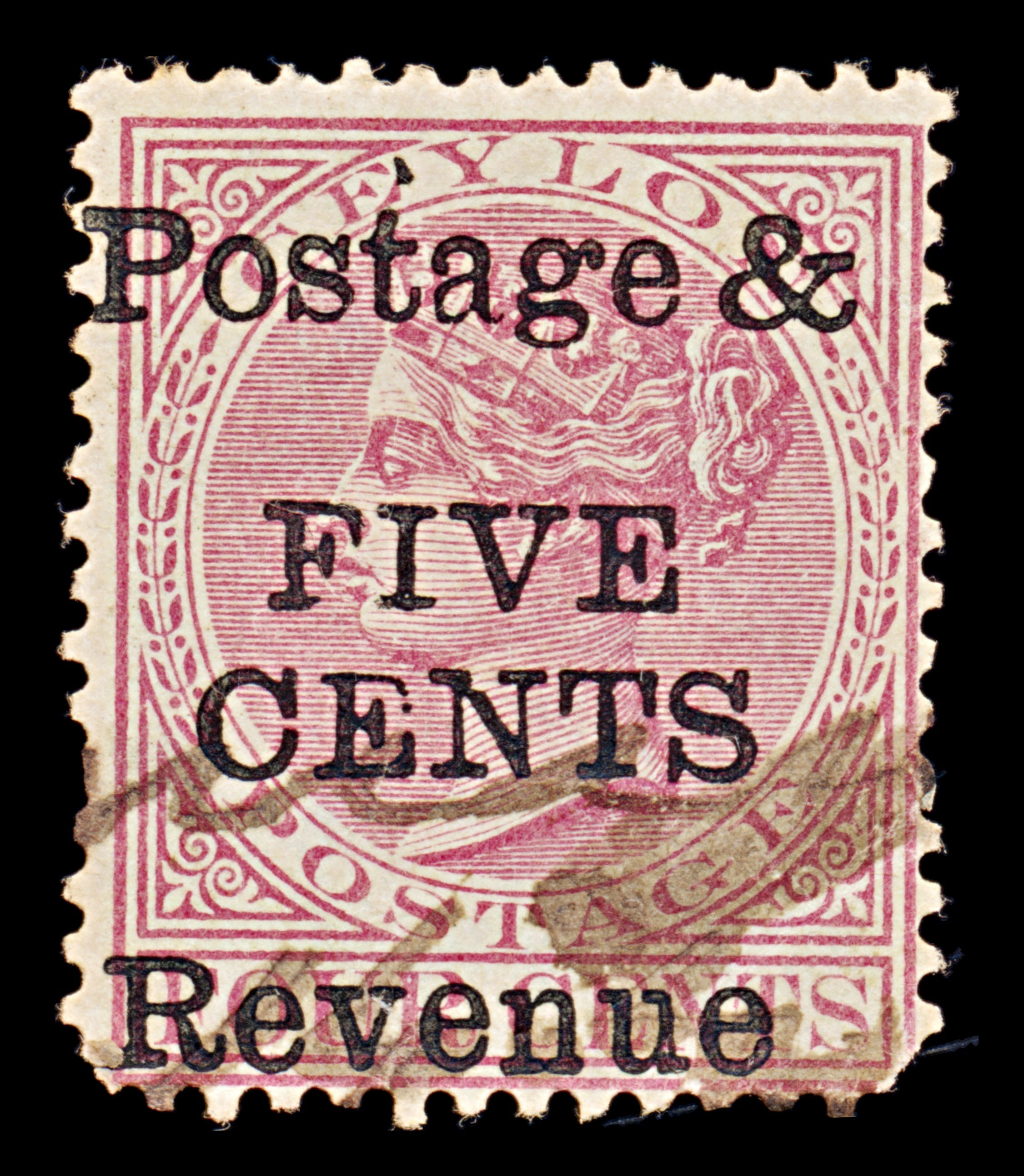 8116: Ceylon SG178 Overprint Flaw above "t" 1885 Sc#117 Mi65 Uséd: Large overprint flaw above "t" of "Postage"