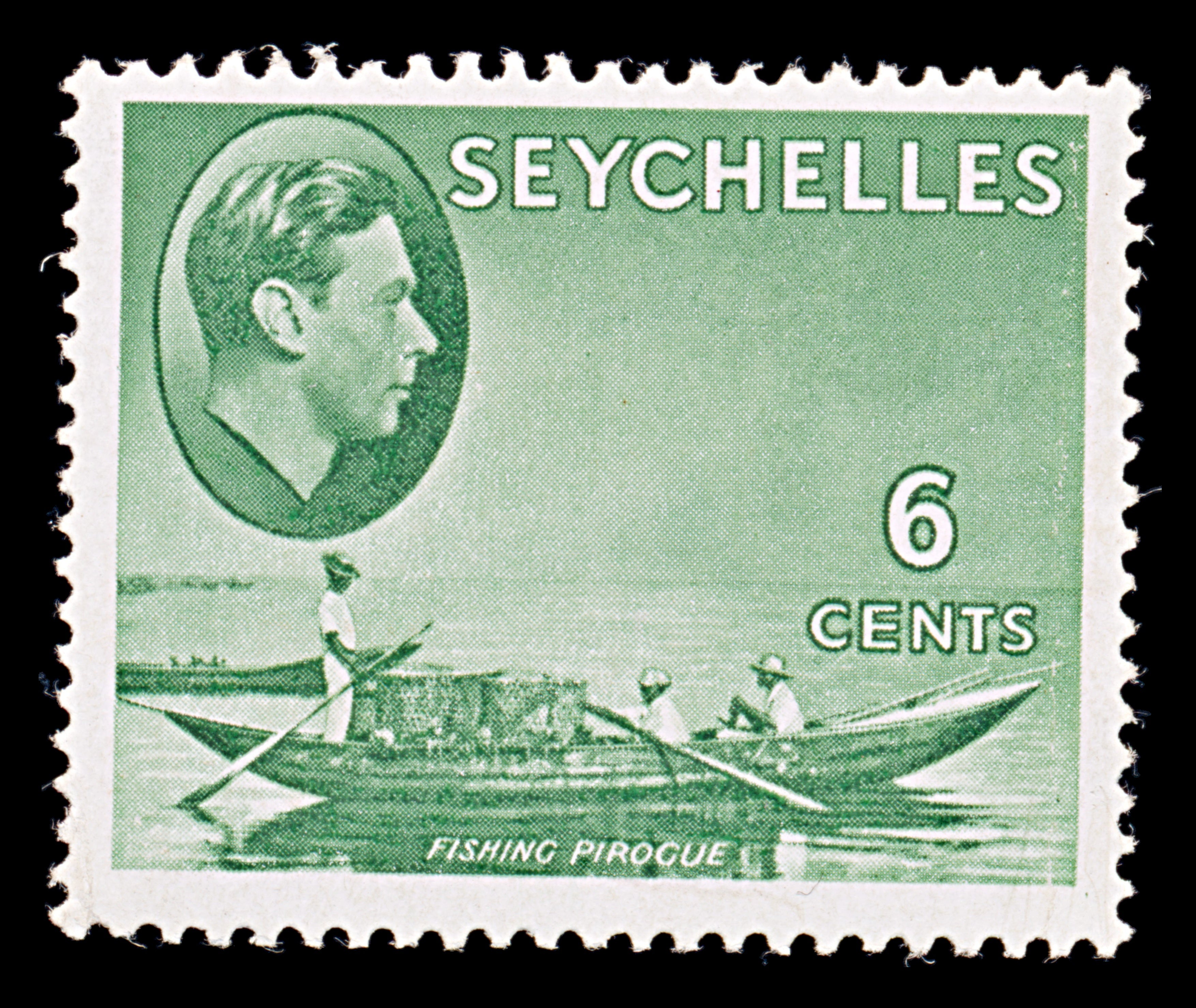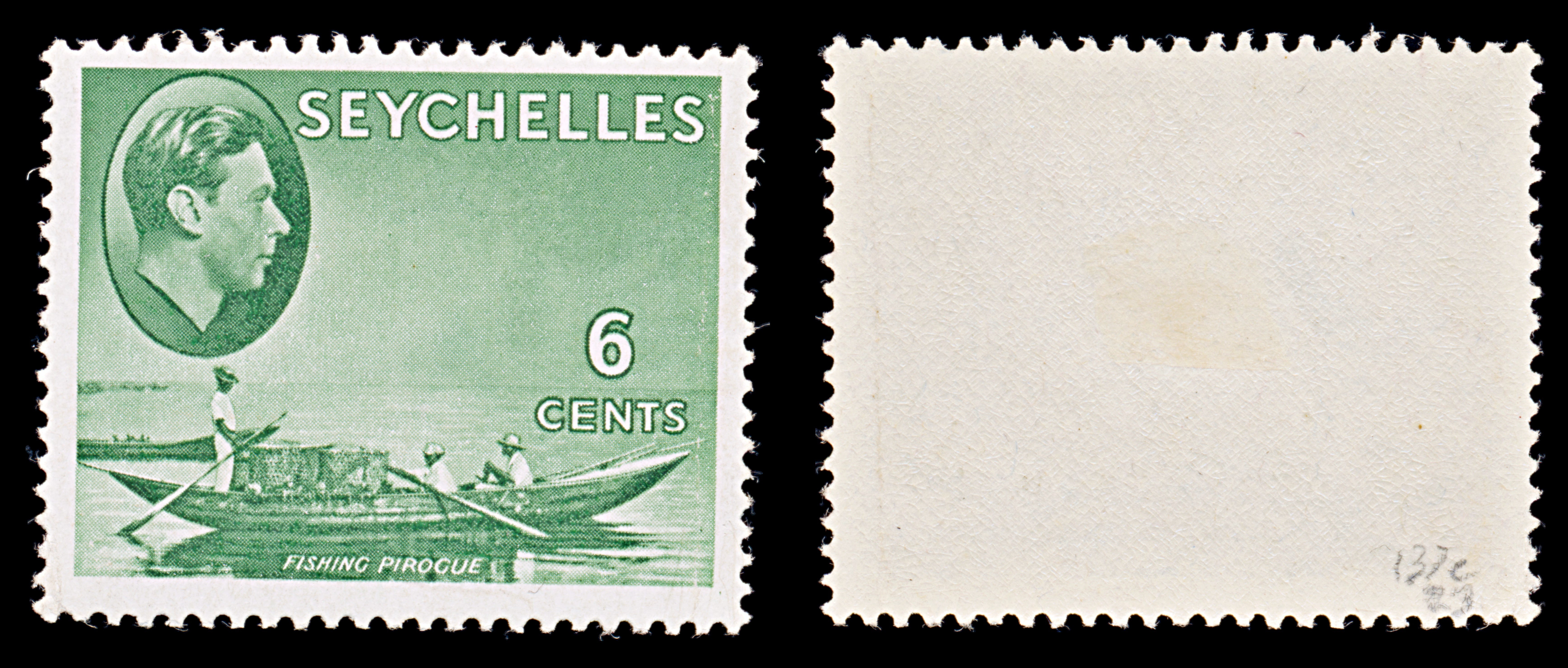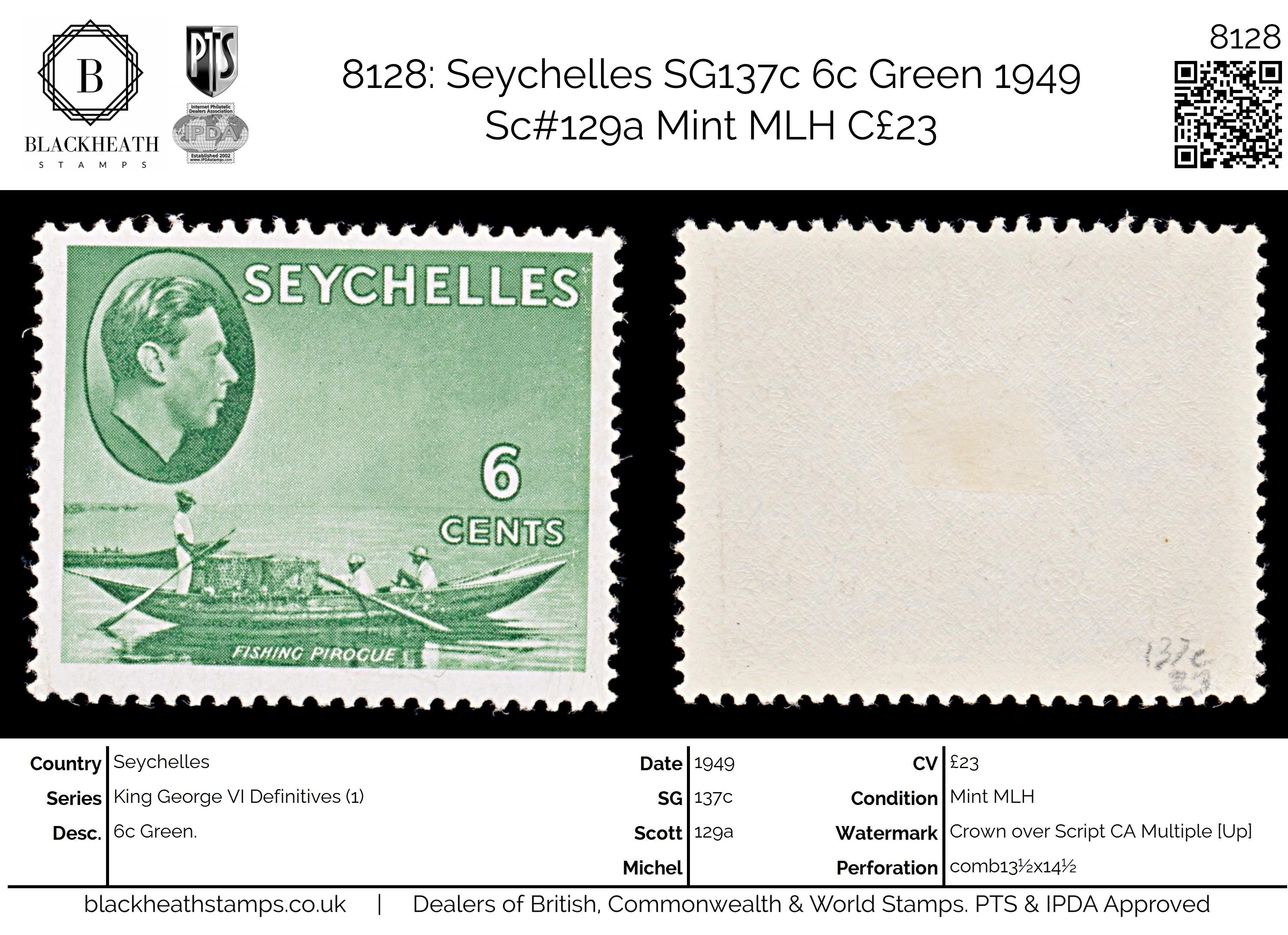 8128: Seychelles SG137c 6c Green 1949 Sc#129a Mint MLH C£23