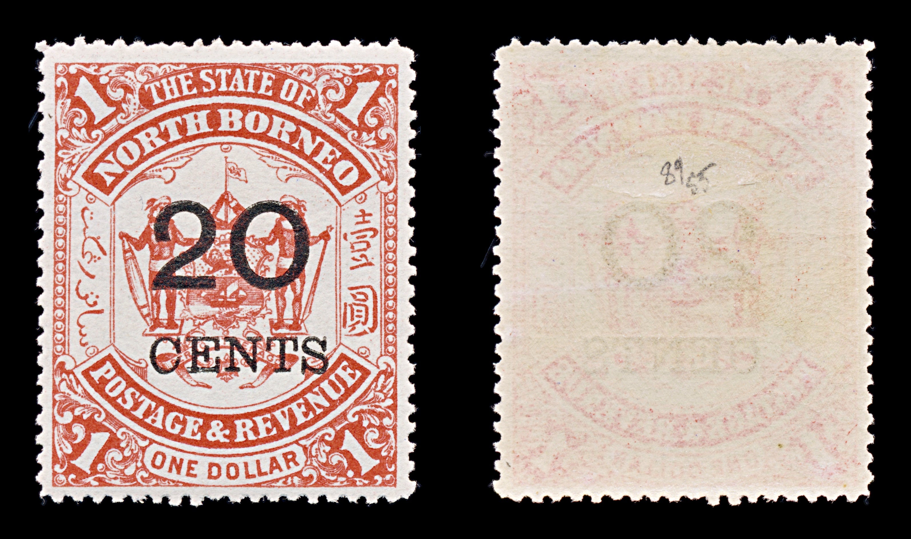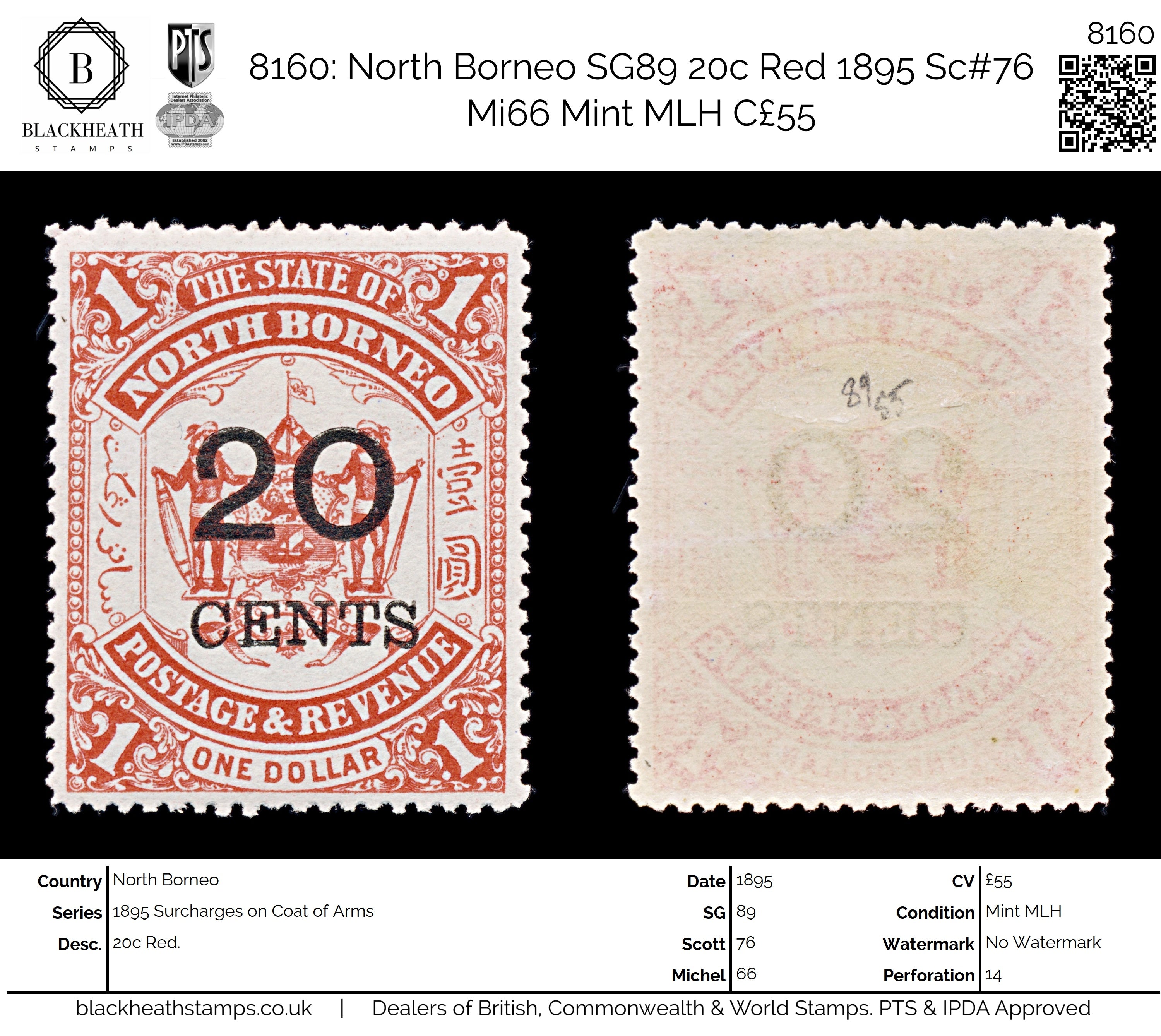 8160: North Borneo SG89 20c Red 1895 Sc#76 Mi66 Mint MLH C£55