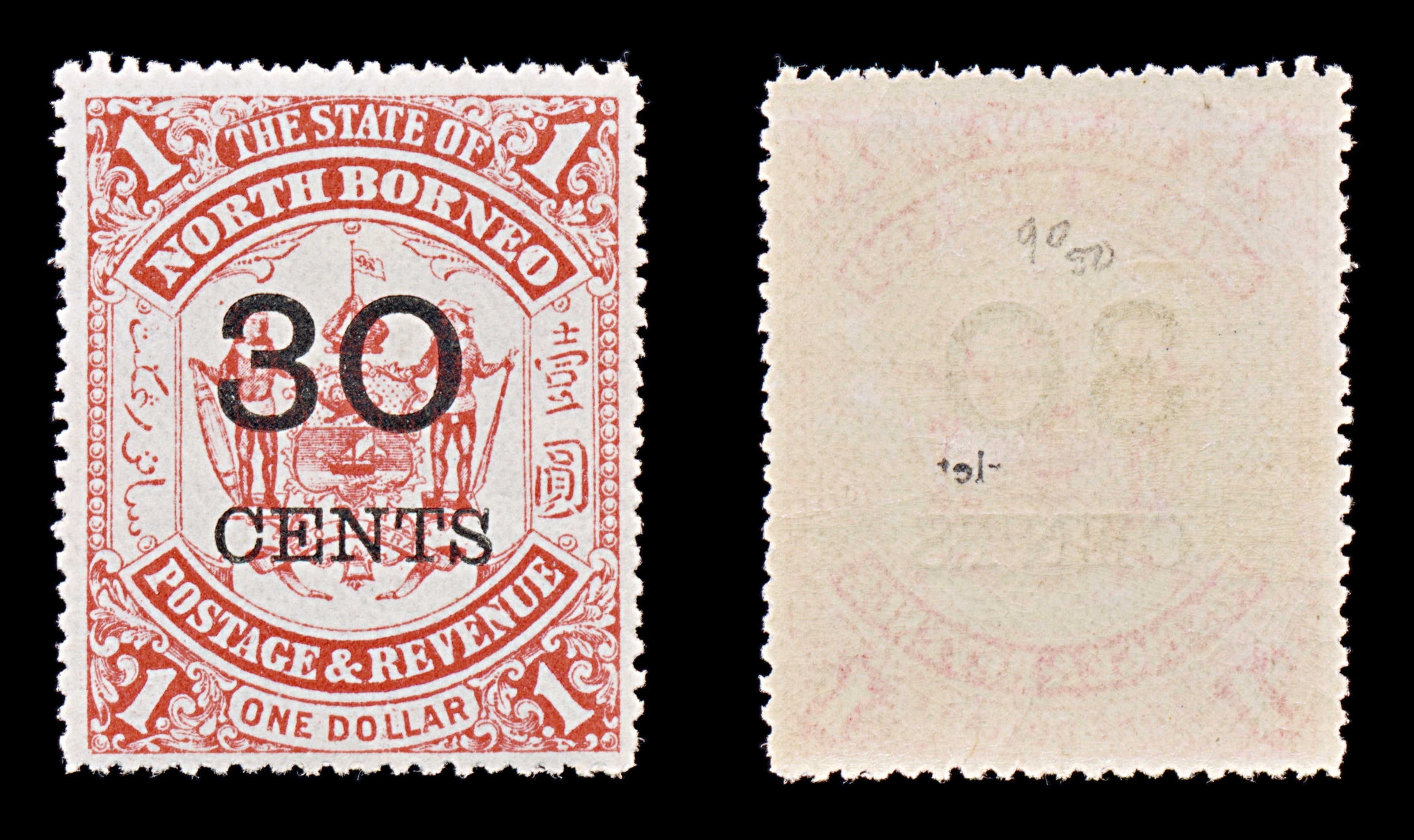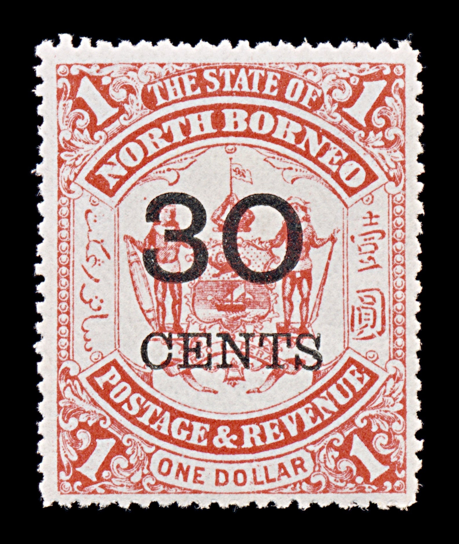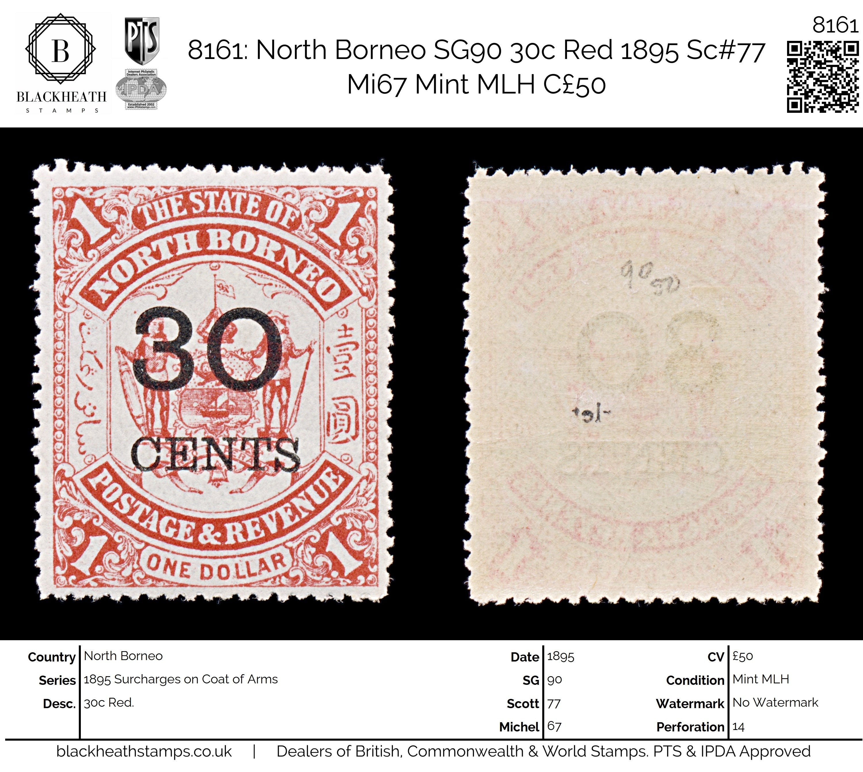 8161: North Borneo SG90 30c Red 1895 Sc#77 Mi67 Mint MLH C£50