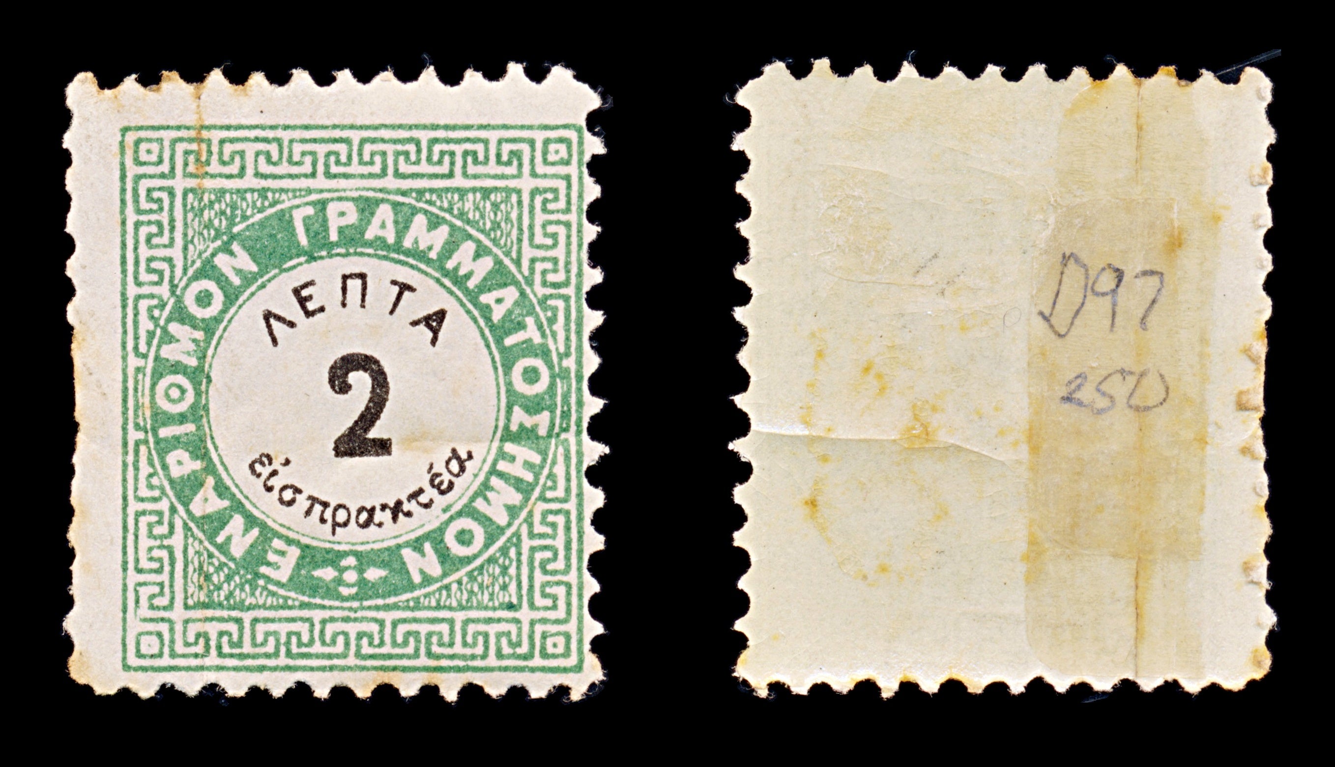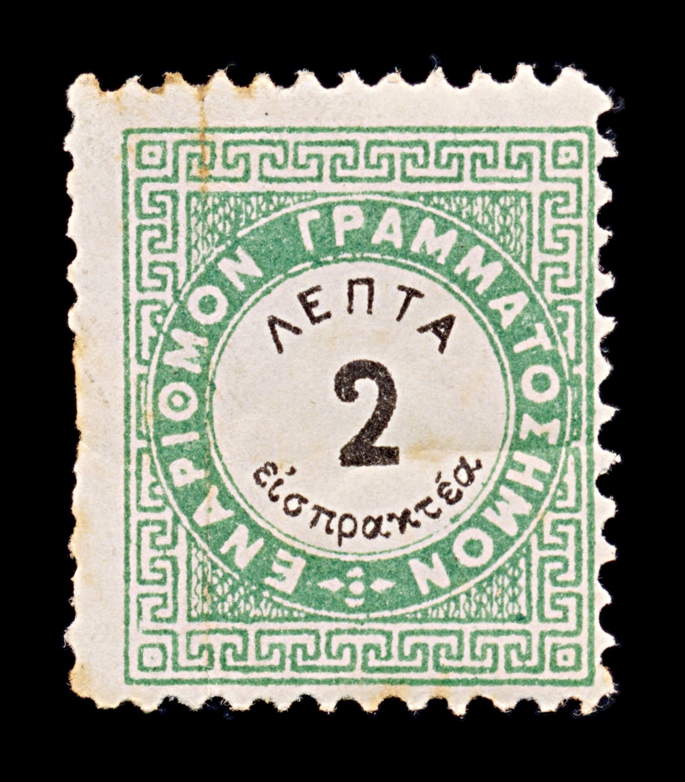 8173: Greece SGD97 2l Green & Black 1876 Sc#J26 MiP14A Mint MH C£250: Vertical Crease