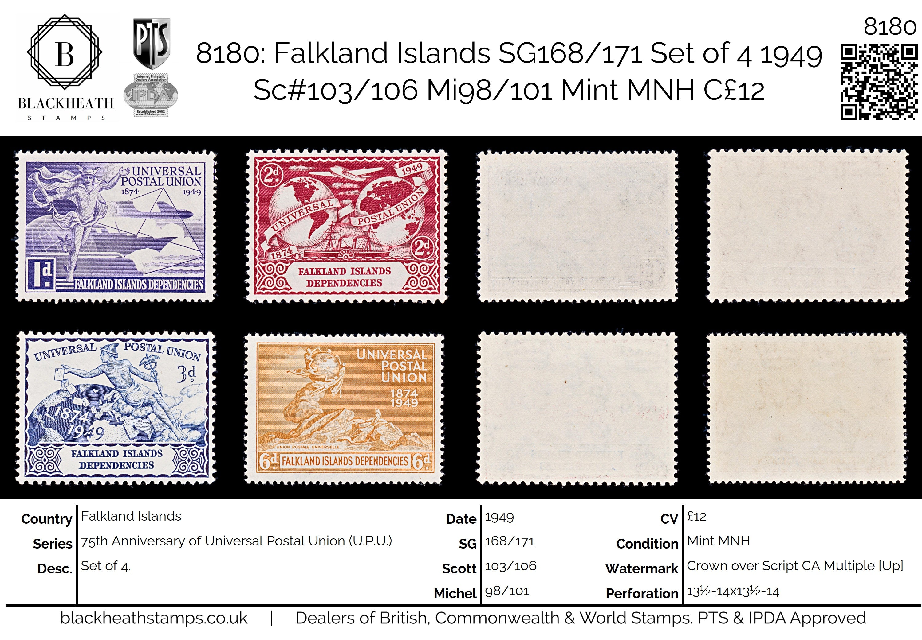 8180: Falkland Islands SG168/171 Set of 4 1949 Sc#103/106 Mi98/101 Mint MNH C£12