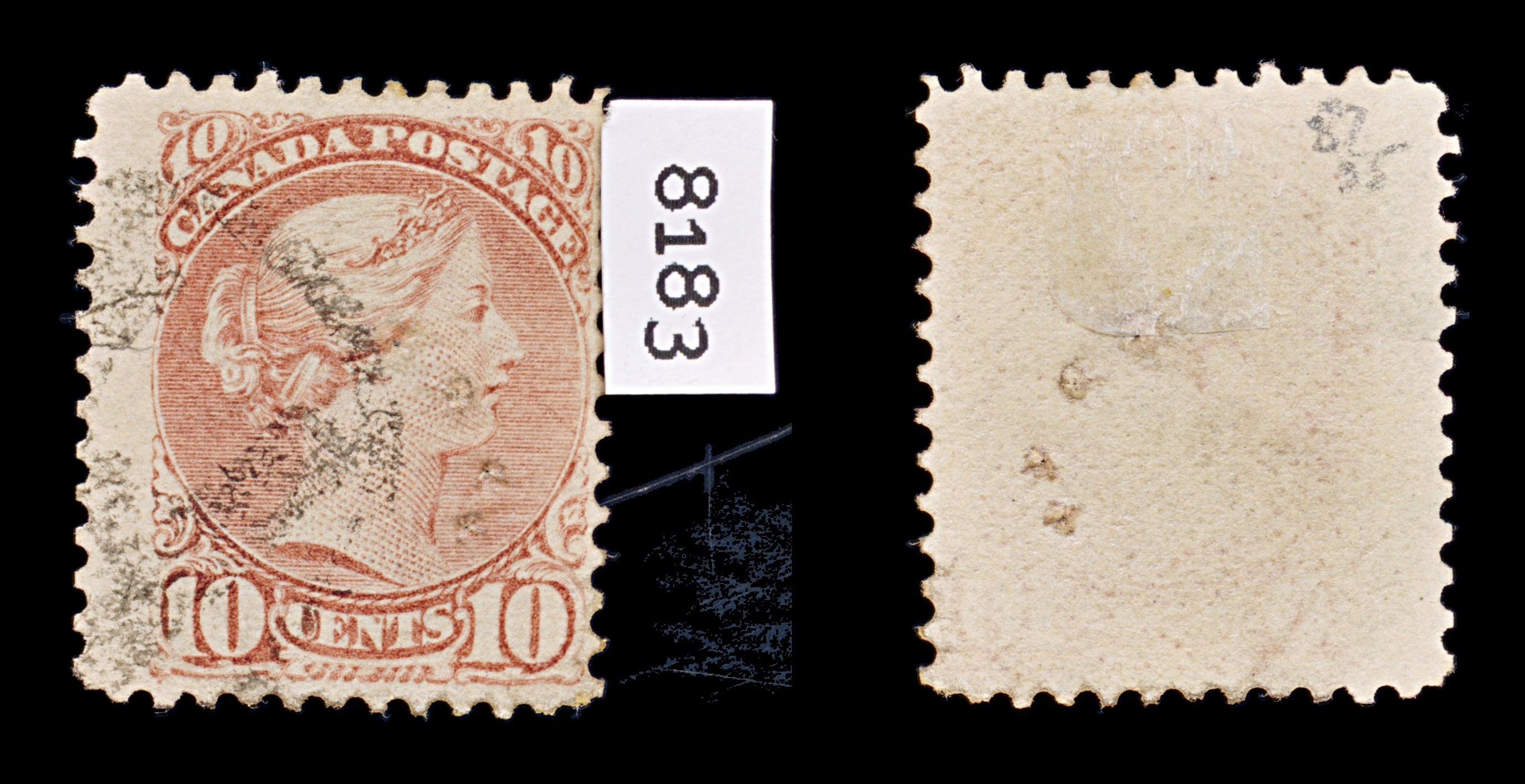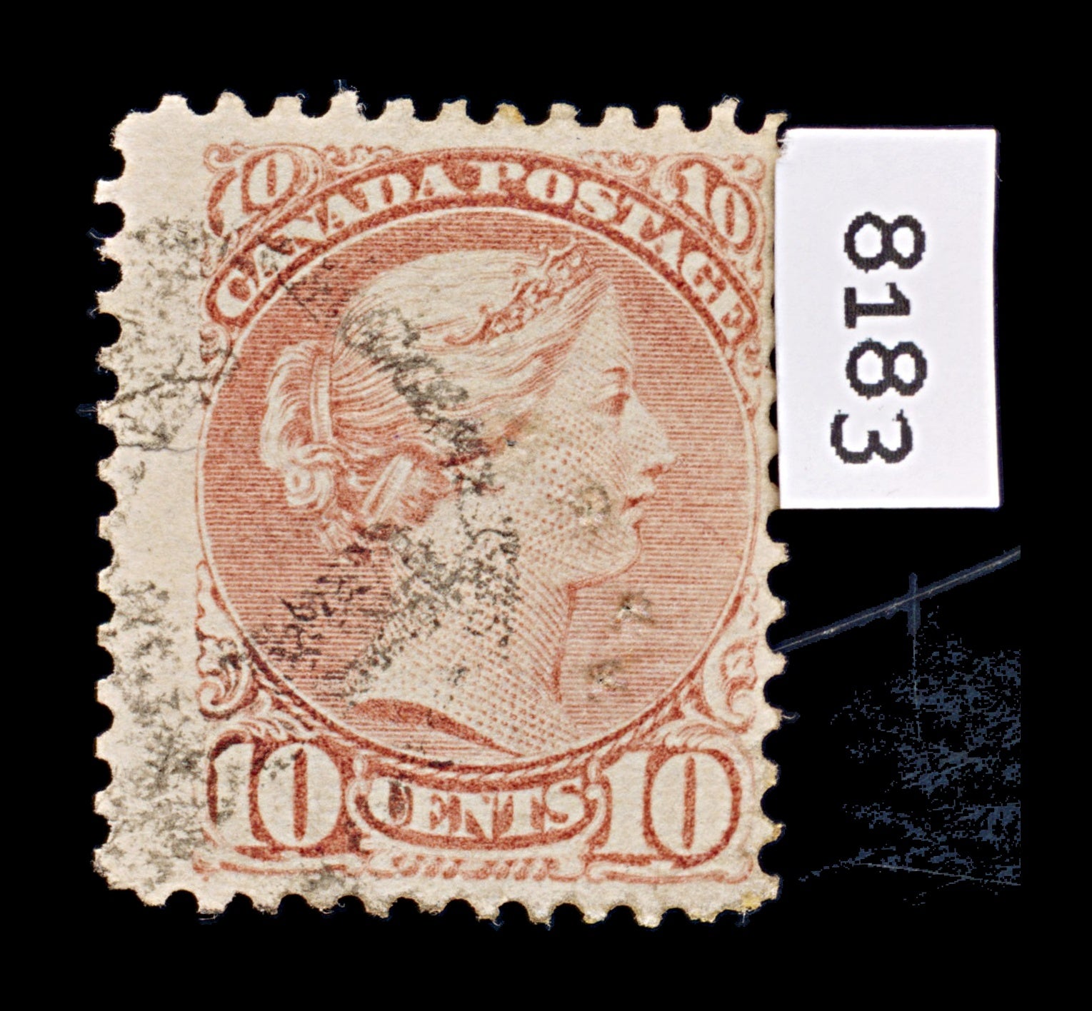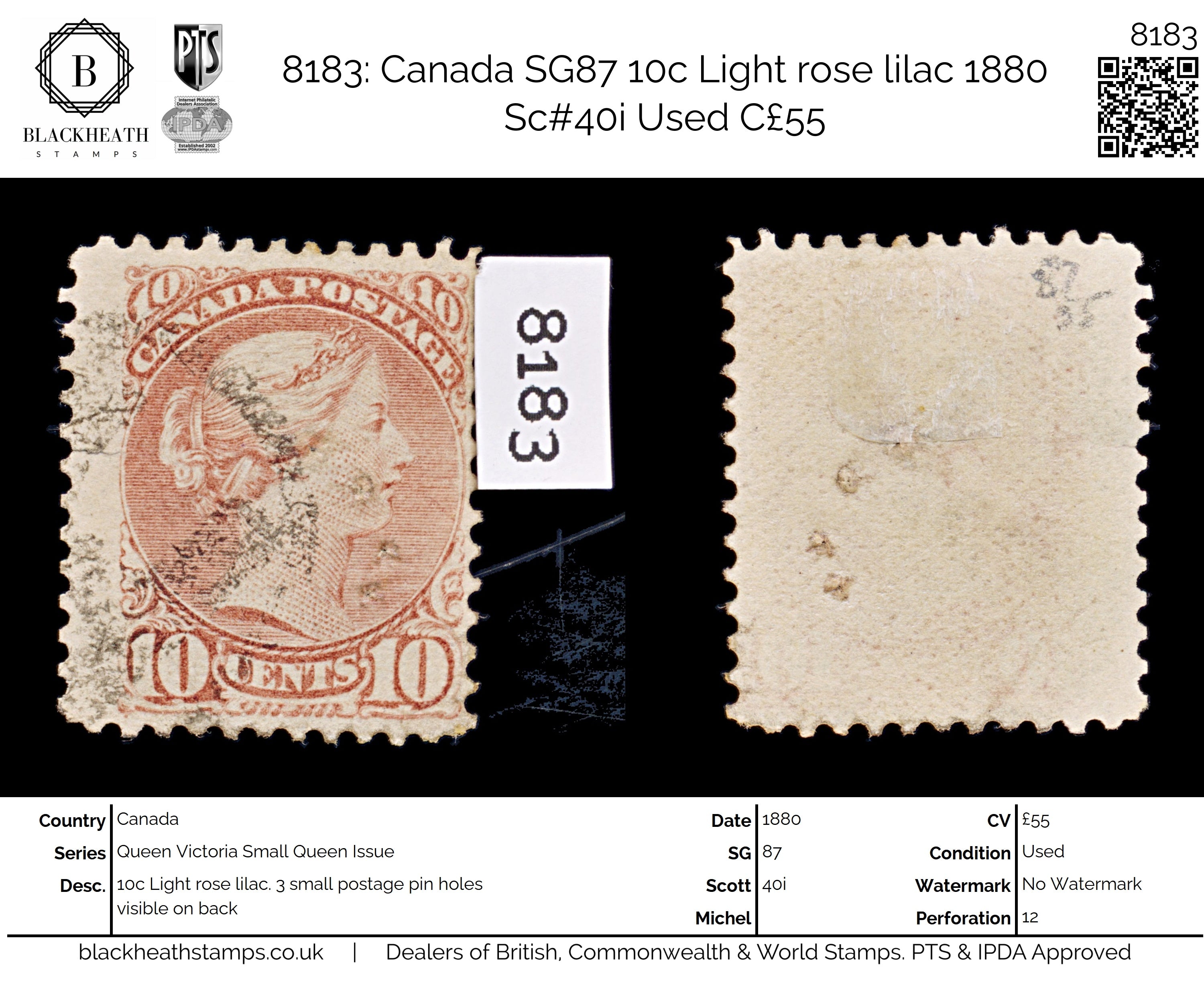 8183: Canada SG87 10c Light rose lilac 1880 Sc#40i Uséd C£55: 3 small postage pin holes visible on back