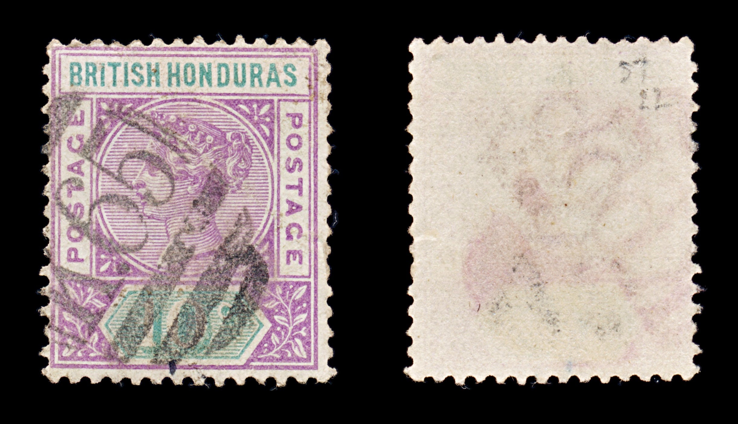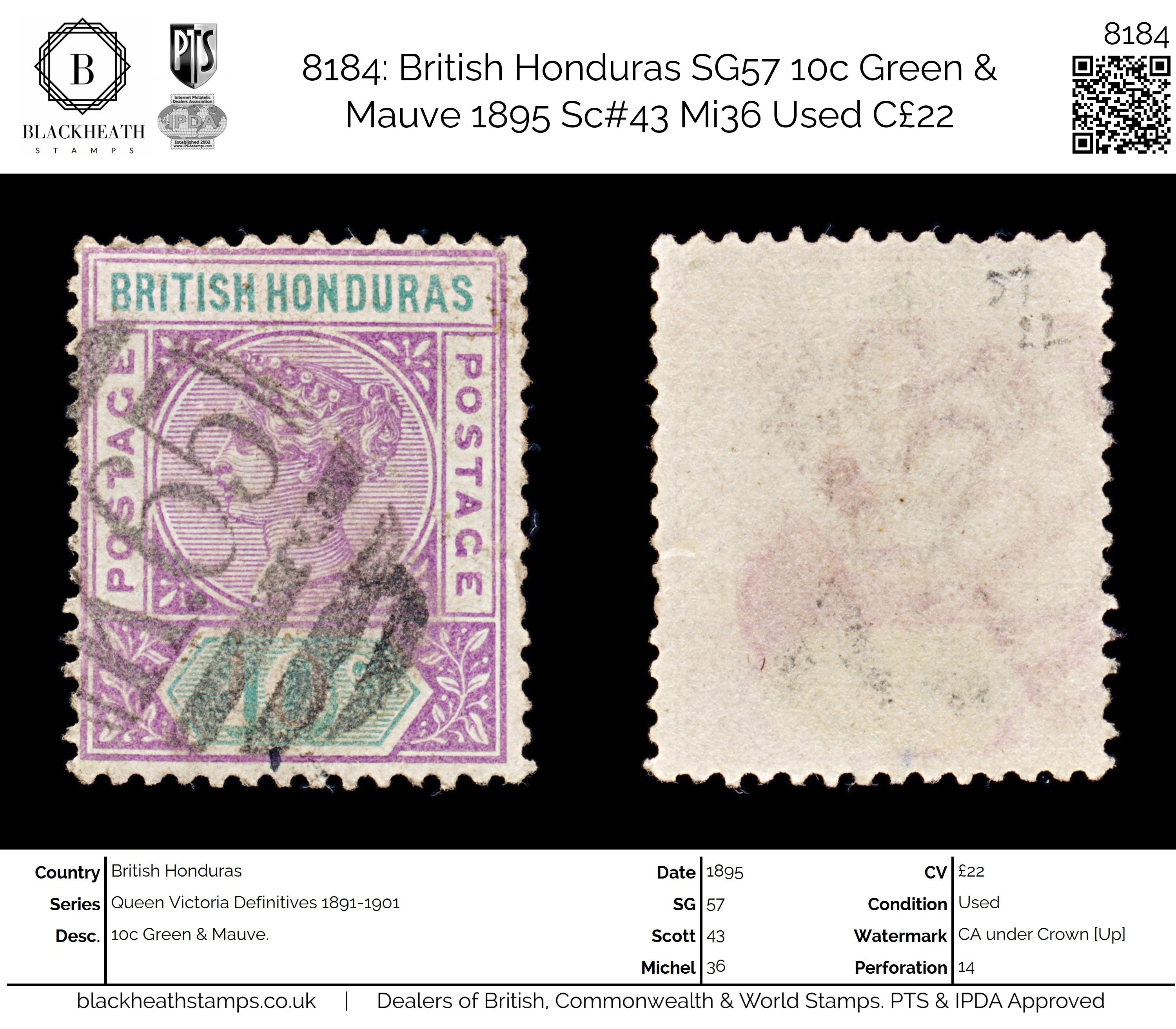8184: British Honduras SG57 10c Green & Mauve 1895 Sc#43 Mi36 Used C£22