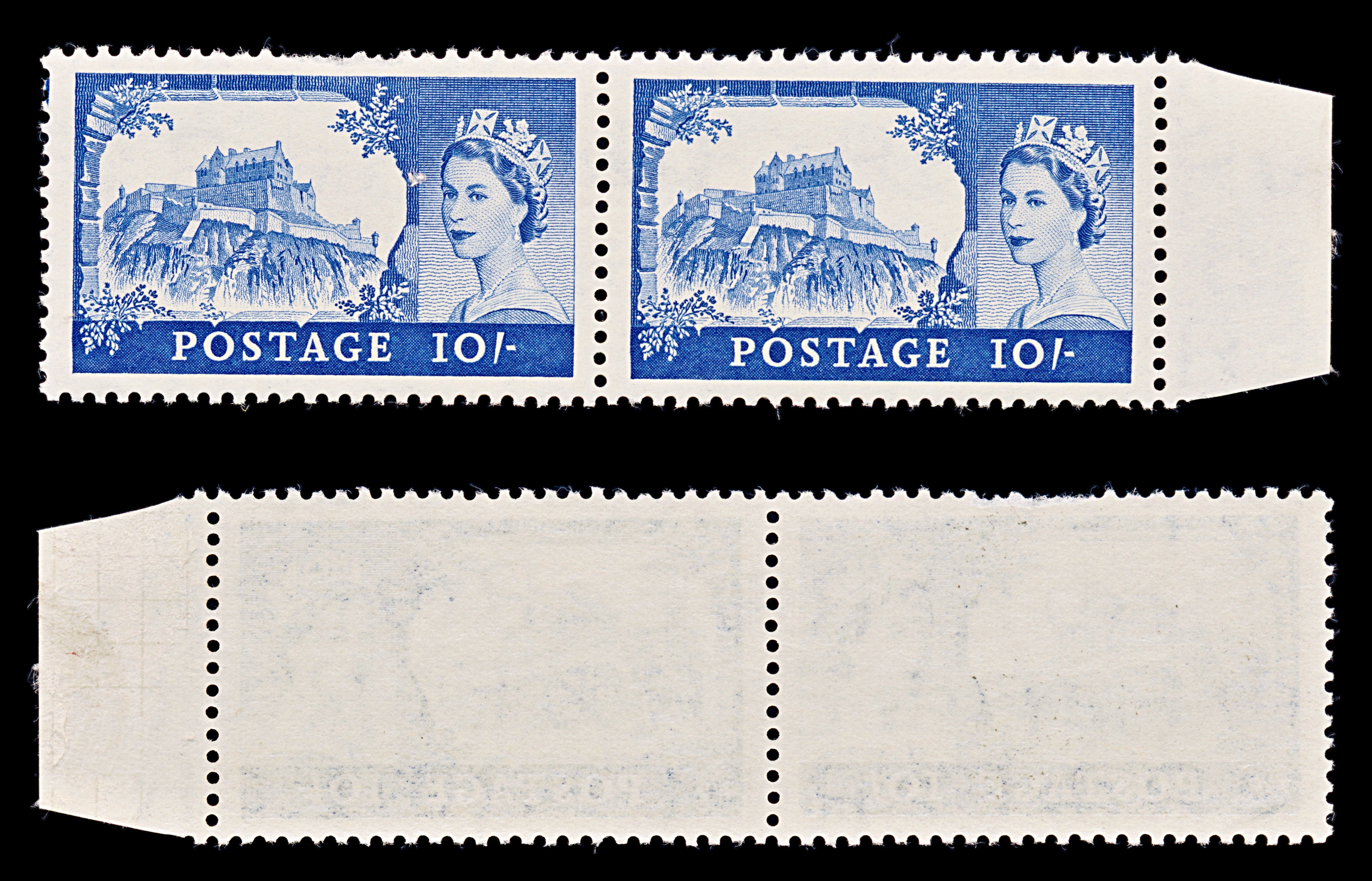 8202: GB SG538 10s Ultramarine 1955 Sc#311 Mi280I Mint MNH C£180: Pair with Selvedge. Waterlow