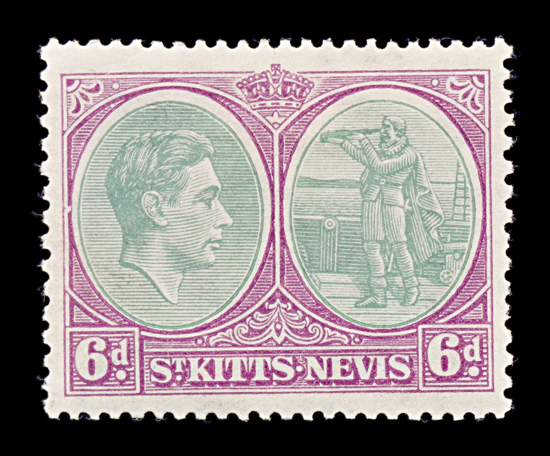 8222: St Kitts Nevis SG74 6d Purple & Ggreen 1938 Sc#85a Mi78Ca Mint MLH C£200