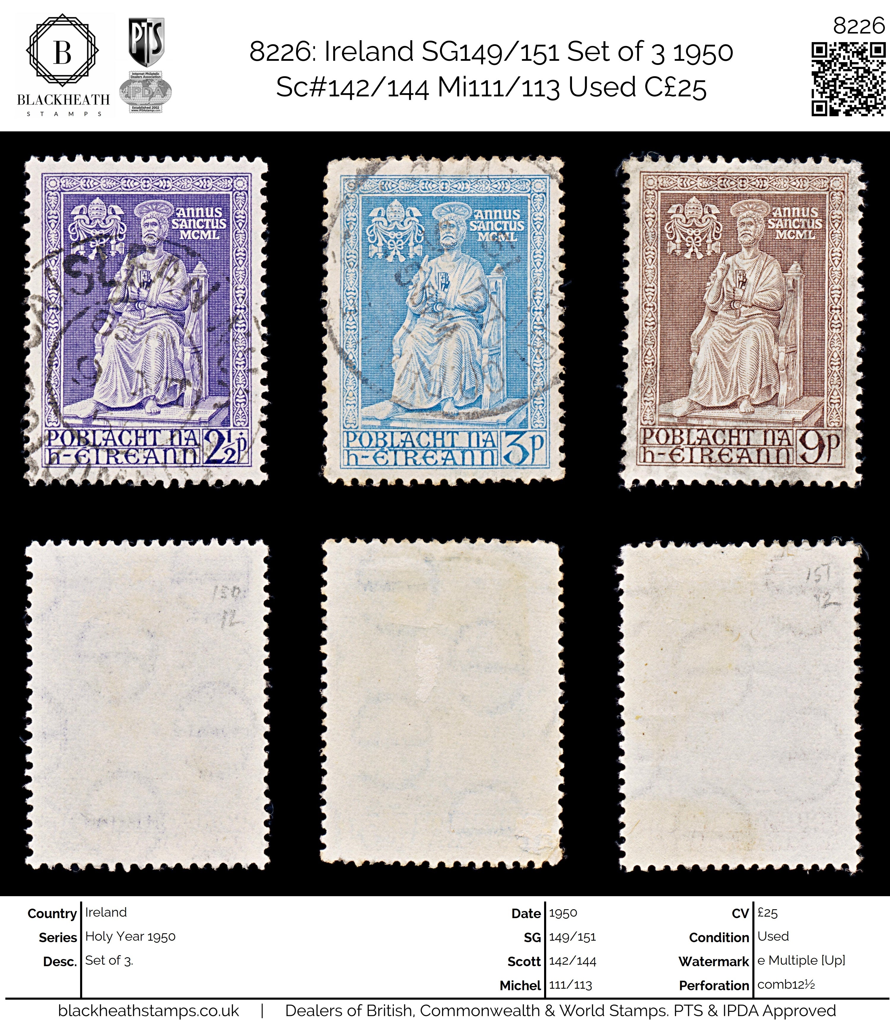 8226: Ireland SG149/151 Set of 3 1950 Sc#142/144 Mi111/113 Used C£25