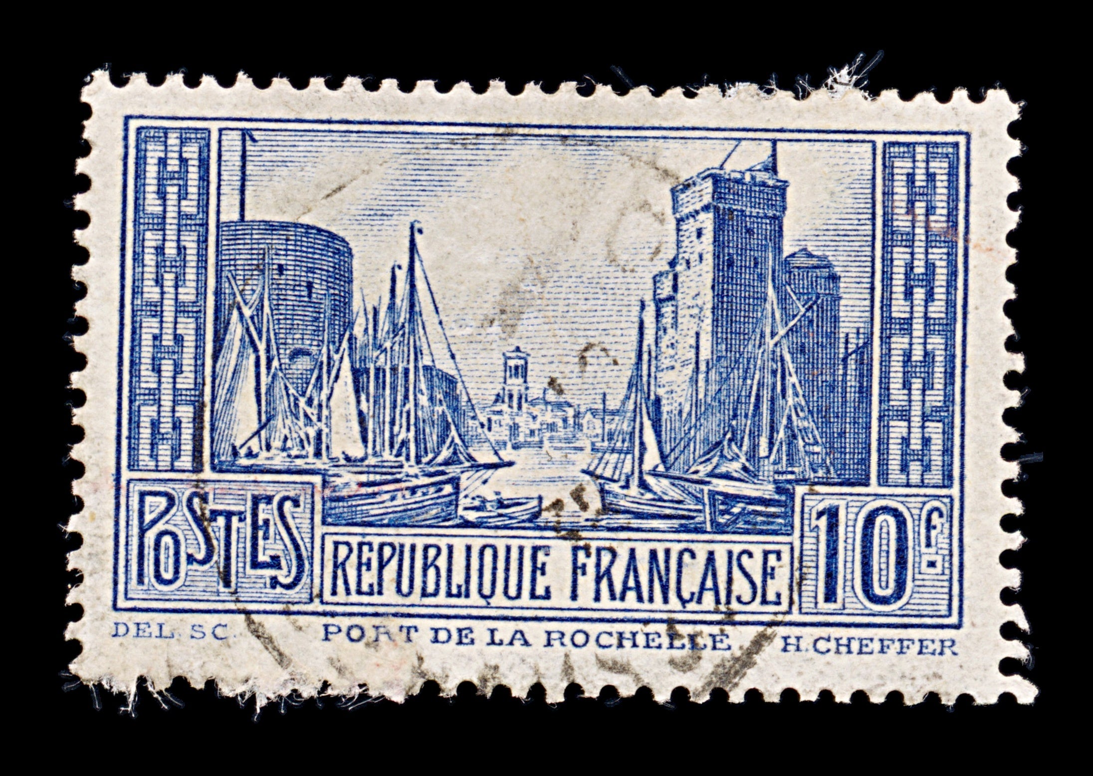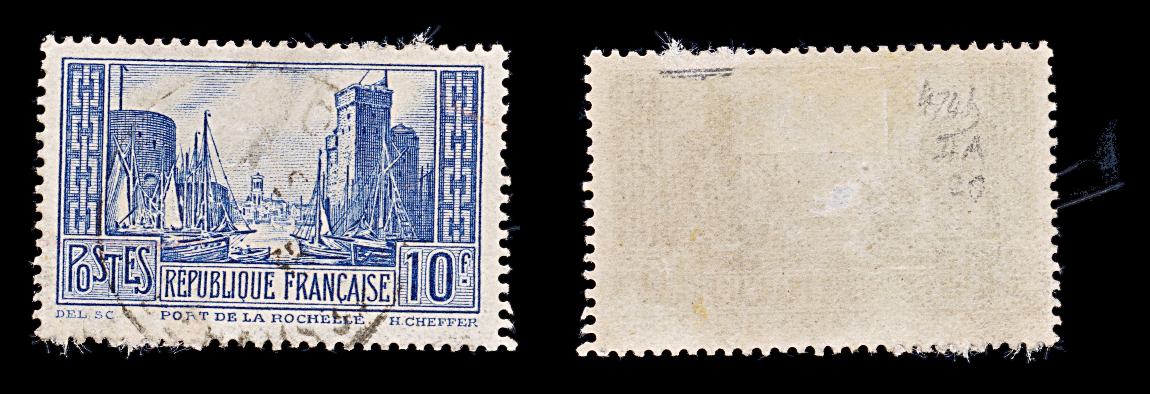8235: France SG474b 10F Blue 1931 Sc#252 Mi241IIIa Used C£20