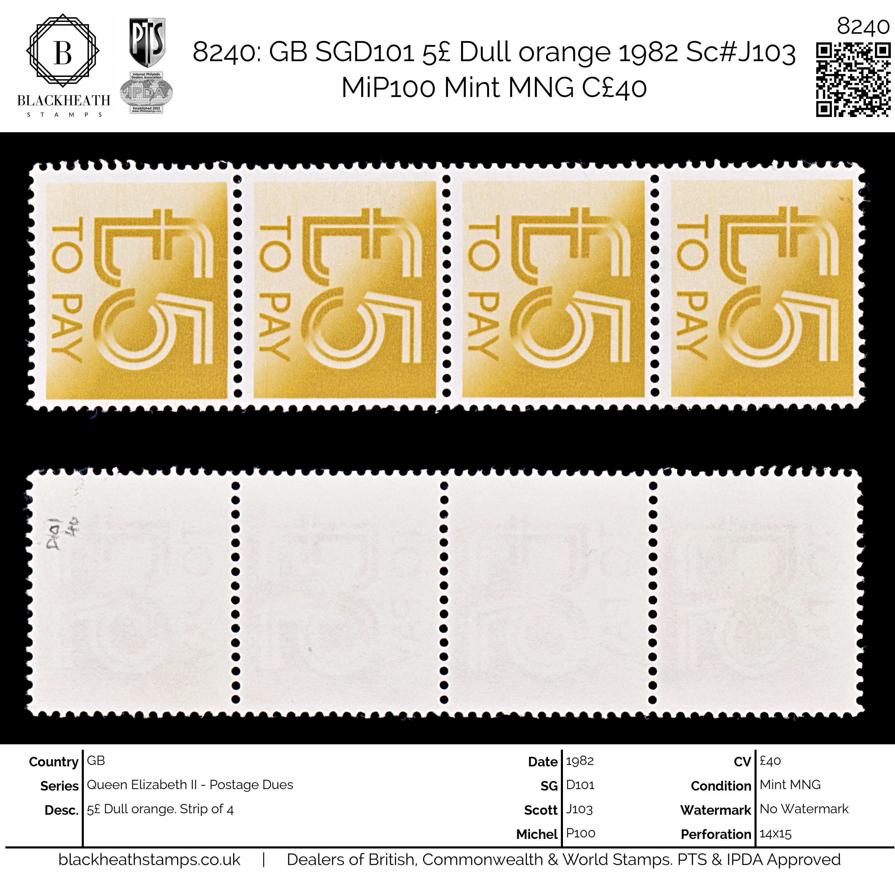 8240: GB SGD101 5£ Dull orange 1982 Sc#J103 MiP100 Mint MNG C£40