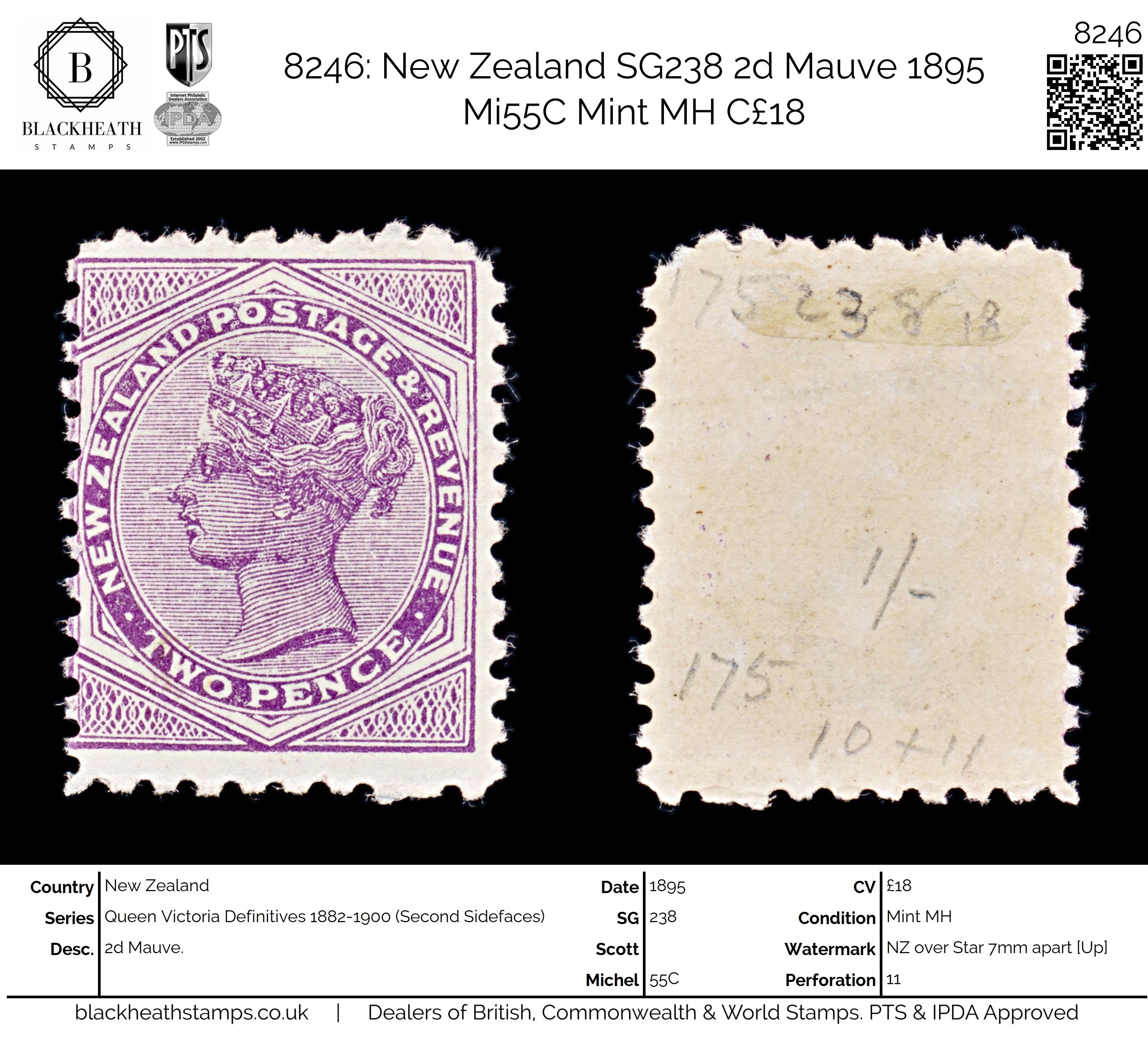 8246: New Zealand SG238 2d Mauve 1895 Mi55C Mint MH C£18