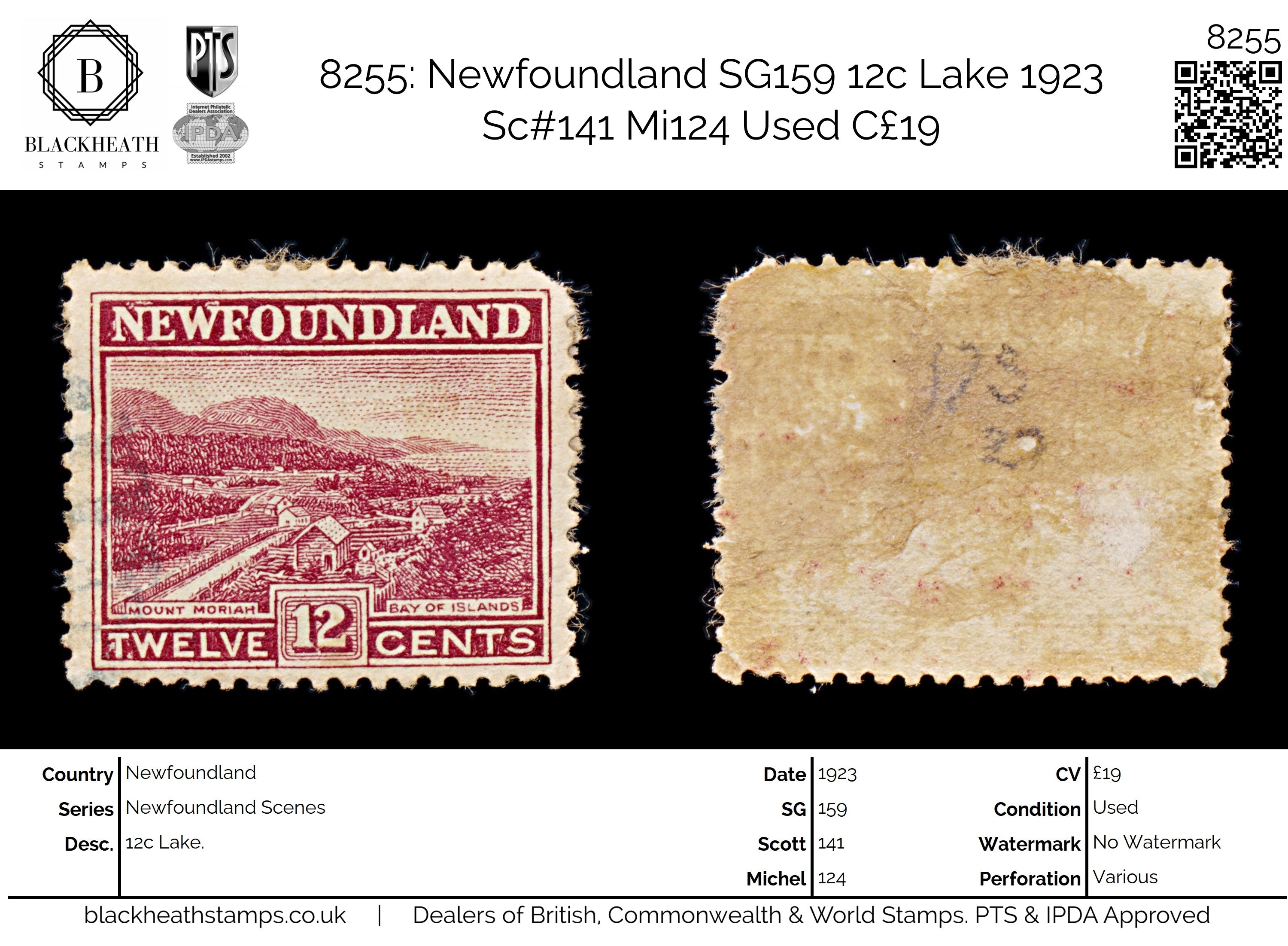 8255: Newfoundland SG159 12c Lake 1923 Sc#141 Mi124 Used C£19