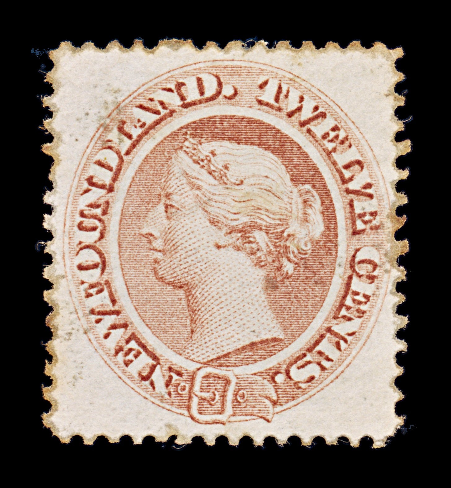 8265: Newfoundland SG33 12c Chestnut 1870 Sc#28 Mi19y Mint MH C£60