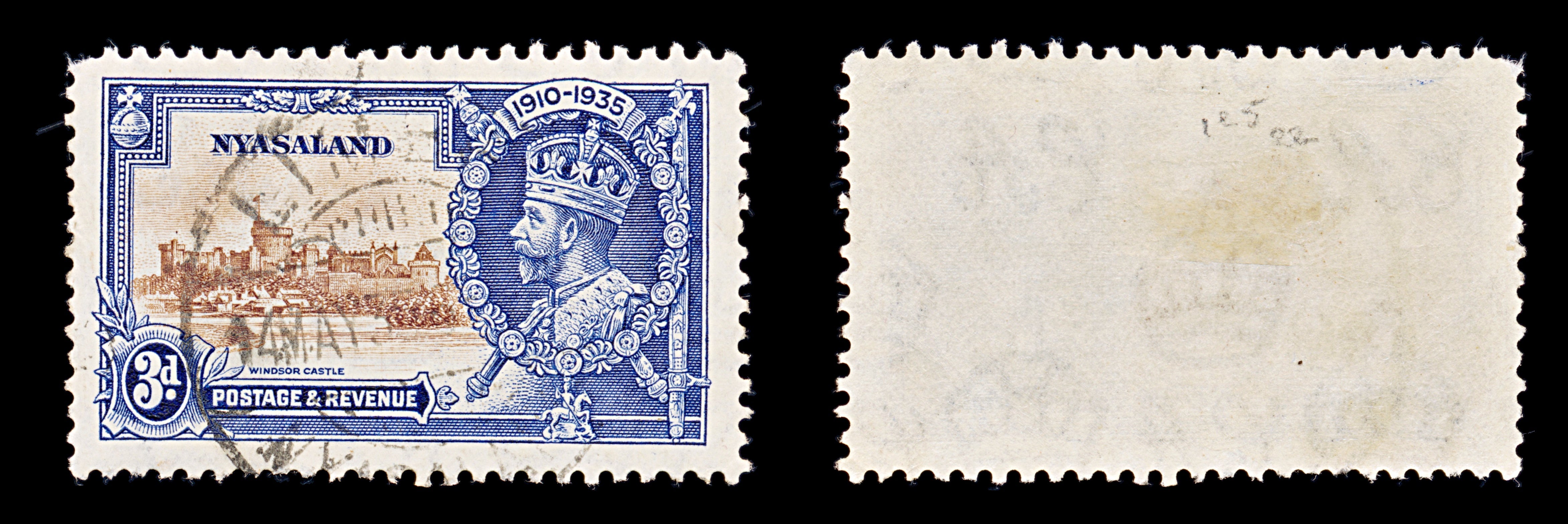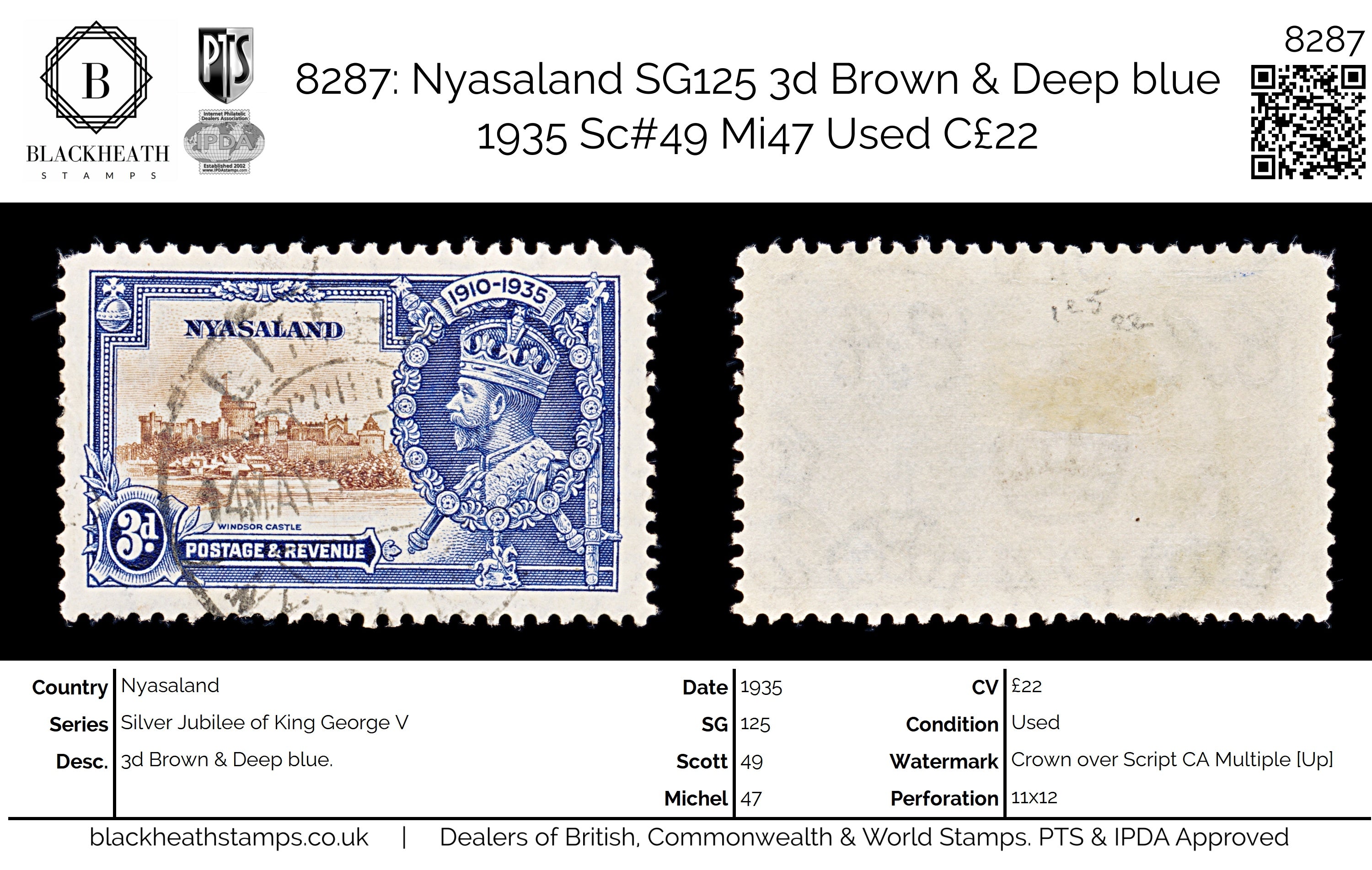 8287: Nyasaland SG125 3d Brown & Deep blue 1935 Sc#49 Mi47 Used C£22
