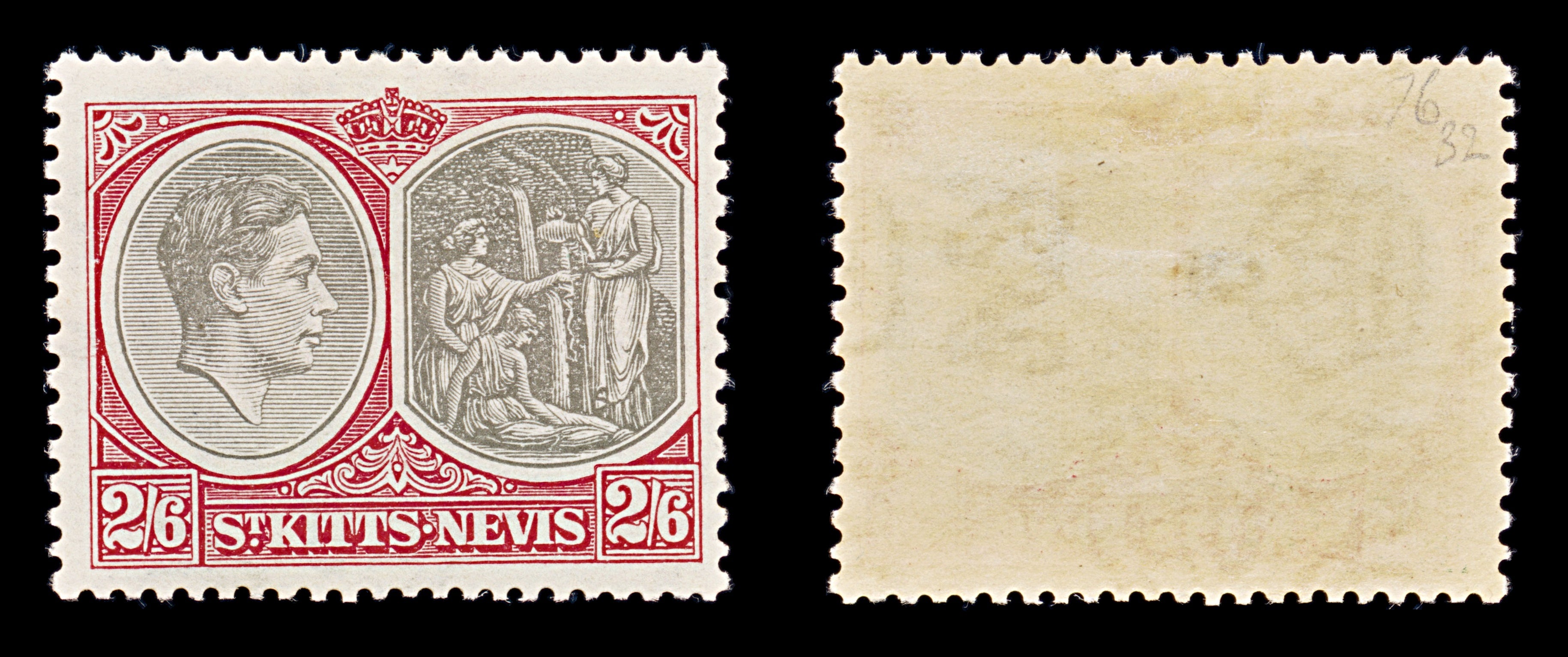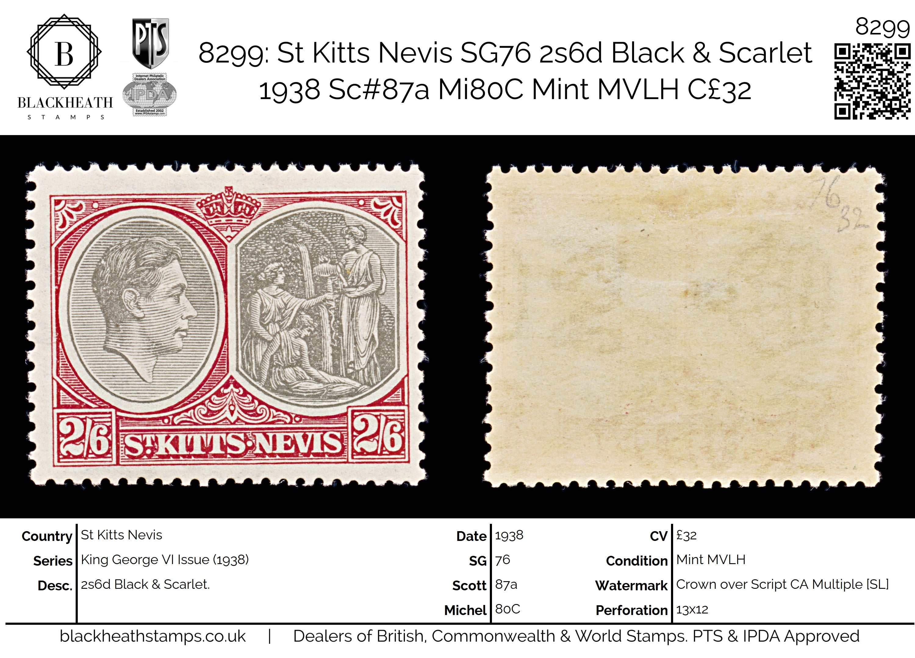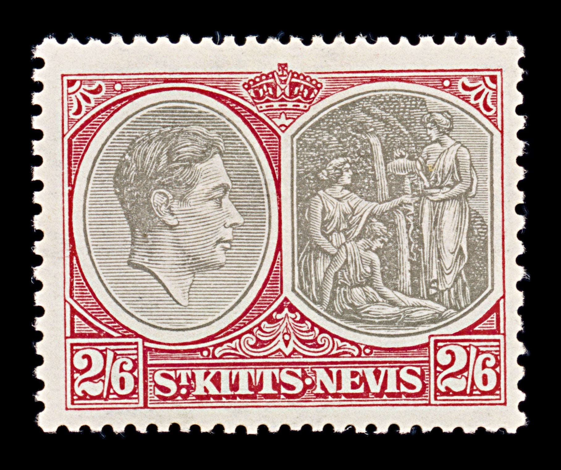 8299: St Kitts Nevis SG76 2s6d Black & Scarlet 1938 Sc#87a Mi80C Mint MVLH C£32