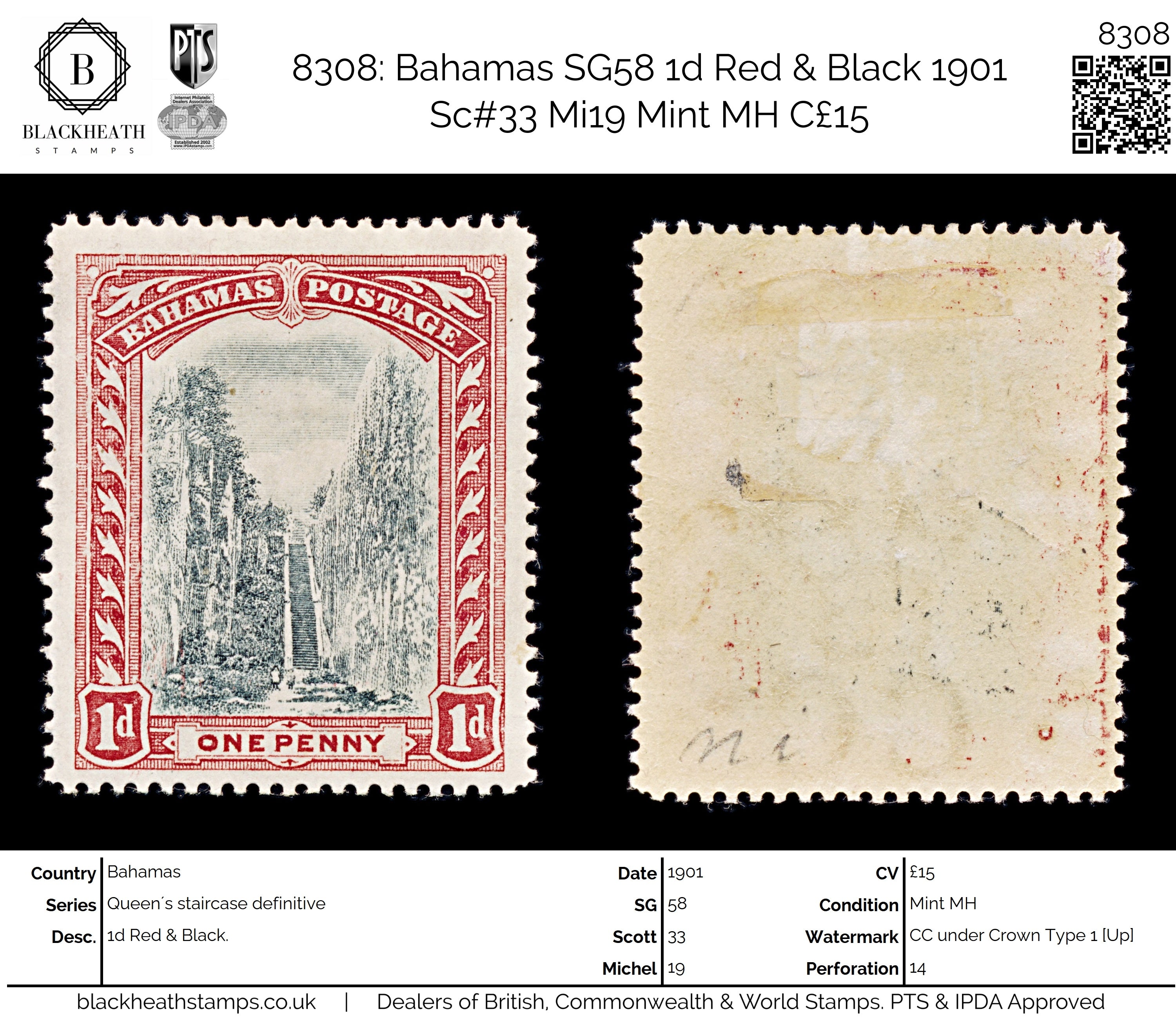 8308: Bahamas SG58 1d Red & Black 1901 Sc#33 Mi19 Mint MH C£15