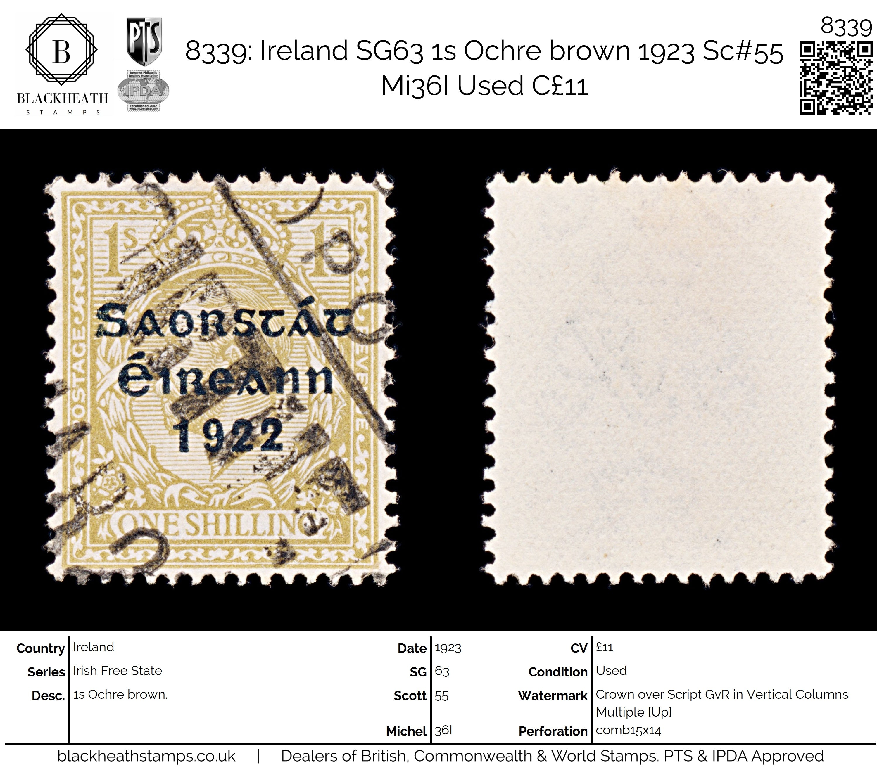 8339: Ireland SG63 1s Ochre brown 1923 Sc#55 Mi36I Uséd C£11