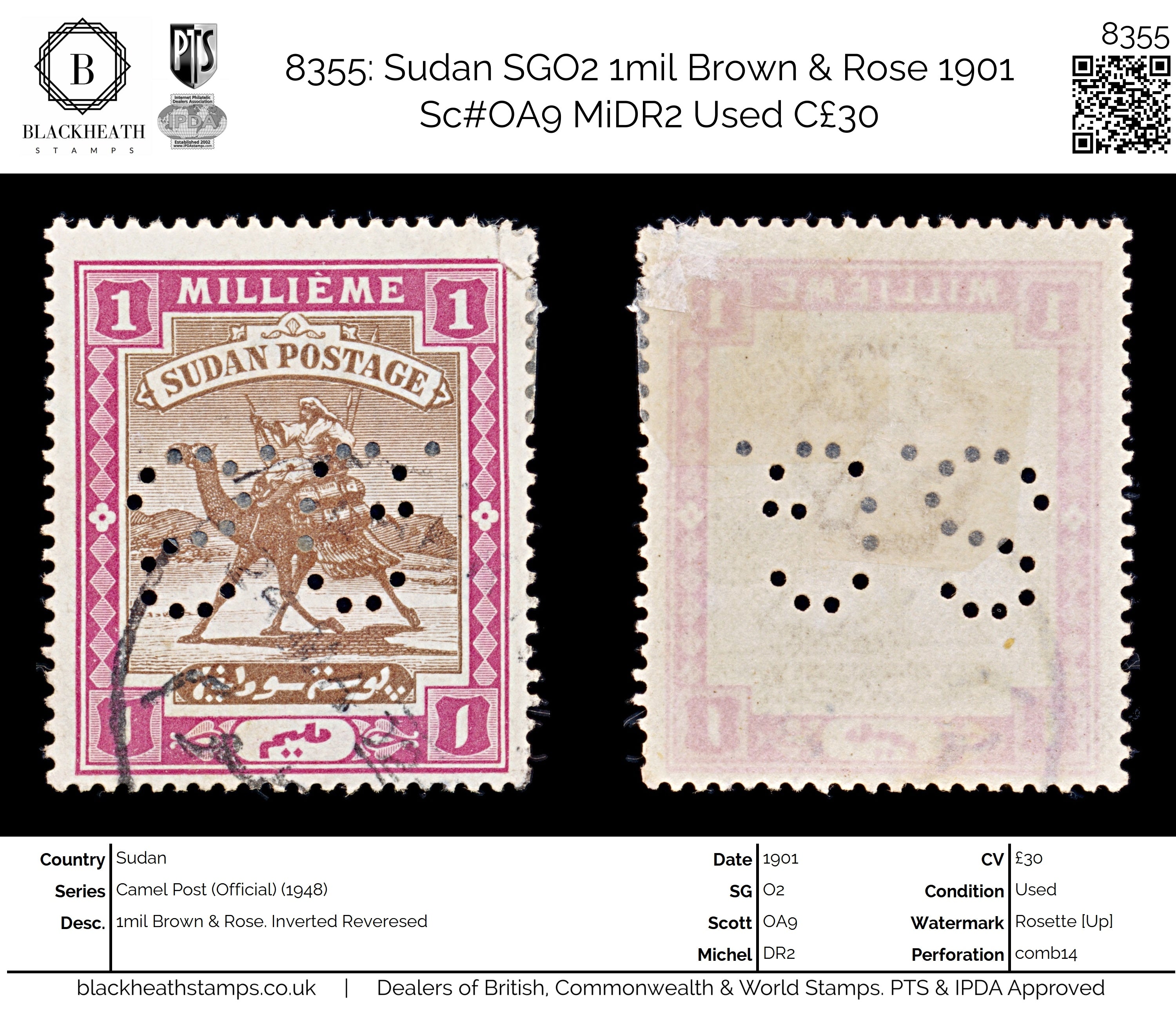 8355: Sudan SGO2 1mil Brown & Rose 1901 Sc#OA9 MiDR2 Uséd C£30: Inverted Reveresed