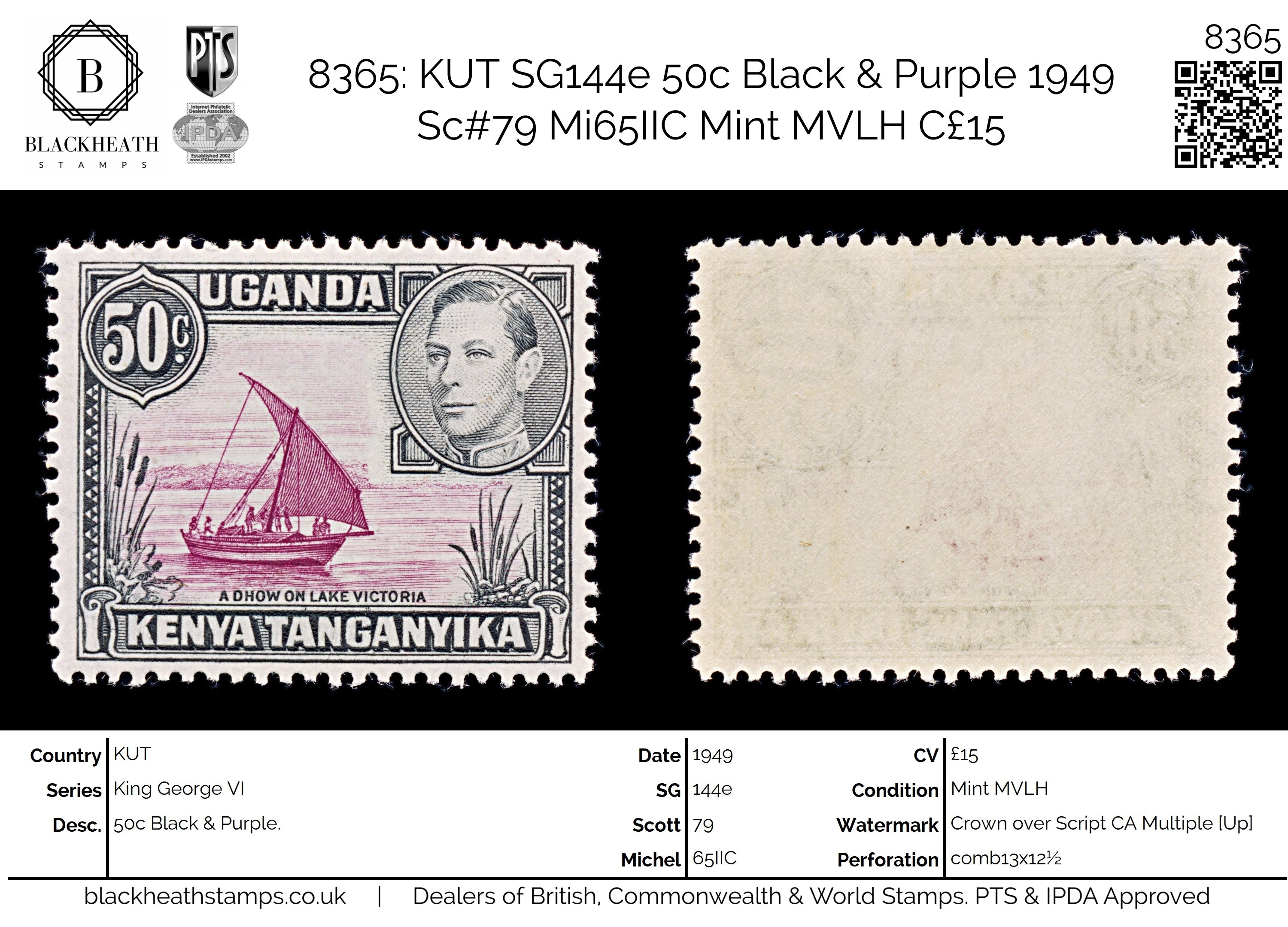 8365: KUT SG144e 50c Black & Purple 1949 Sc#79 Mi65IIC Mint MVLH C£15