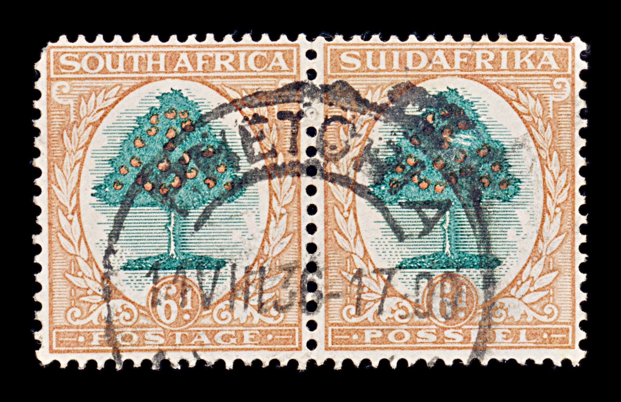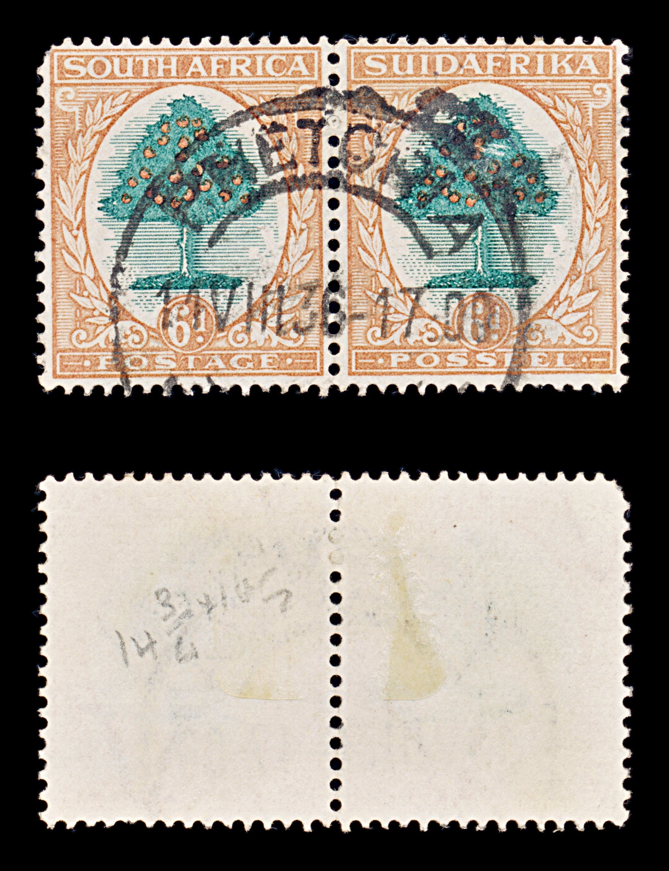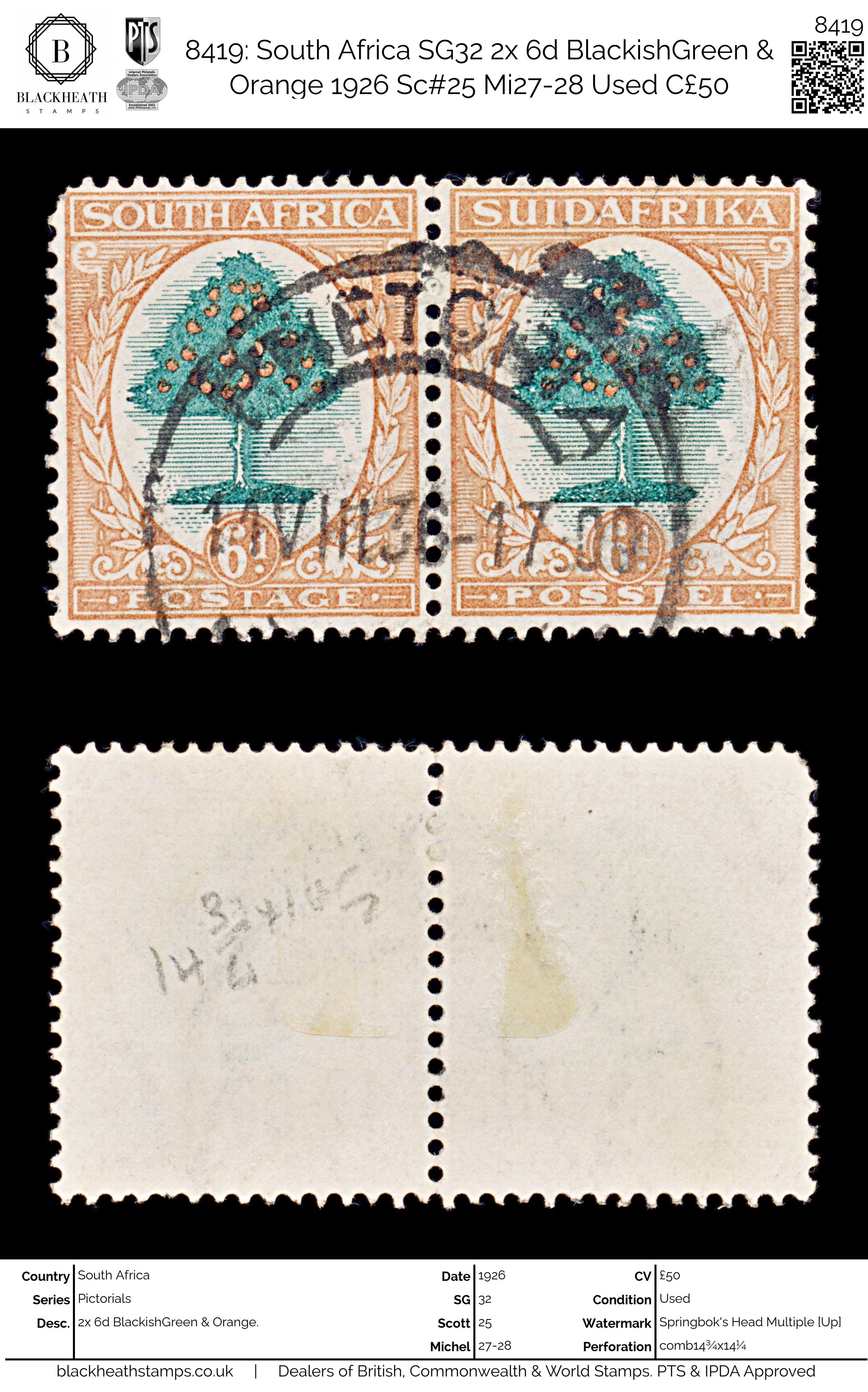 8419: South Africa SG32 2x 6d BlackishGreen & Orange 1926 Sc#25 Mi27-28 Used C£50