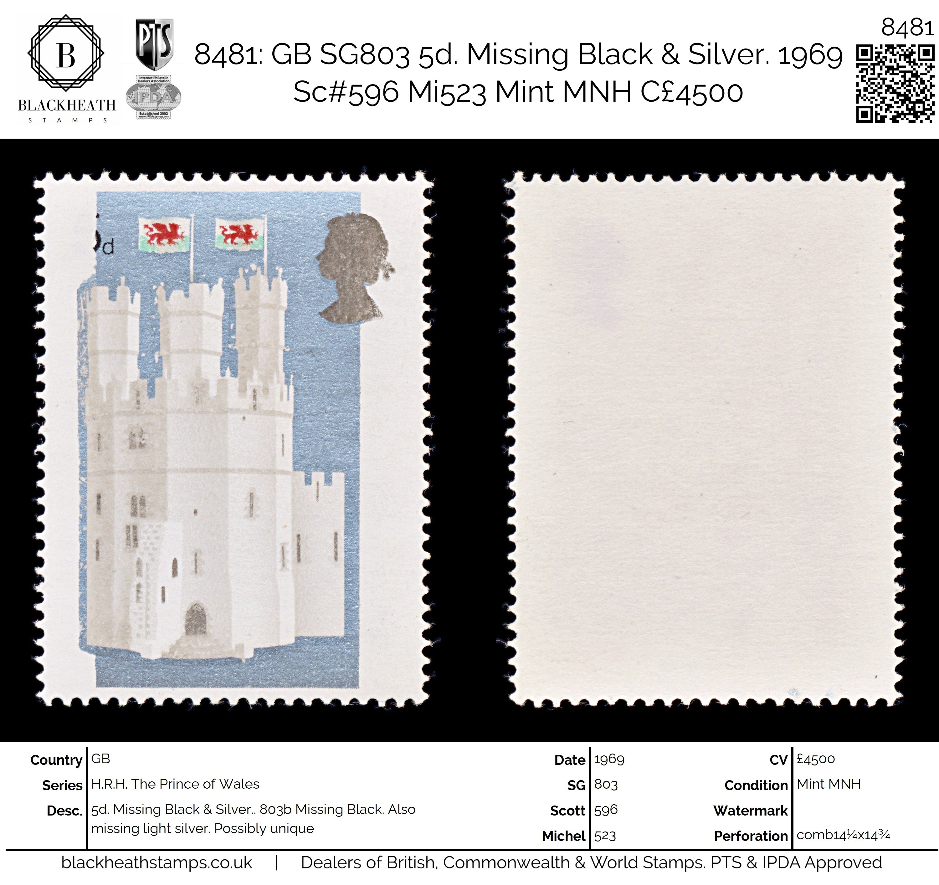 8481: GB SG803 5d. Missing Black & Silver. 1969 Sc#596 Mi523 Mint MNH C£4500