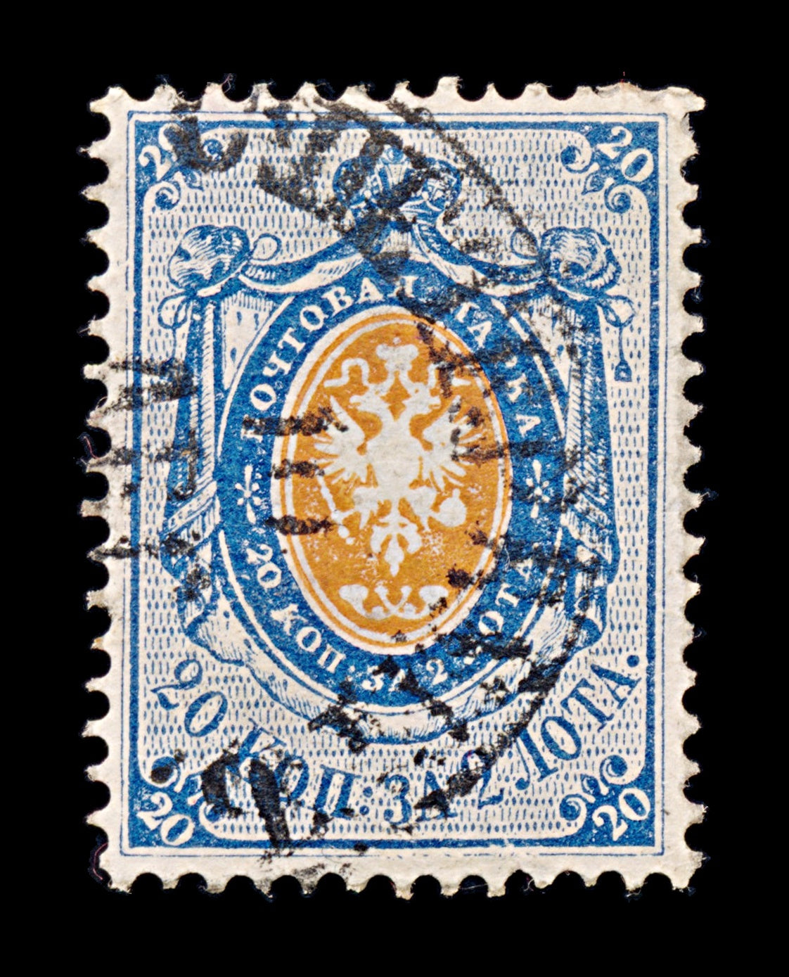 8487: Russia SG28 20k Blue & Orange 1868 Sc#24a Mi22y Used C£190