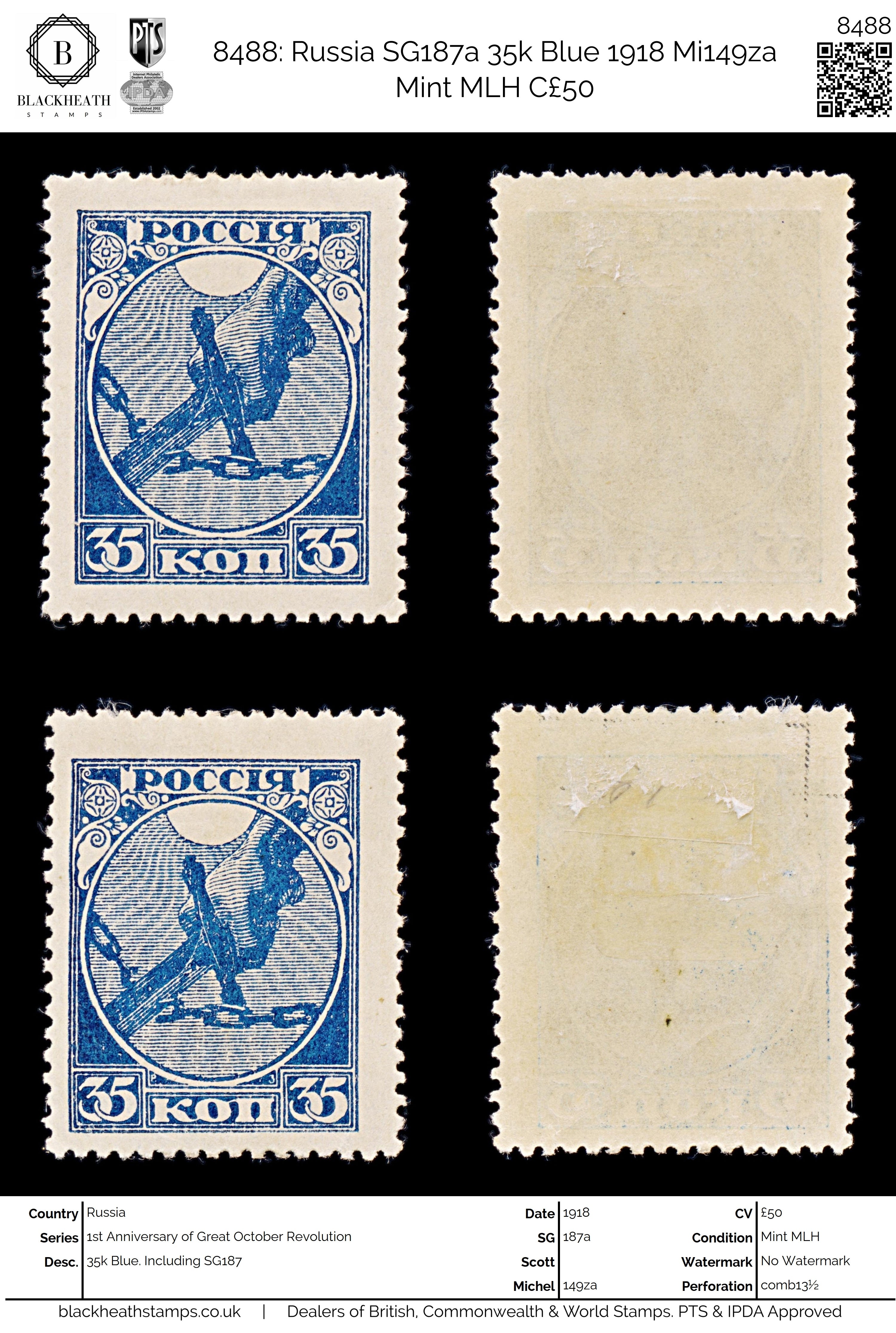 8488: Russia SG187a 35k Blue 1918 Mi149za Mint MLH C£50: Including SG187