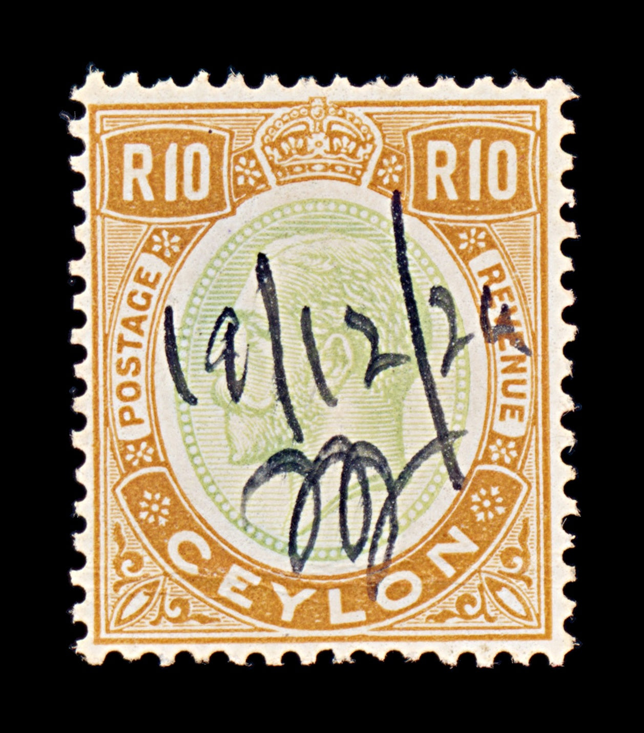 8493: Ceylon SG366 10r Green & Orange 1927 Sc#257 Mi210 Used C£180