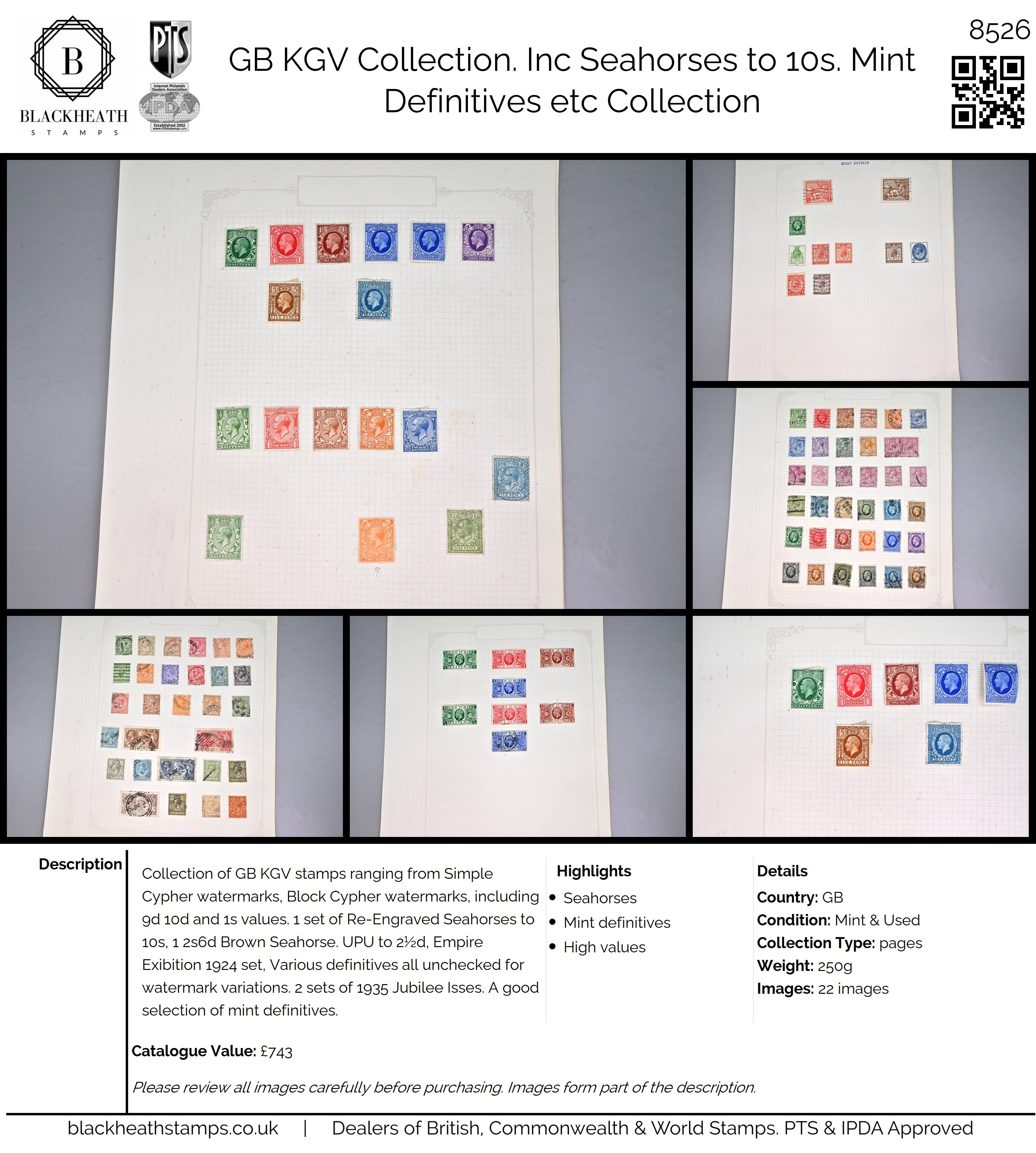 8526 GB: KGV Collection. Inc Seahorses to 10s. Mint Definitives etc. Mint & Uséd. C£743 24 Images: Country: GB CV: GBP743 Description: