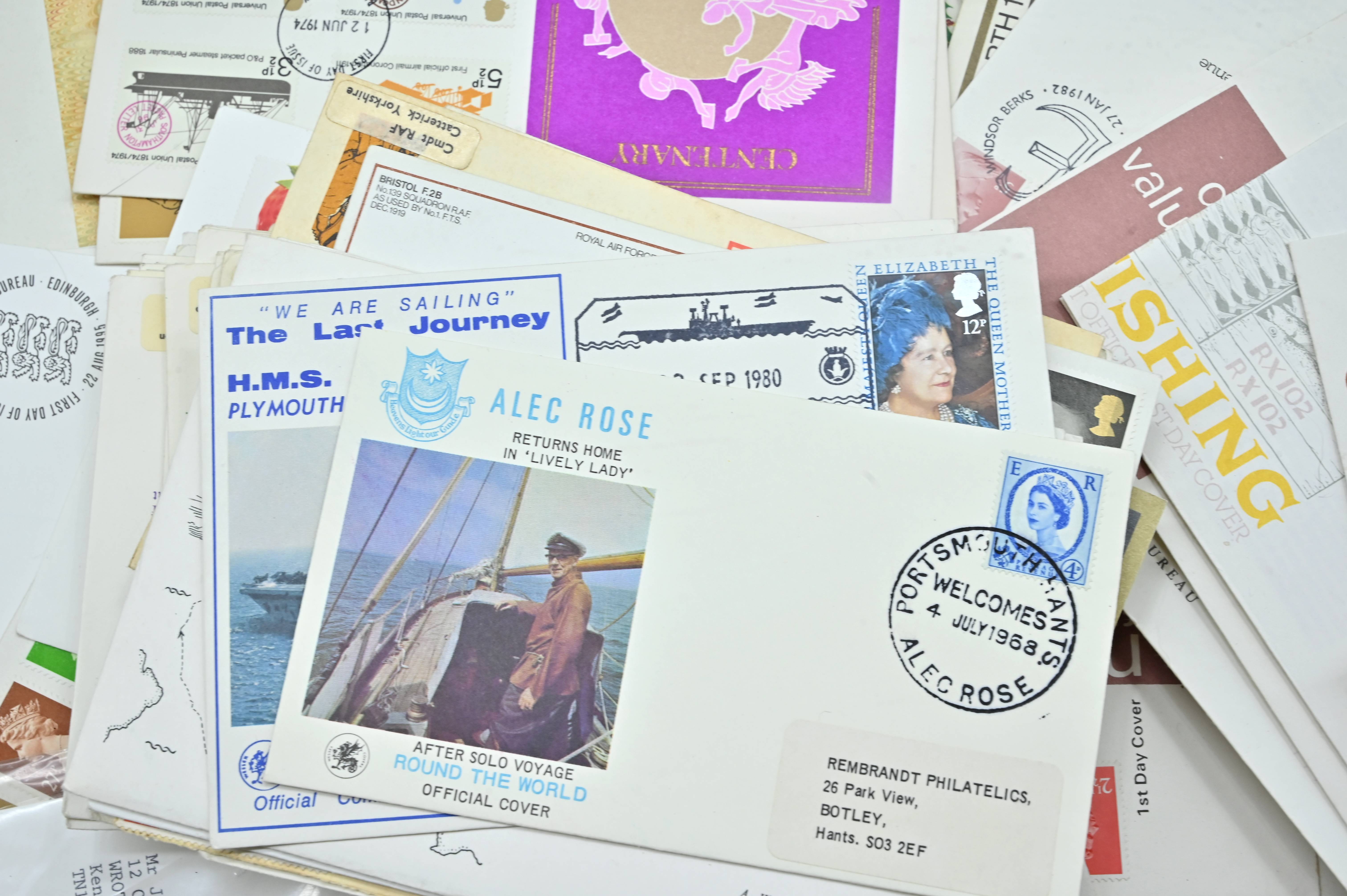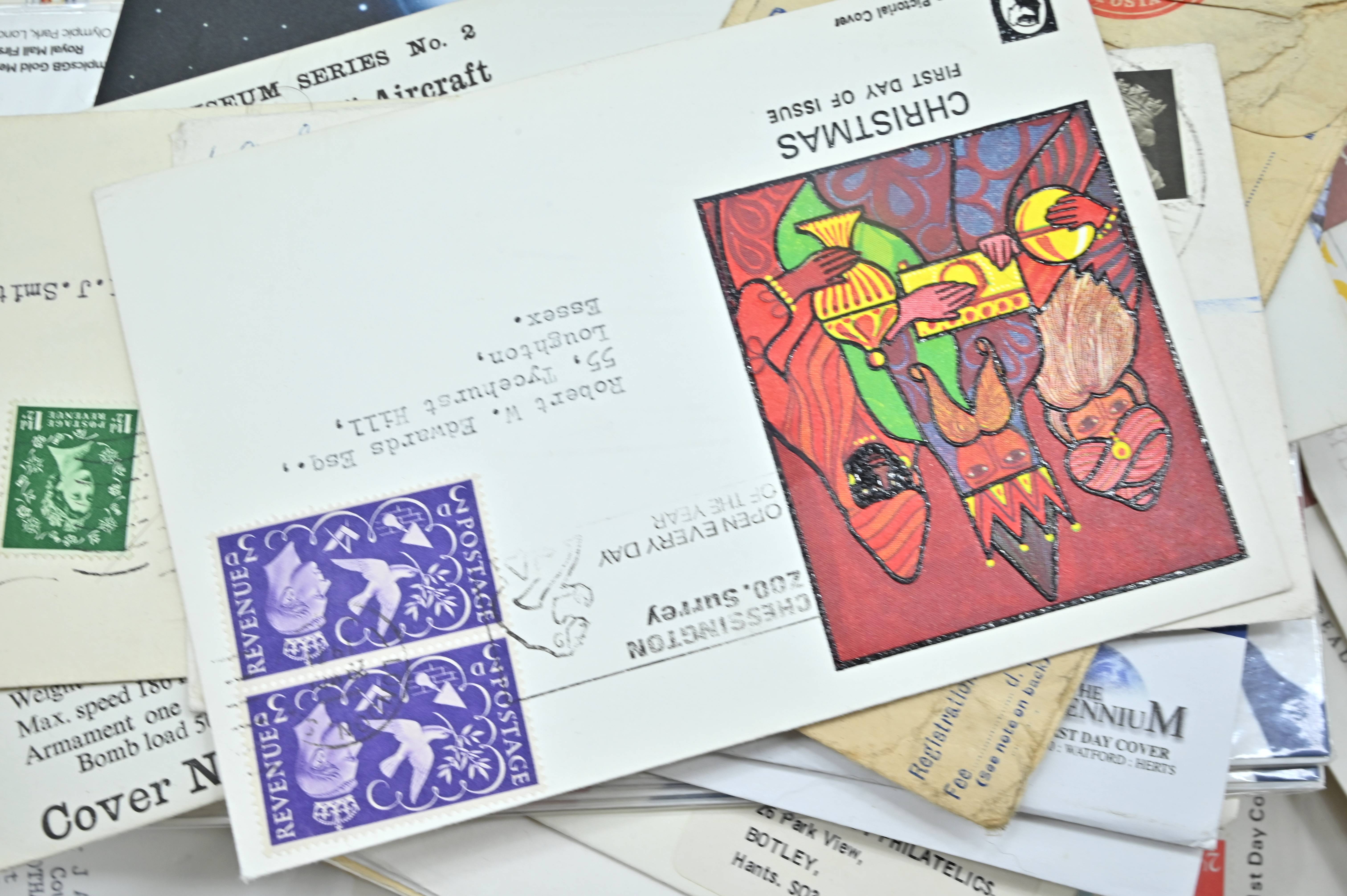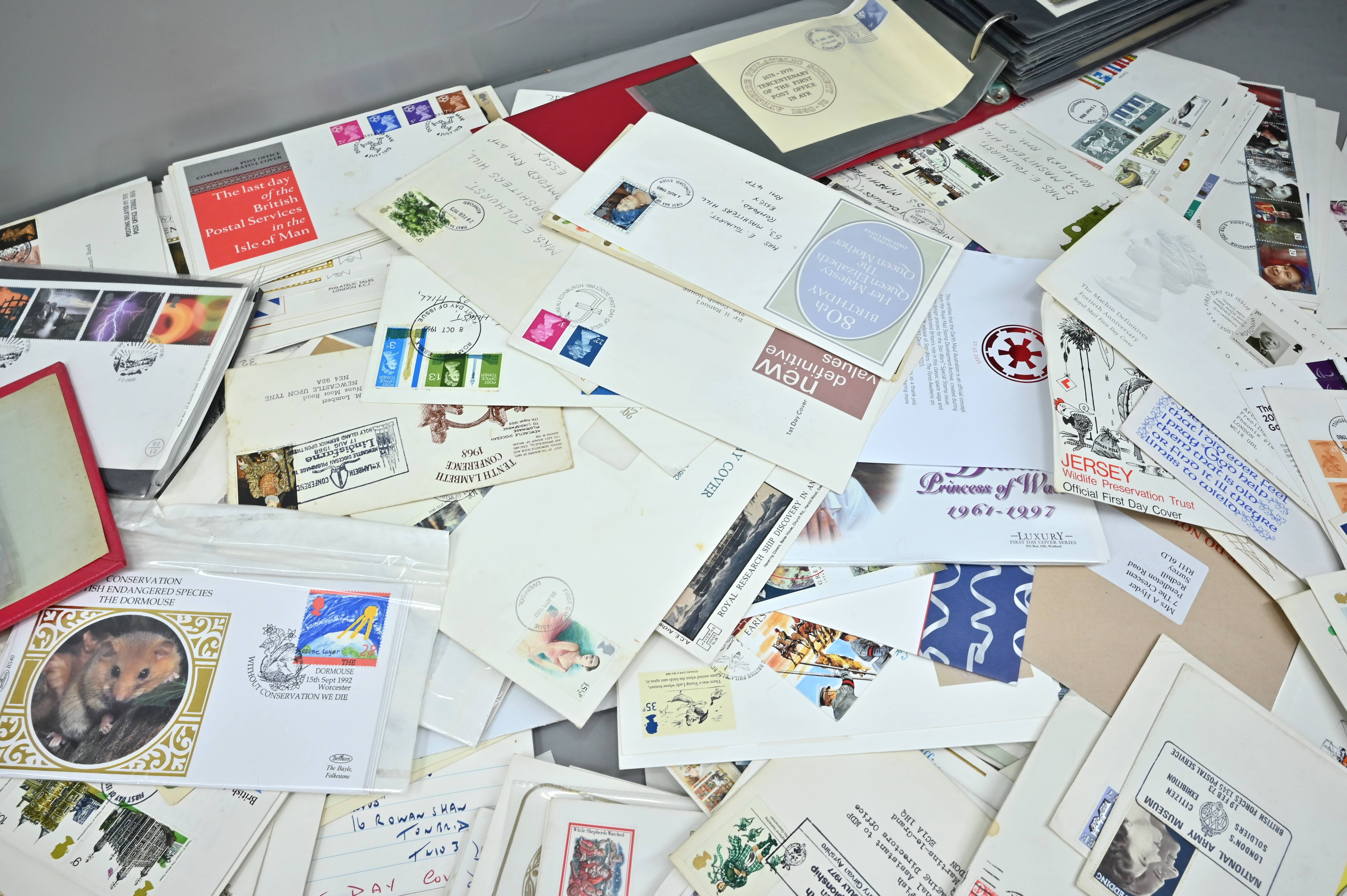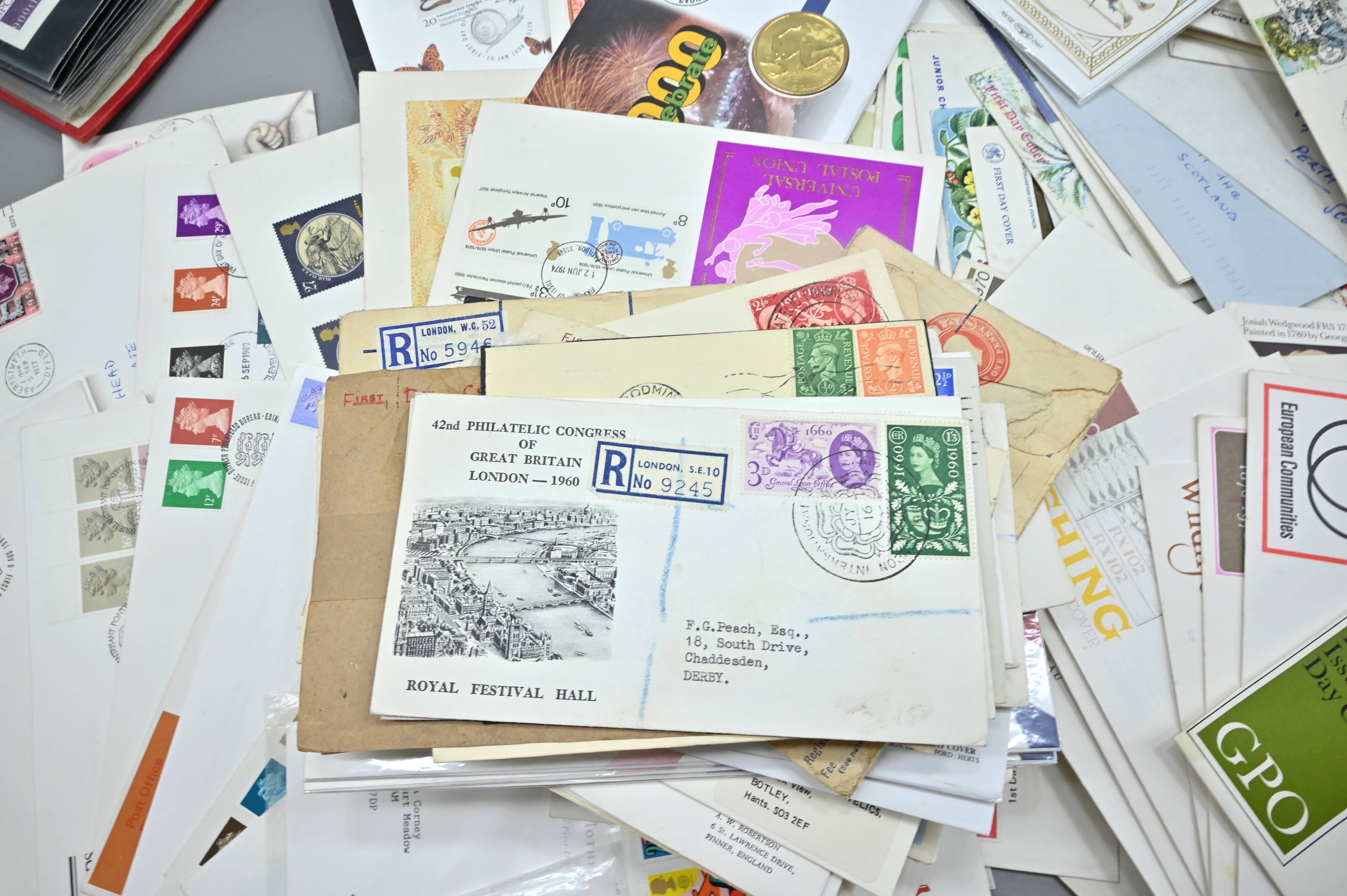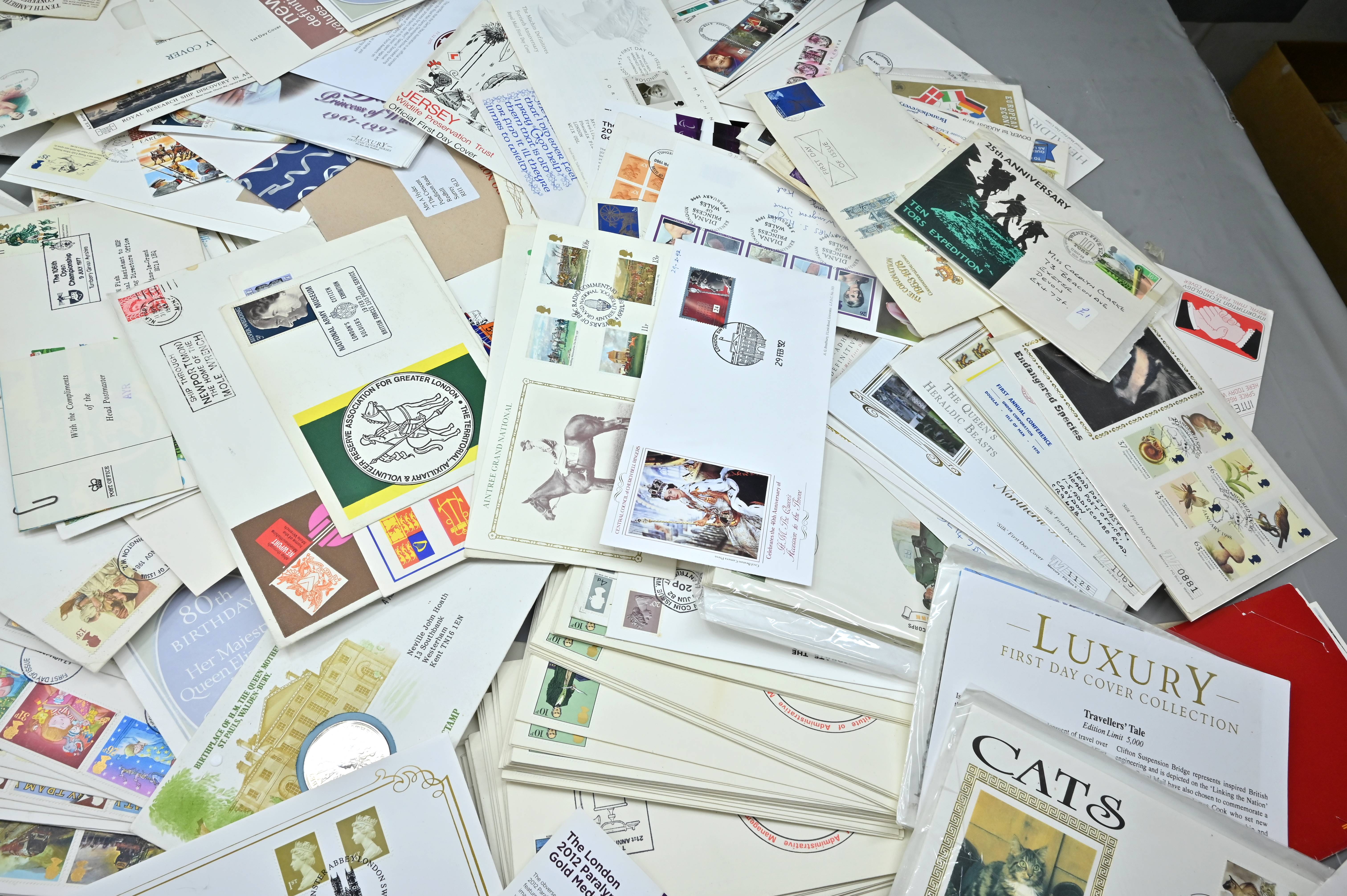 Description: Massive box filled with over 1000 covers, including FDC's of all eras, high value definitives, modern FDC's with values to £5, pre decimal covers with values up to 5 shillings, multi-reign covers, good selection of early KGVI covers, coin covers, many flight train and boat covers, including scarce signed WWII covers, many different types of illustrated covers. Some items priced individually. Only a few images of some covers at the top of the pile, many many many hidden gems, and perfect for someone either re-selling or serious cover collector.