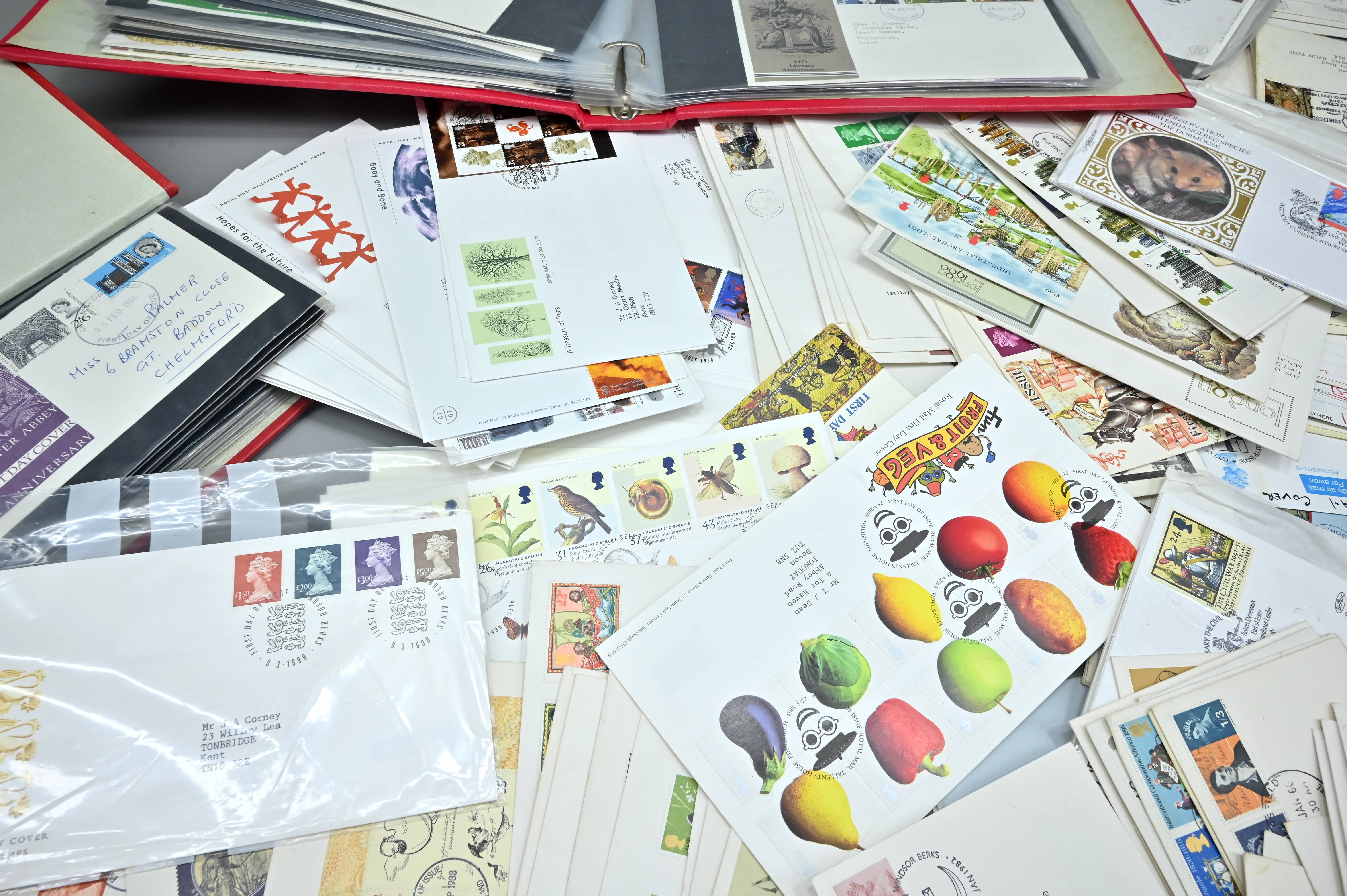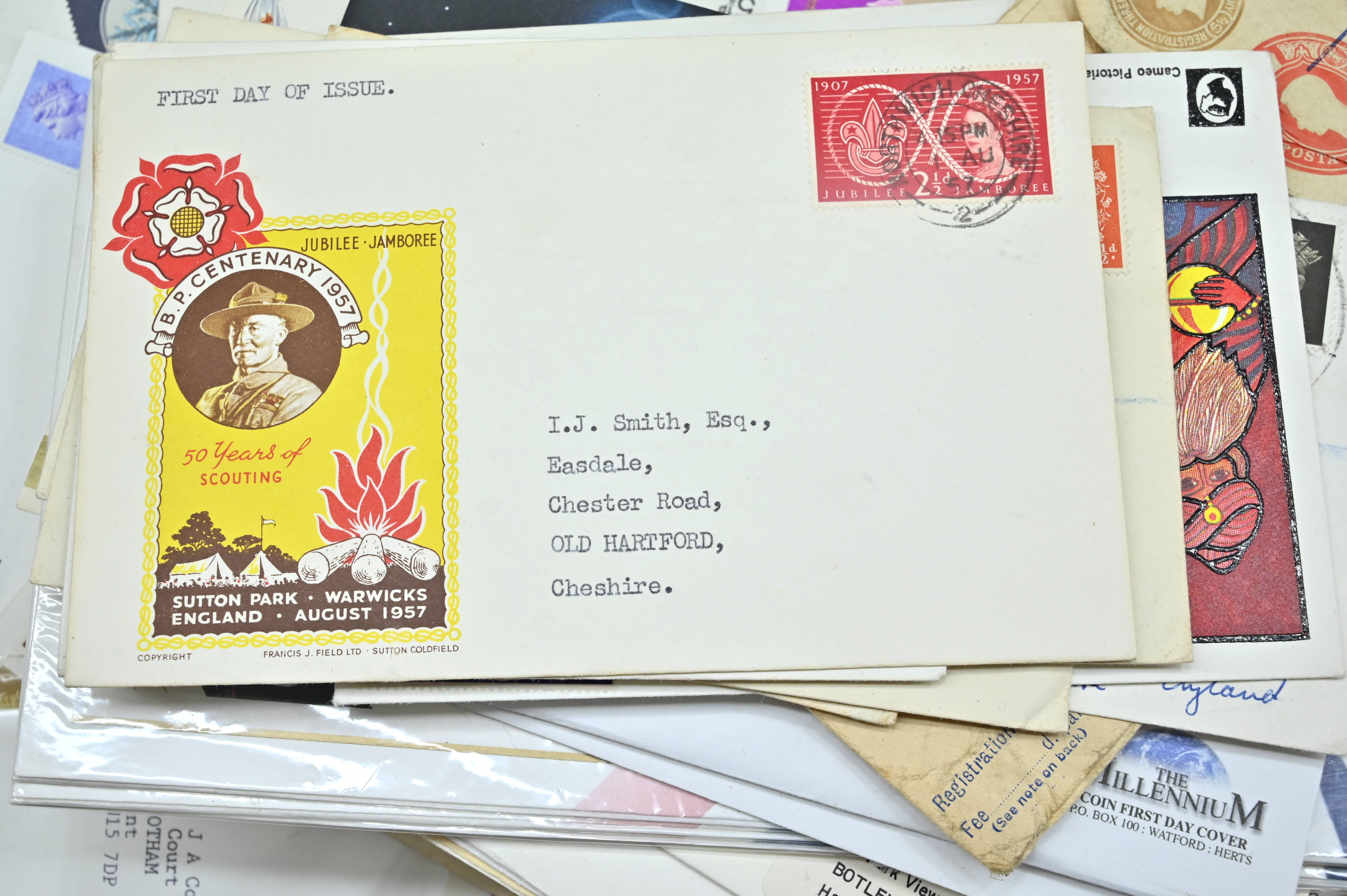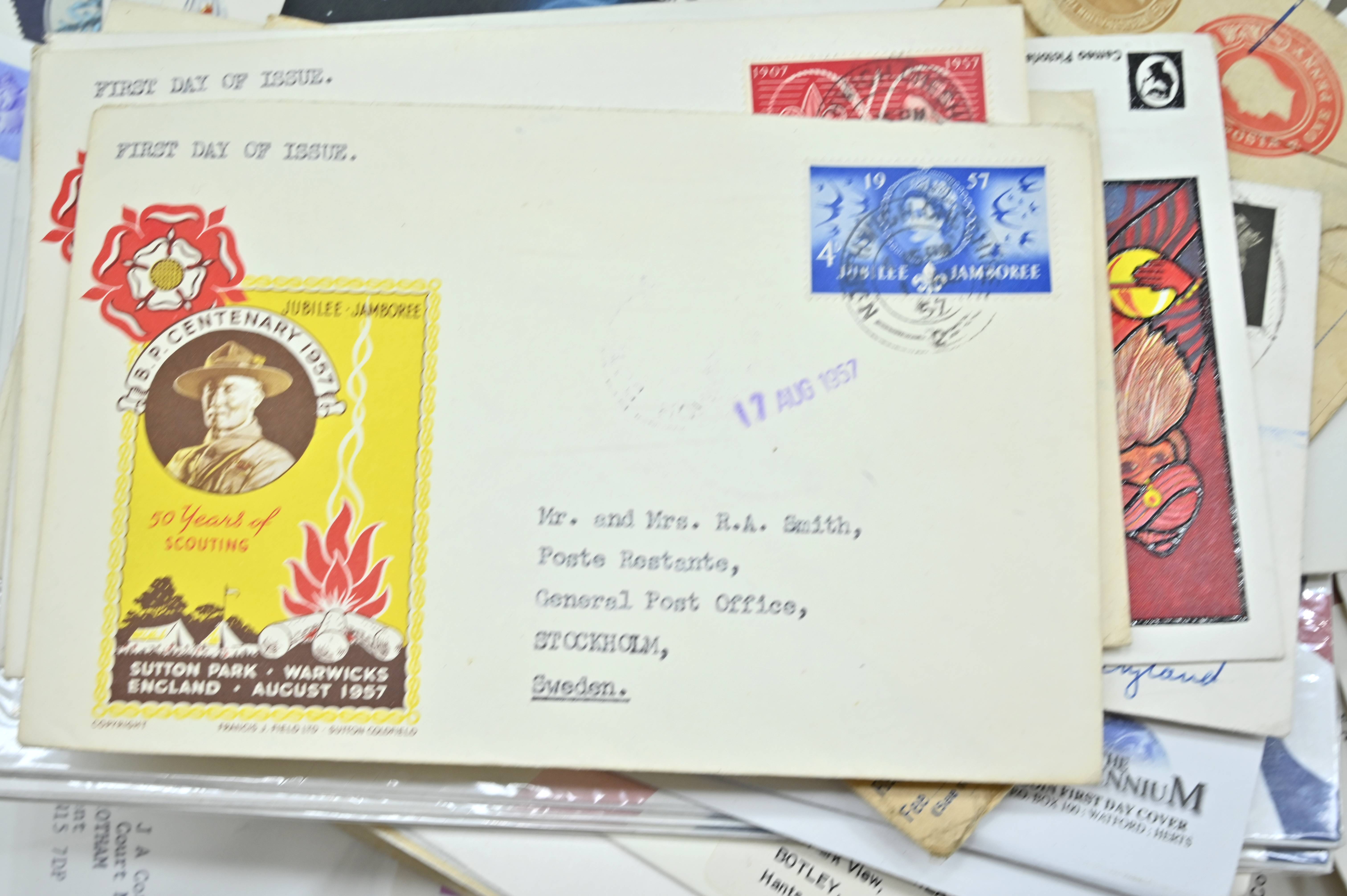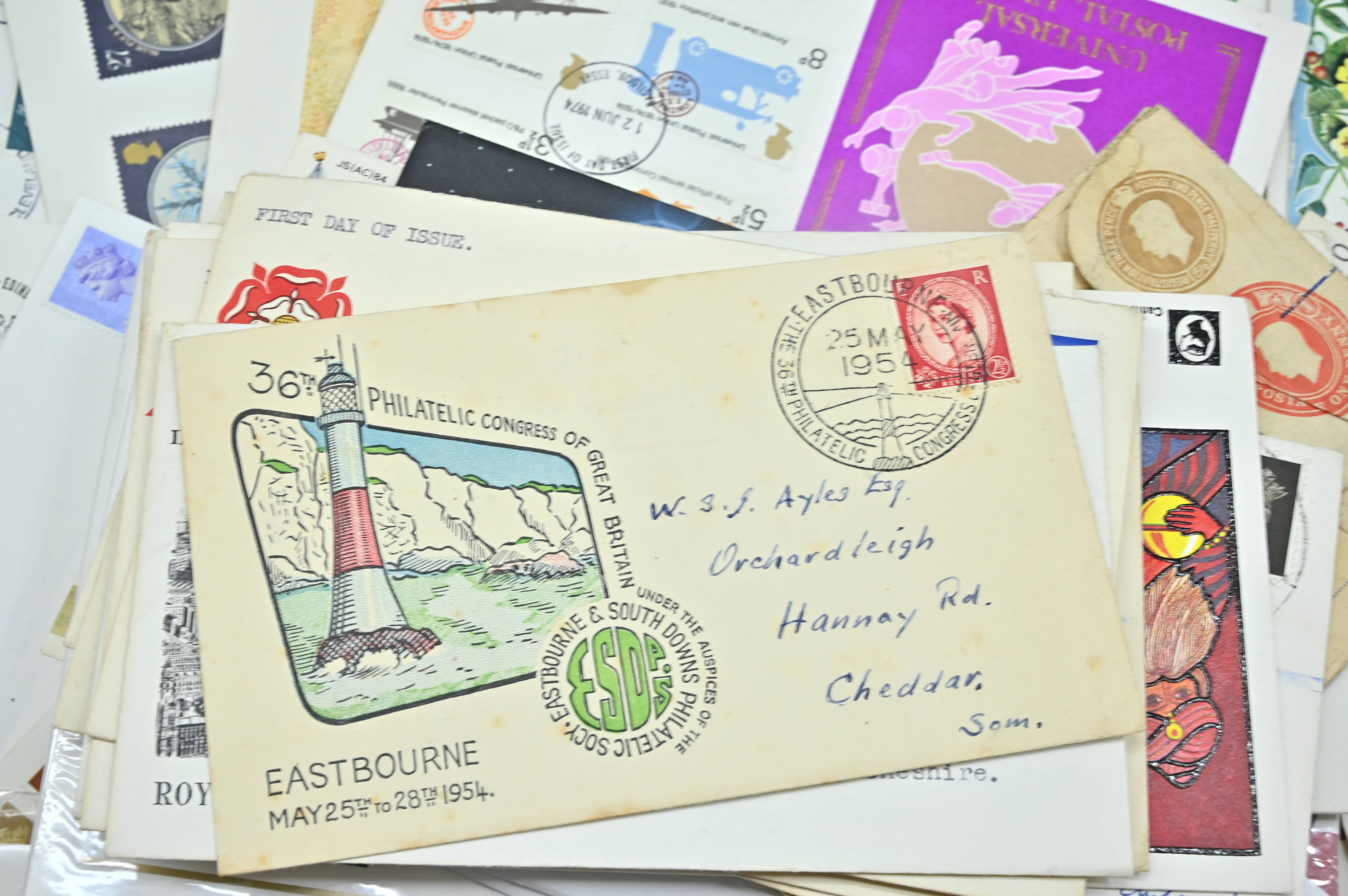 Description: Massive box filled with over 1000 covers, including FDC's of all eras, high value definitives, modern FDC's with values to £5, pre decimal covers with values up to 5 shillings, multi-reign covers, good selection of early KGVI covers, coin covers, many flight train and boat covers, including scarce signed WWII covers, many different types of illustrated covers. Some items priced individually. Only a few images of some covers at the top of the pile, many many many hidden gems, and perfect for someone either re-selling or serious cover collector.