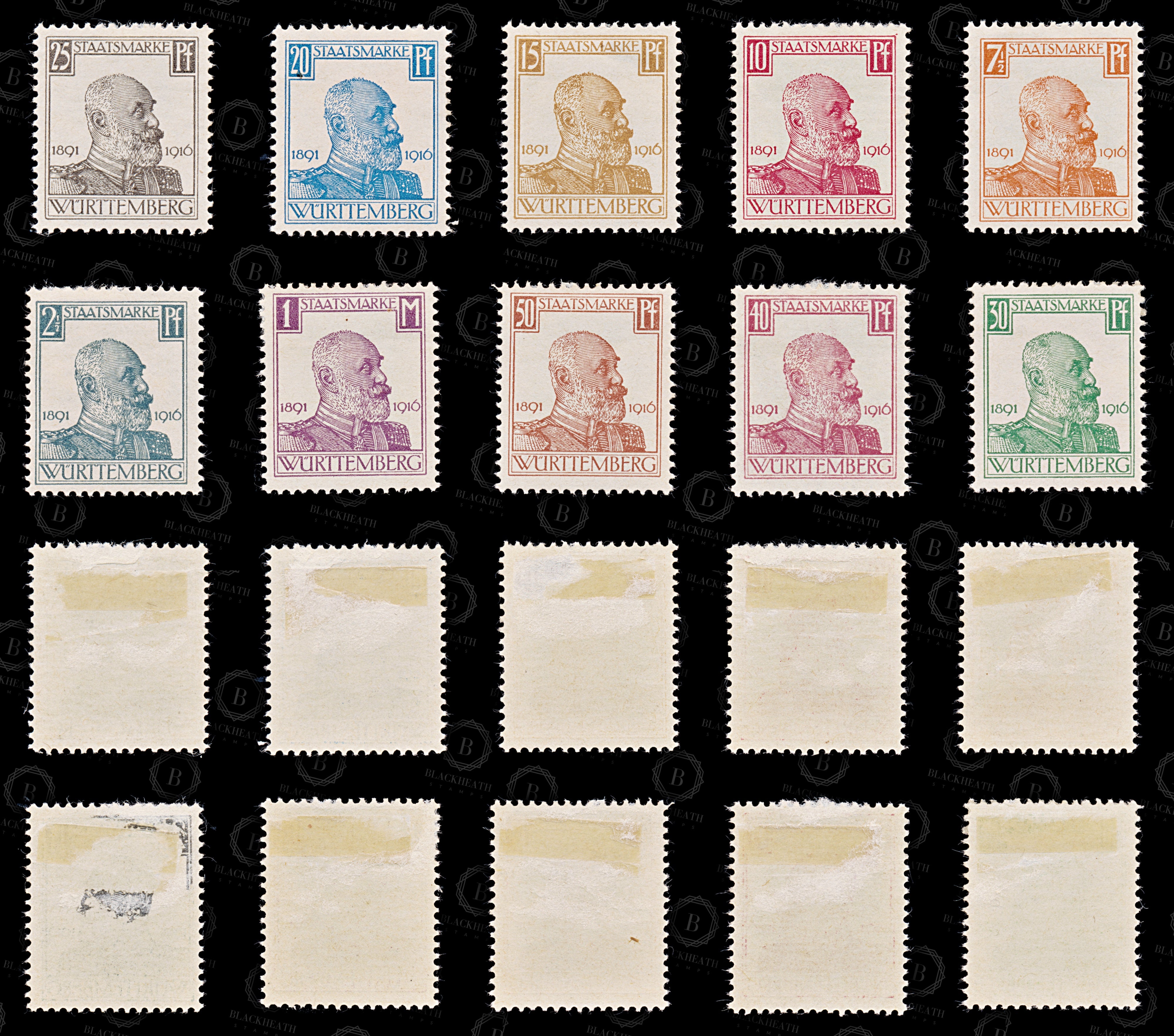 8541: Wurttemberg SGO209-O218 Set of 10 1916 Sc#O136-O145 Mi241-250 Mint MH C£28